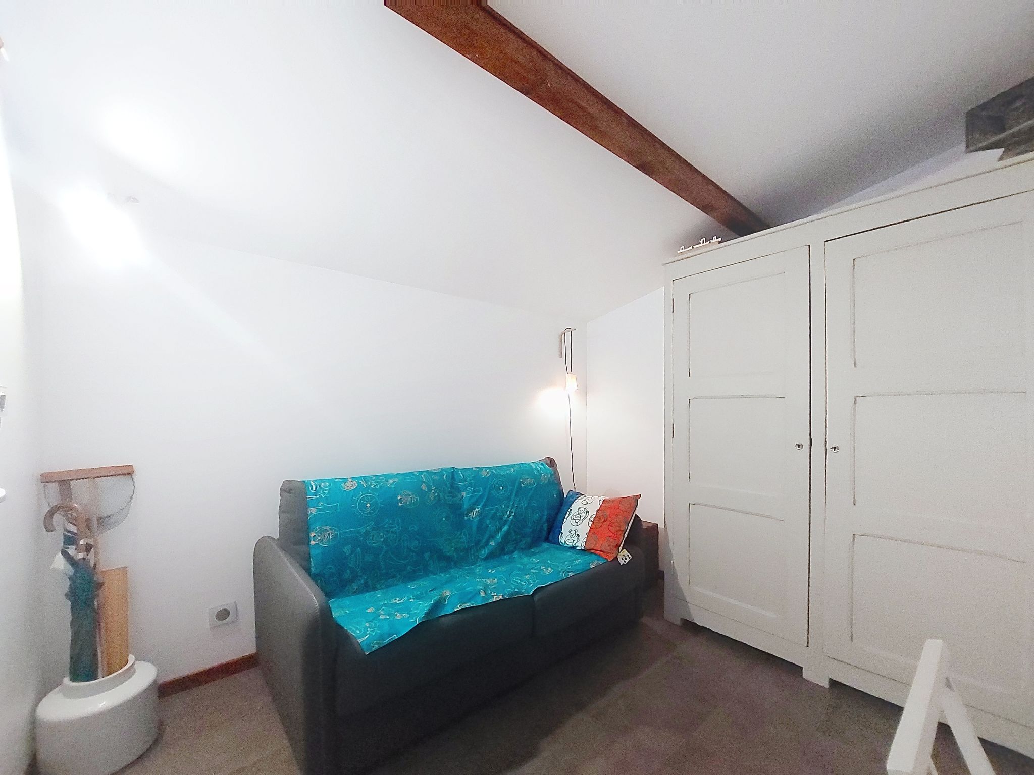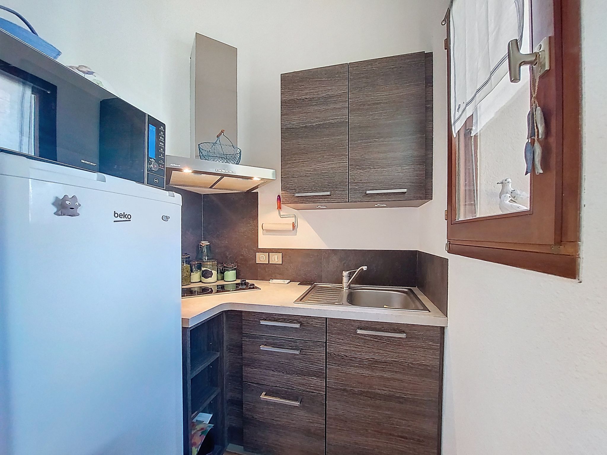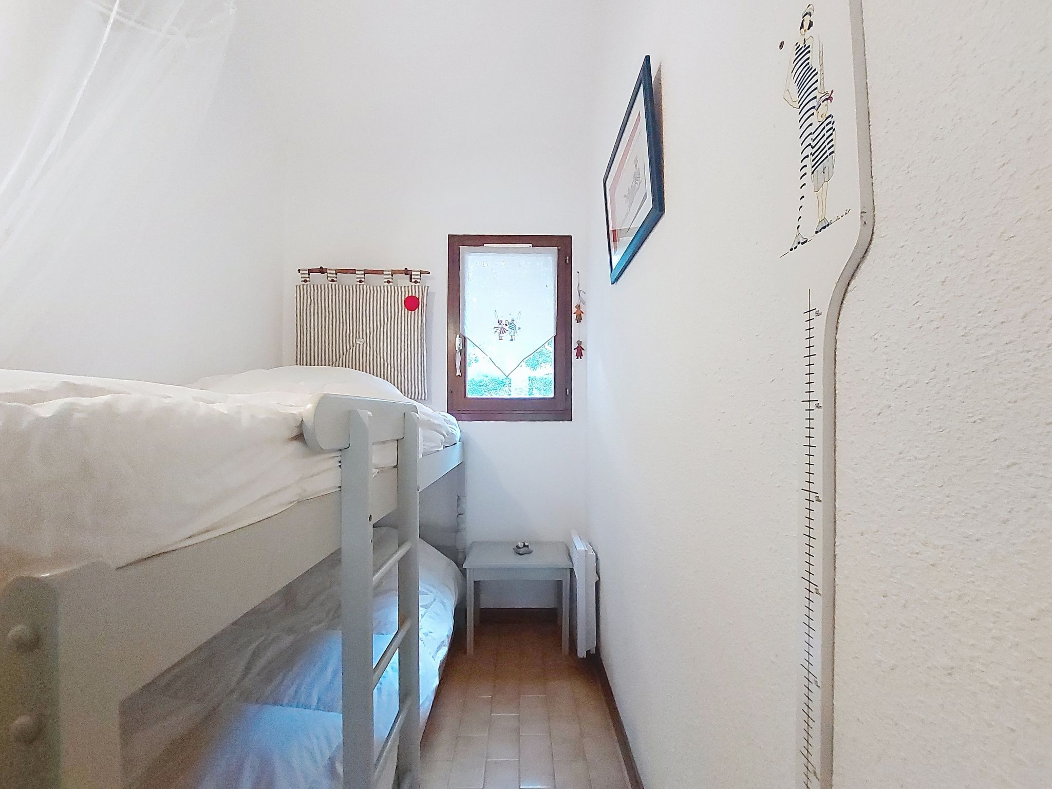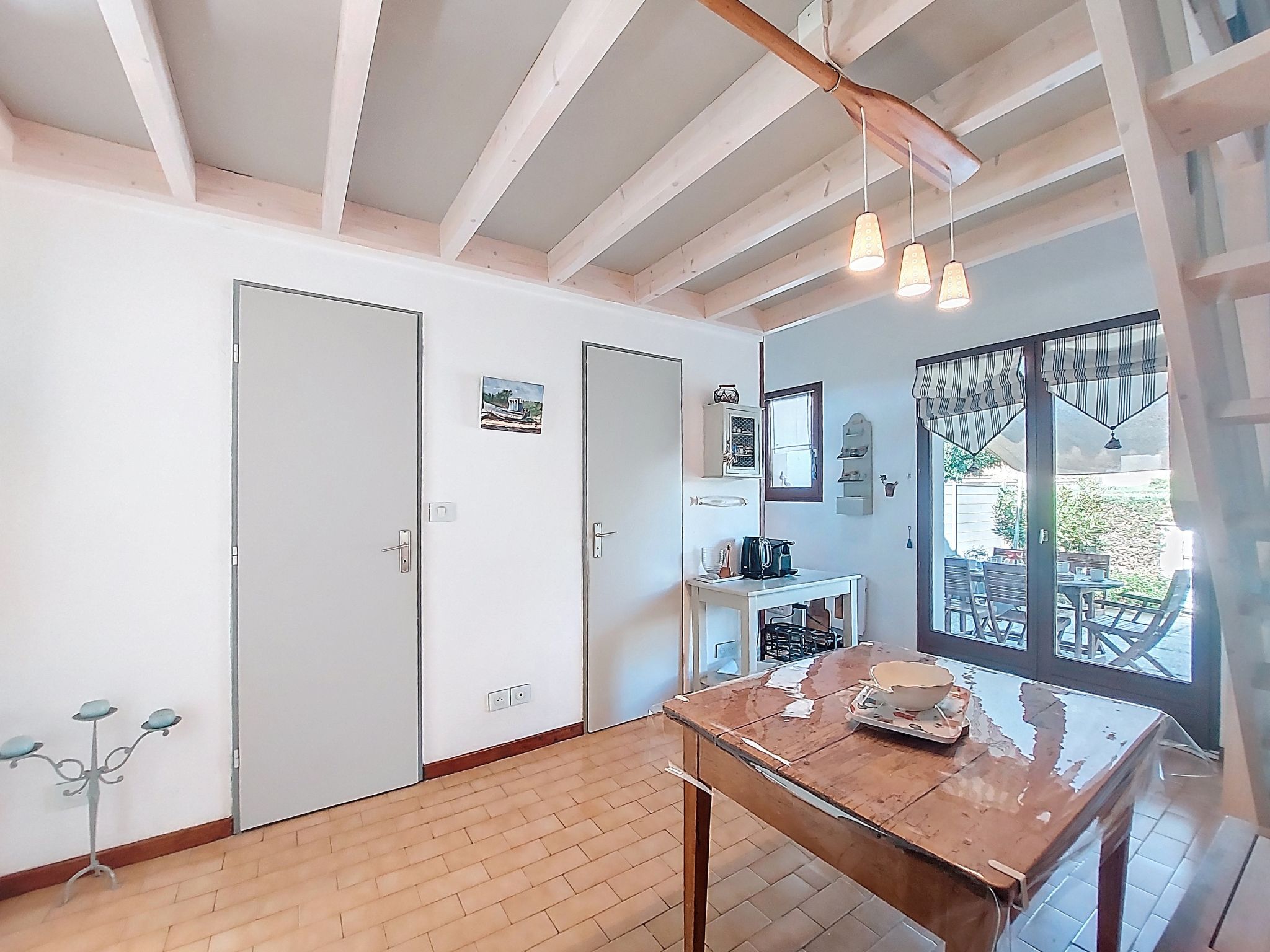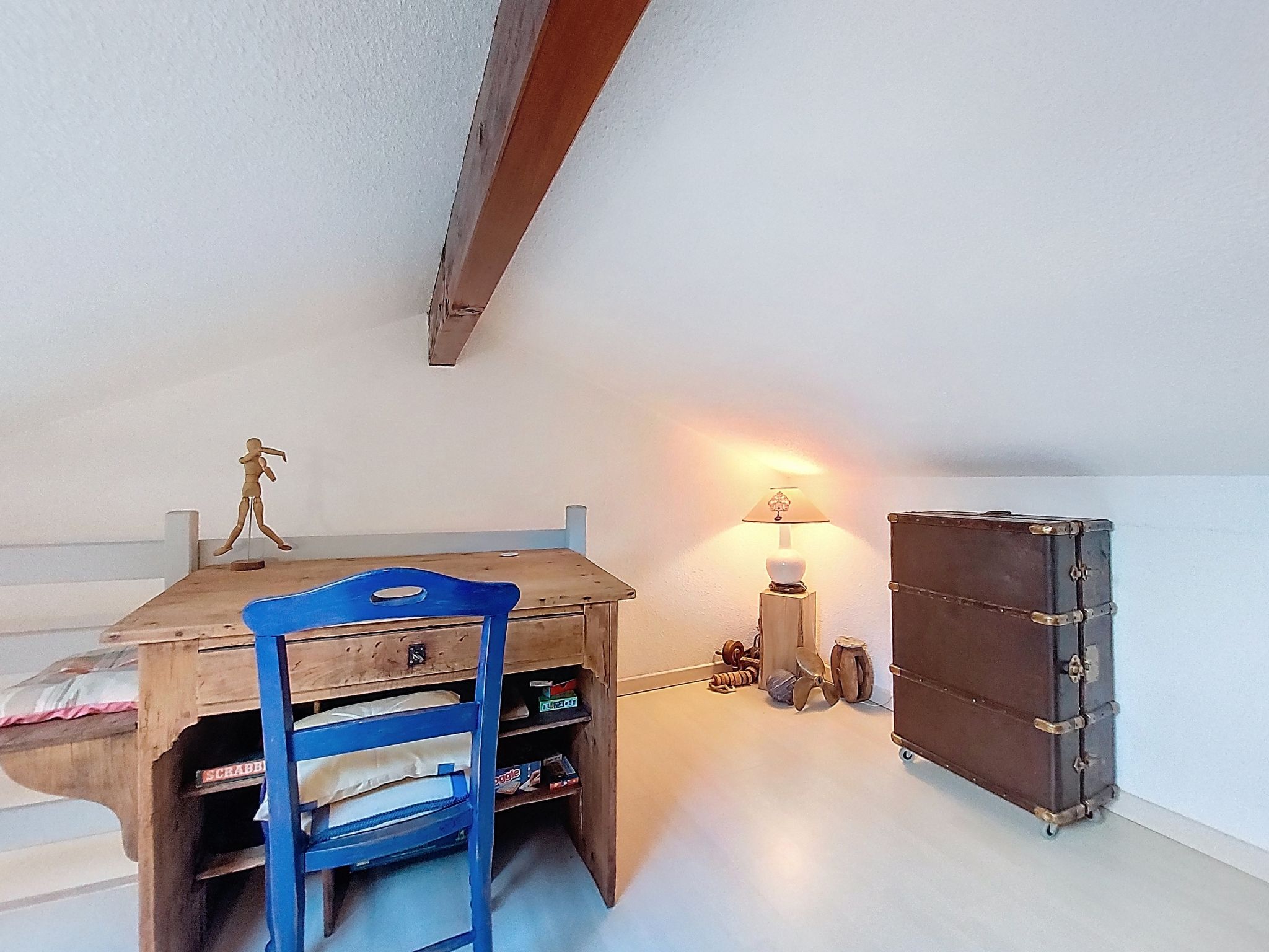 Maison mitoyenne 4 pièces 59 m2 sur 2 niveaux. Séjour/salle à manger. Sortie sur la terrasse. 1 chambre avec 1 grand-lit (1 x 140 cm, longueur 190 cm). 1 petite chambre d'enfants avec 1 x 2 lits superposés (90 cm, longueur 190 cm). Chambre avec passage, sans fenêtre avec 1 divan-lit double (1 x 140 cm, longueur 190 cm). Coin cuisine (2 plaques vitrocéramiques, grille-pain, bouilloire électrique, micro-ondes, cafetière électrique). Salle de bains, WC séparé. Chauffage électrique. À l'étage supérieur: galerie mansardée avec TV (écran plat). Terrasse 15 m2, jardinet 50 m2. Meubles de terrasse, barbecue. A disposition: Internet (Connexion WIFI, en sus). Place de parking No 17. Veuillez noter: logement non-fumeur. 1 animal/ chien de petite taille autorisé. Détecteur de fumée. Annonce d'un particulier (art 155, IV du CGI).