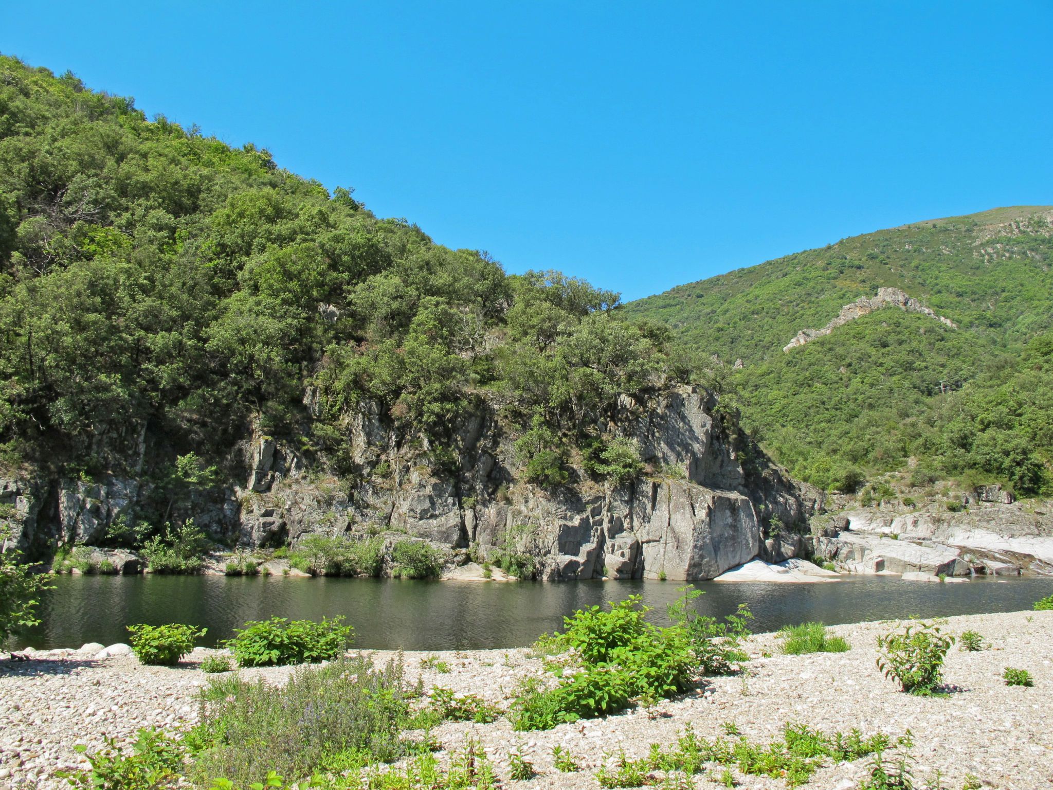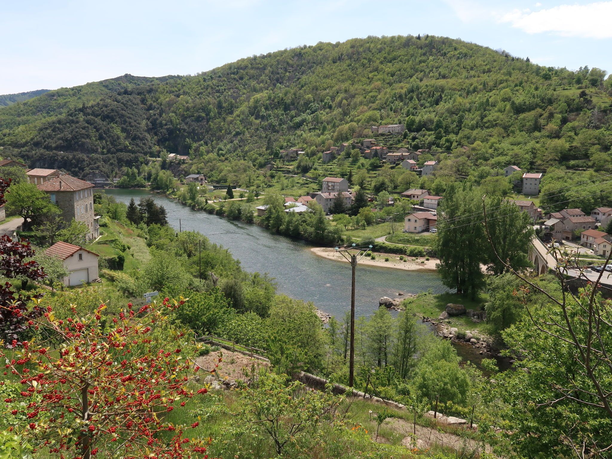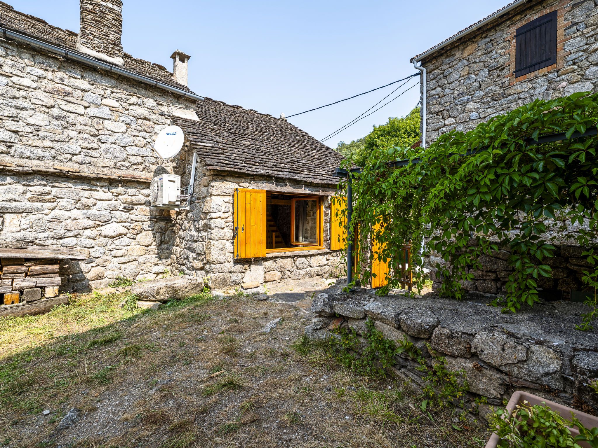 "Chassezac", maison studio 30 m2 sur 2 niveaux. Aménagement fonctionnel et rustique: séjour/salle à manger avec table pour les repas, TV (satellite), air-conditionné et ventilateur. Sortie sur la terrasse. Coin cuisine (1 plaque de cuisson, four, Poêle à gaz, 3 feux, grille-pain, bouilloire électrique, micro-ondes, congélateur, cafetière électrique). Douche/WC. Chauffage électrique. À l'étage supérieur: galerie ouverte avec 1 lit (90 cm, longueur 190 cm), 1 grand-lit (140 cm, longueur 190 cm), air-conditionné. Terrasse. Meubles de terrasse, barbecue (portable). A disposition: lave-linge. Veuillez noter: maison non-fumeur. Maximum 1 animal/ chien autorisé. Détecteur de fumée. Au lieu d'une chambre fermée, des espaces de couchage sont situés dans une zone ouverte (galerie, alcôve...). Annonce d'un particulier (art 155, IV du CGI). FR4659.702.1