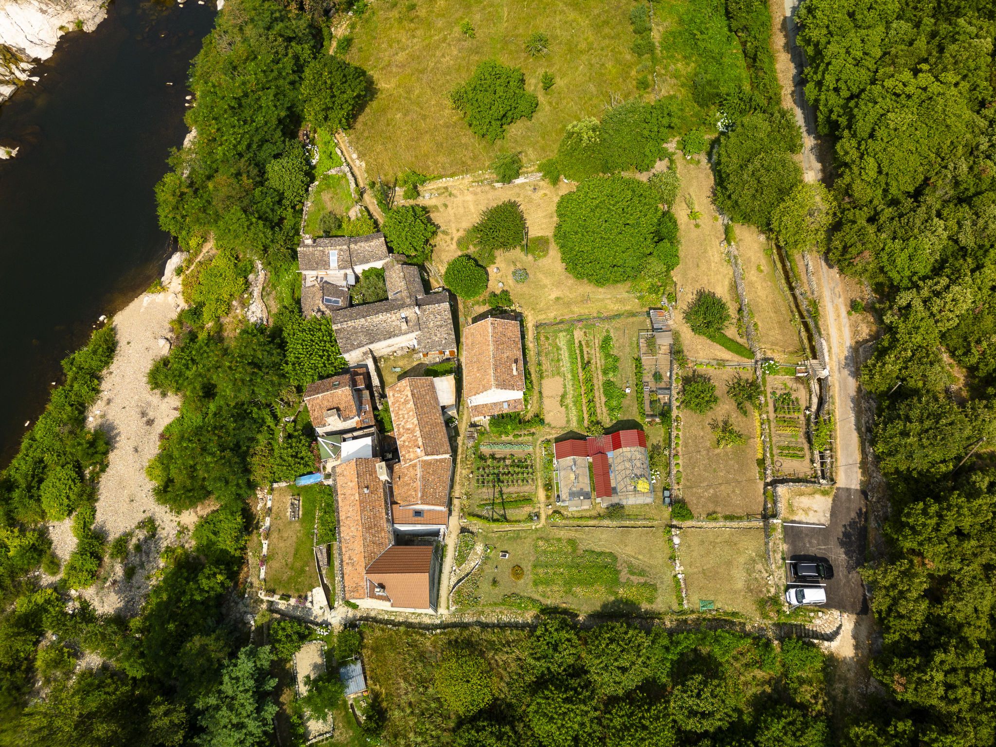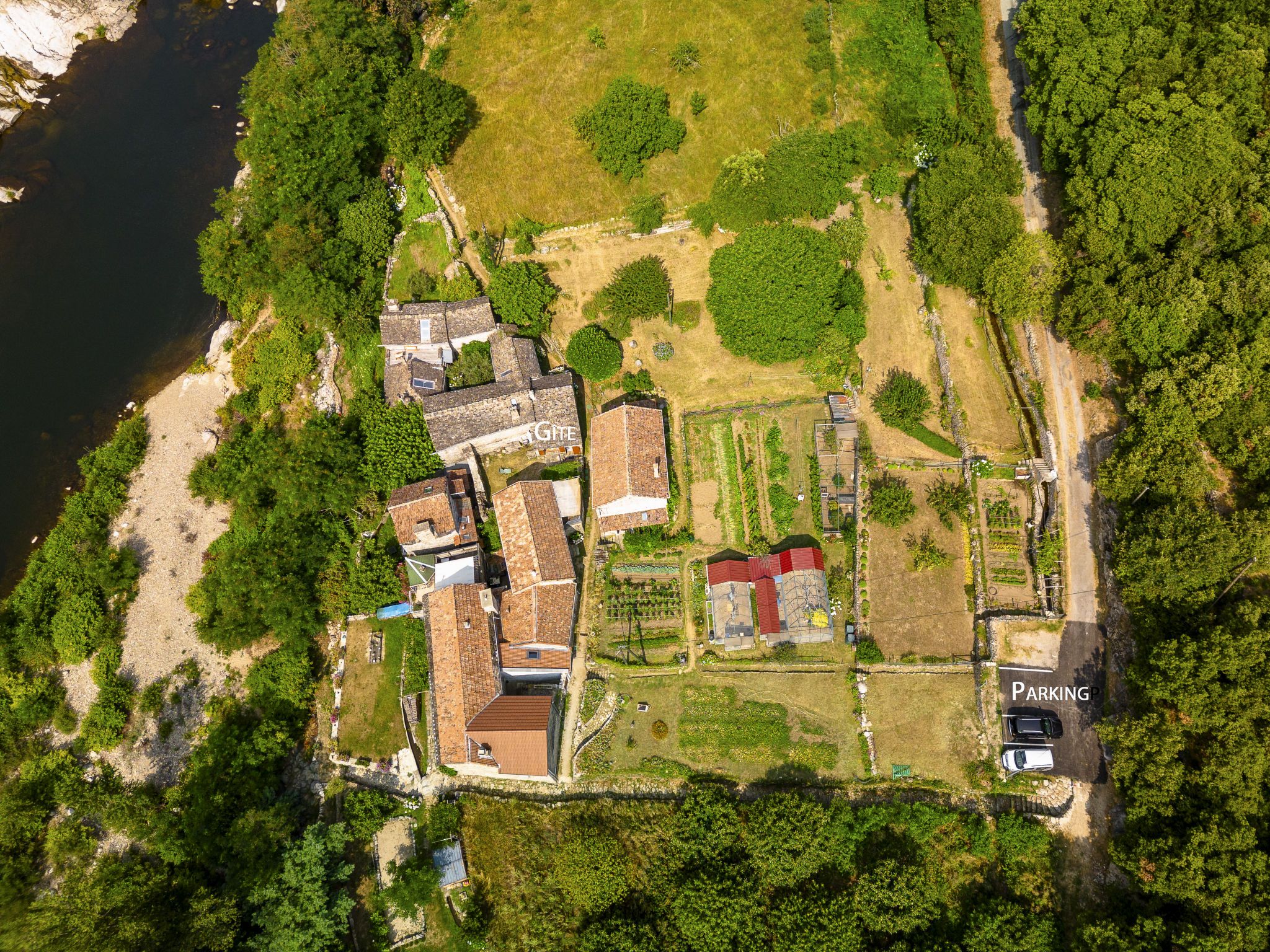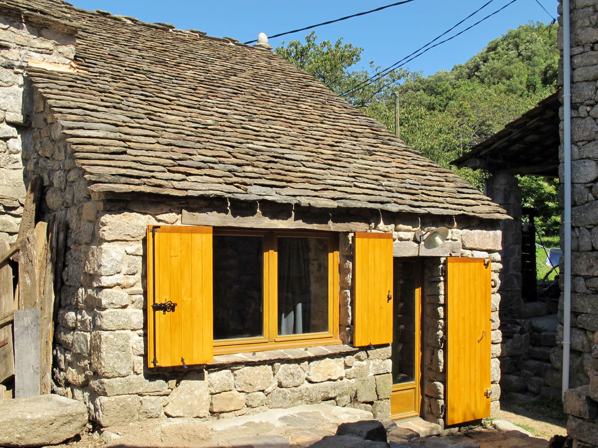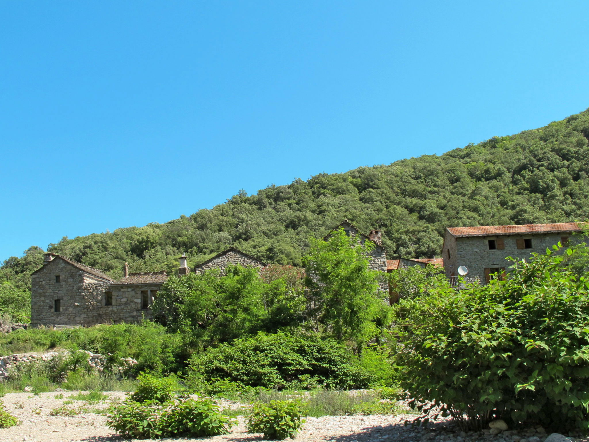 Petite maison rustique "Chassezac", mitoyenne. Dans le hameau de Le Chambonnet, à 2 km du centre de Ste. Marguerite-Lafigère, à 19 km du centre de Les Vans, à 3 km du centre de Pied-de-Borne, à 100 m de la rivière, dans la verdure. A usage privé: terrain 50 m2 avec cour. Accès en voiture par un chemin étroite (chemin non goudronné). 100 m sentier jusqu'à la maison. Place de parking (nombre de places limité) à 100 m. Magasins 10 km, arrêt de bus "Le Plagnol" 18 km, plage de graviers "River Chassézac" 100 m.