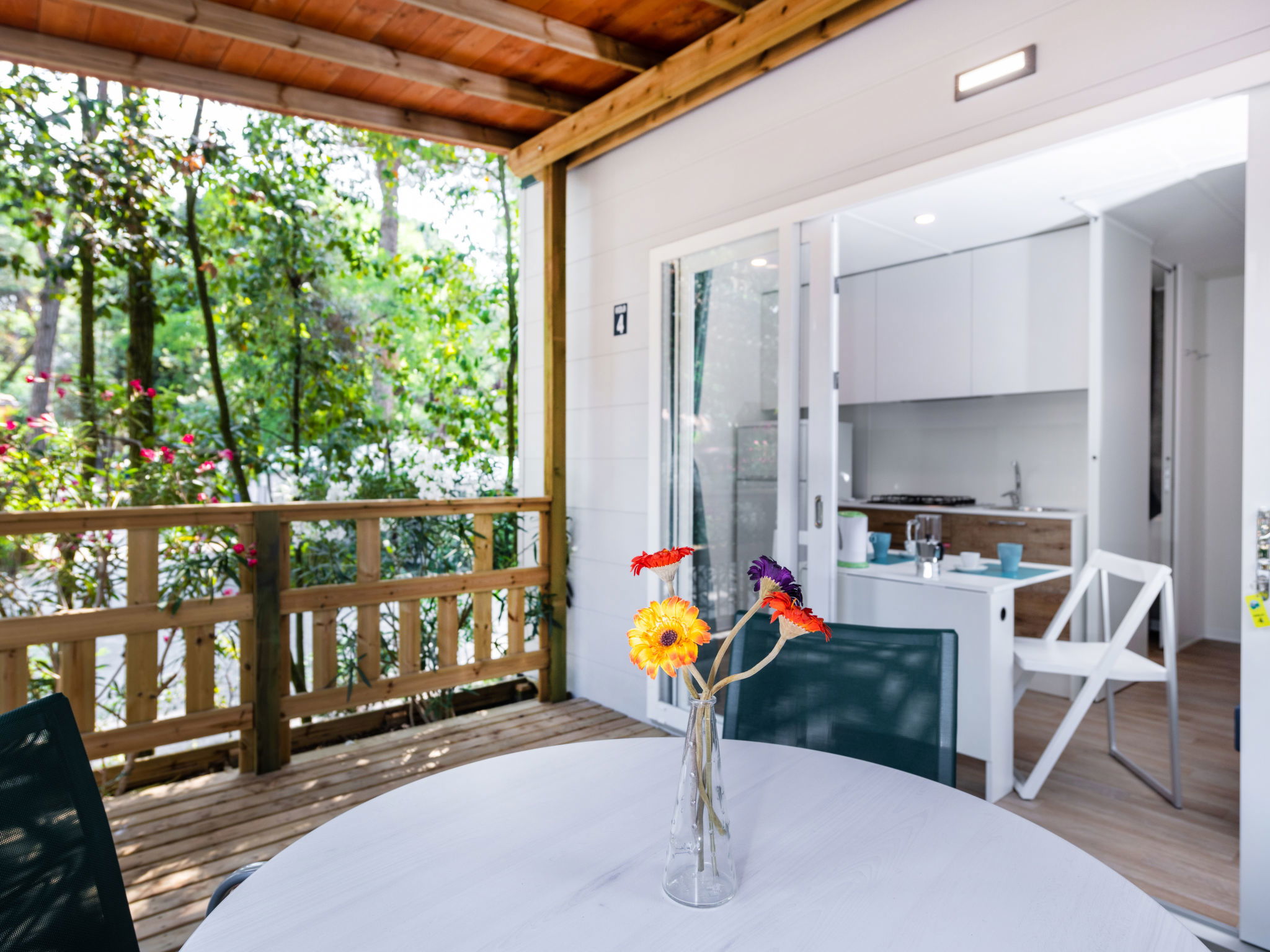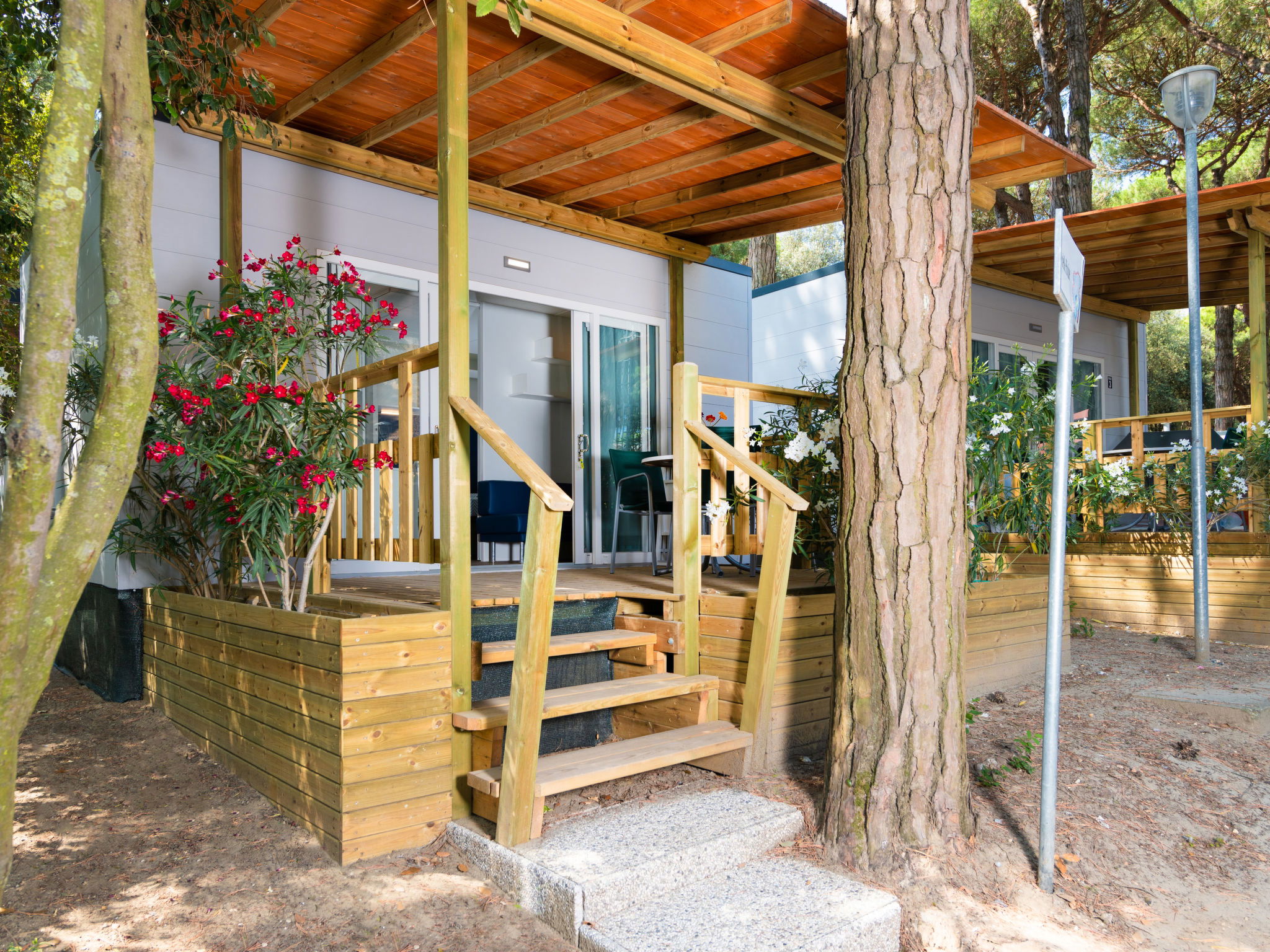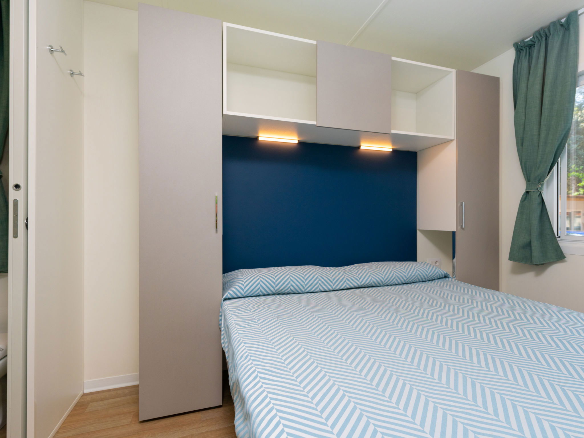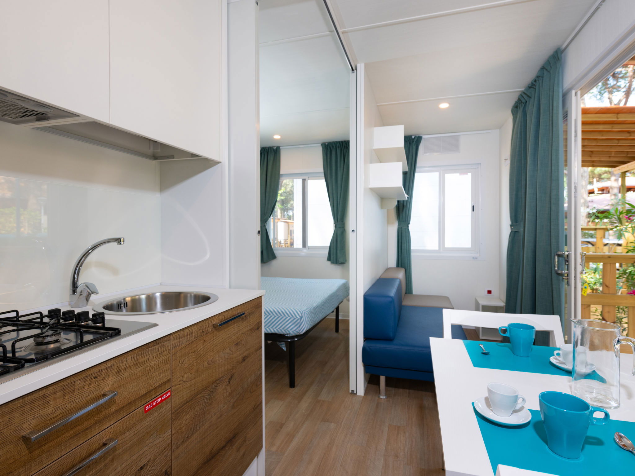 "Viola", 2 pièces mobil home 20 m2. Logement idéal pour 2 adultes + 1 enfant. Aménagement moderne: petite entrée avec 1 divan-lit (70 cm, longueur 190 cm), table pour les repas, coin-cuisine, air-conditionné et chauffage à air chaud. Sortie sur la véranda. 1 chambre double. Cuisine ouverte (4 feux). Douche/bidet/WC. Air-conditionné, chauffage à air chaud. Terrasse couverte. Meubles de terrasse. Place de parking (1 Voiture). Maximum 1 animal/ chien autorisé. IT038006B17TCUP7WY