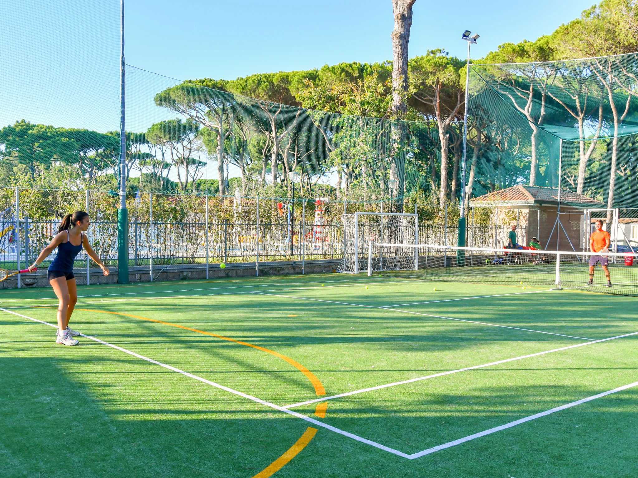 Lidi Ferraresi: Grand complexe de vacances accueillant pour les enfants "Mare e Pineta", environné par les arbres. À 500 m du centre de Lido di Spina, à 1 km du centre de Lido degli Estensi, à 500 m de la mer, à 500 m de la plage, dans la verdure. En commun: terrain à l'état naturel 16 ha avec plantes et arbres, piscine (25 x 12 m, profondeur 140 cm, disponibilité saisonnière: 16.Mai. - 20.Sep.). Bassin pour les enfants, toboggan, douche extérieure, bain à remous , basket, terrain de pétanque, beach volley. Infrastructures de la résidence: réception, restaurant, bar, Connexion WIFI, sauna (en sus). Salle fitness (en sus). Possibilité d'achats, kiosque, lave-linge, sèche-linge (en commun, en sus), location de bicyclettes. Place de parking (nombre de places limité). Borne de recharge électrique. Arrêt de bus 300 m, gare ferroviaire "Ravenna" 30 km, parc "Parco del Delta del Po" 46 km. Attractions à proximité: Comacchio 10 km, Abbazia di Pomposa 30 km, Ravenna 31 km, Mirabilandia 46 km, Ferrara 60 km. Veuillez noter: animation en saison. Adapté(e) aux familles.