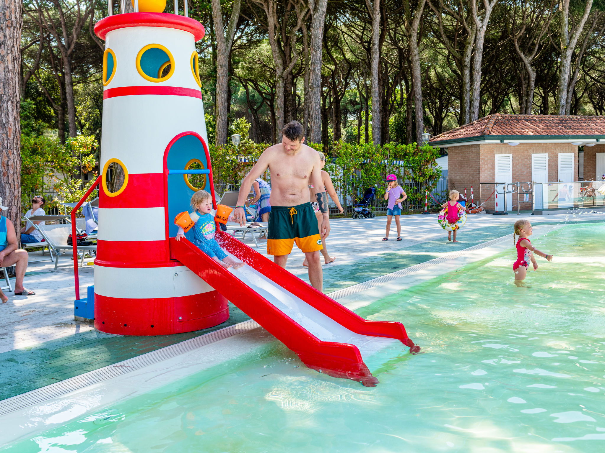 Lidi Ferraresi: Grand complexe de vacances accueillant pour les enfants "Mare e Pineta", environné par les arbres. À 500 m du centre de Lido di Spina, à 1 km du centre de Lido degli Estensi, à 500 m de la mer, à 500 m de la plage, dans la verdure. En commun: terrain à l'état naturel 16 ha avec plantes et arbres, piscine (25 x 12 m, profondeur 140 cm, disponibilité saisonnière: 16.Mai. - 20.Sep.). Bassin pour les enfants, toboggan, douche extérieure, bain à remous , basket, terrain de pétanque, beach volley. Infrastructures de la résidence: réception, restaurant, bar, Connexion WIFI, sauna (en sus). Salle fitness (en sus). Possibilité d'achats, kiosque, lave-linge, sèche-linge (en commun, en sus), location de bicyclettes. Place de parking (nombre de places limité). Borne de recharge électrique. Arrêt de bus 300 m, gare ferroviaire "Ravenna" 30 km, parc "Parco del Delta del Po" 46 km. Attractions à proximité: Comacchio 10 km, Abbazia di Pomposa 30 km, Ravenna 31 km, Mirabilandia 46 km, Ferrara 60 km. Veuillez noter: animation en saison. Adapté(e) aux familles.