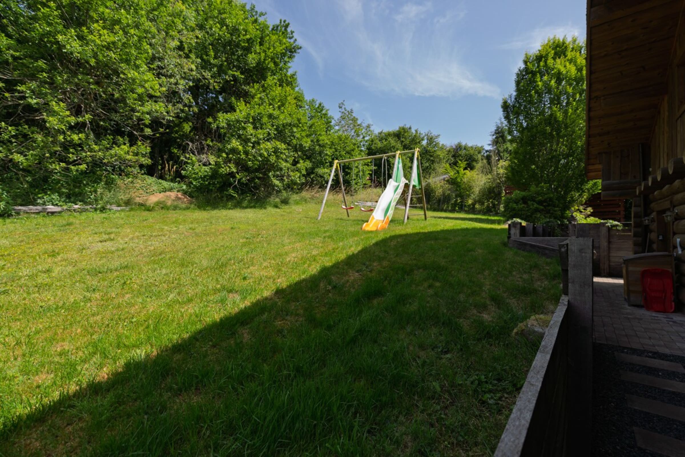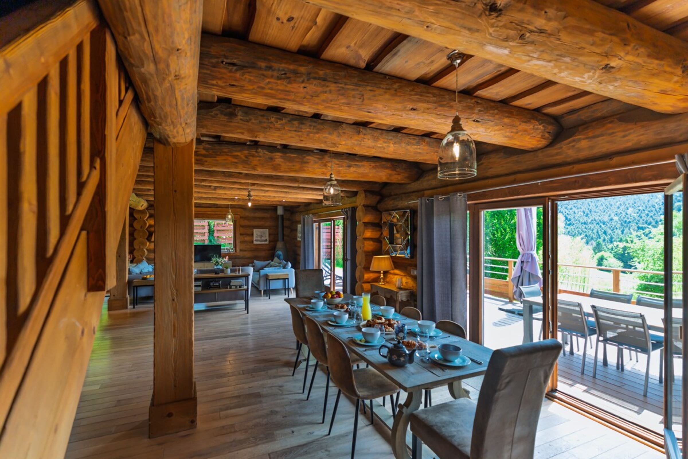 À l’extérieur, tout est pensé pour profiter pleinement de l’environnement vosgien :