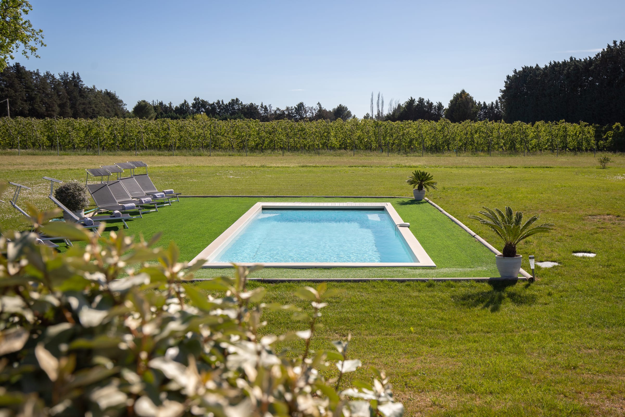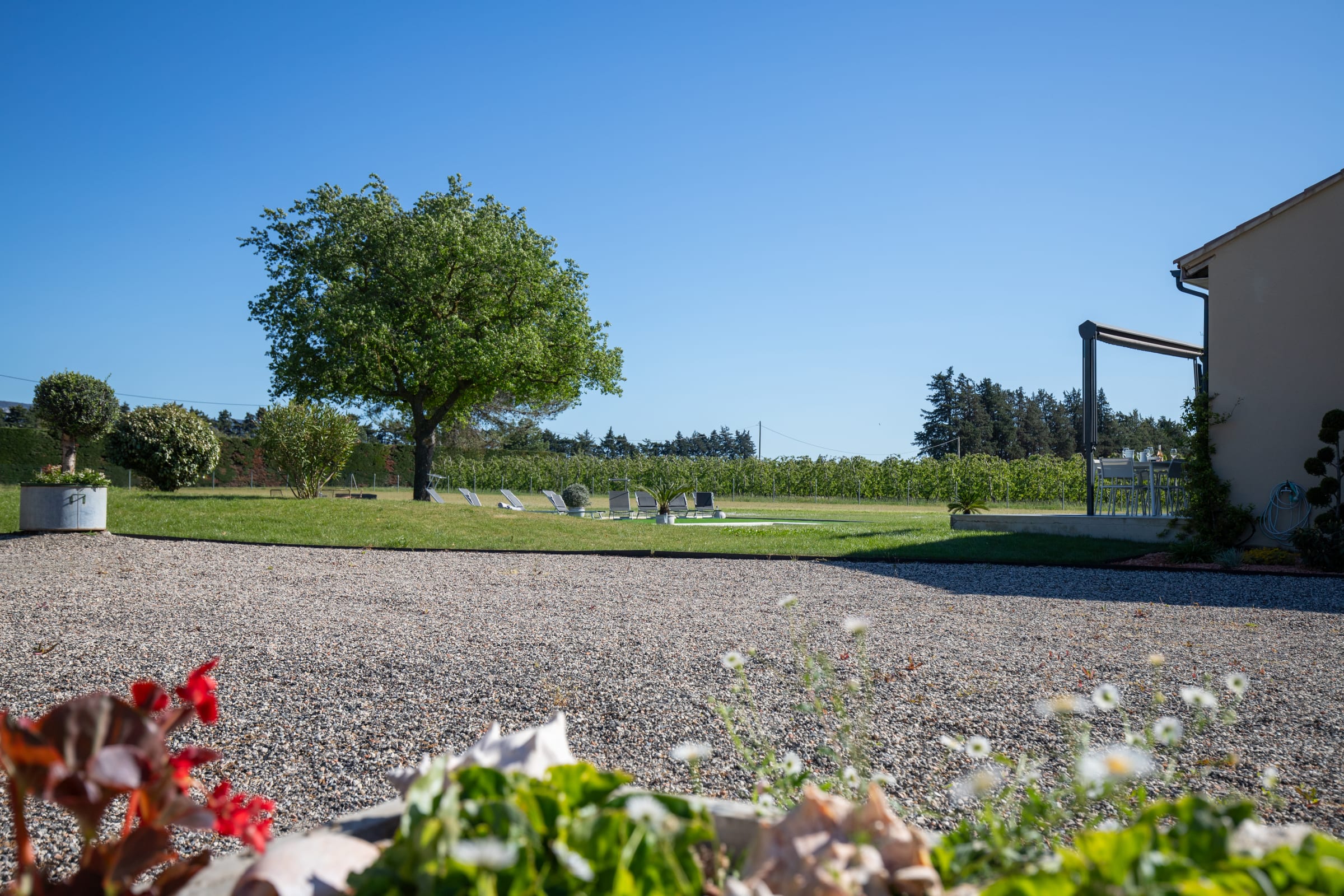 Située en campagne dans un quartier très calme, grand terrain avec vues sur les vignes.