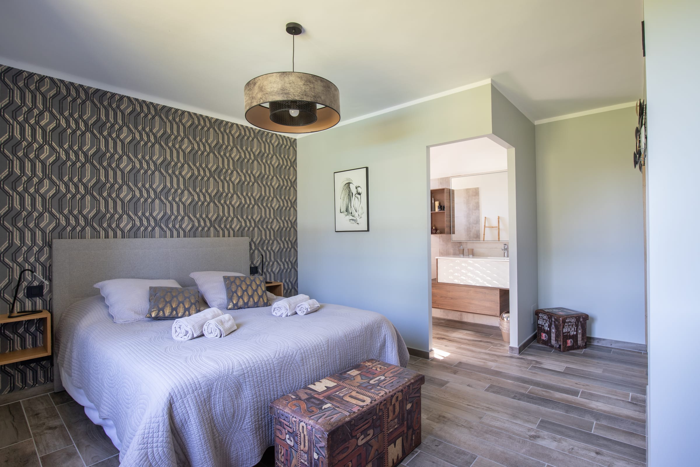 Profitez du soleil de Provence grace au superbe extérieur où vous pourrez vous détendre autour de la piscine privée. Barbecue, transats, ping-pong et boulodrome, tout est prévu pour que vous passiez de bonnes vacances !