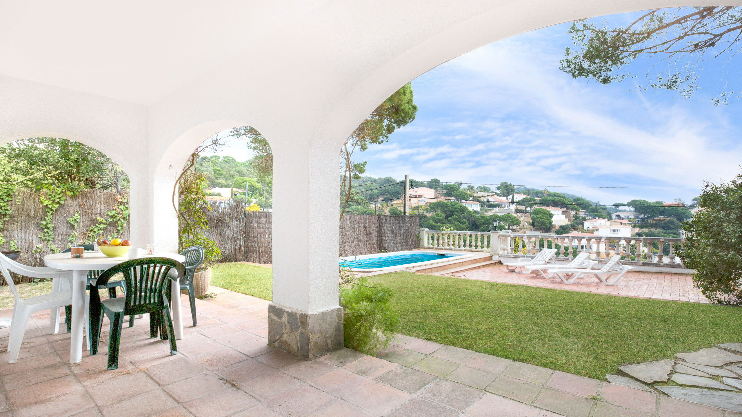 Maison basique avec piscine privée et vue sur la mer située dans un quartier résidentiel très calme à seulement 3 km de la belle et calme plage de Canyelles, à 6 km du centre de Lloret de Mar et à 8 km de Tossa de Mar, l'un des les villes les plus charmantes de la Costa Brava. Cette maison est idéale pour passer des vacances en famille ou entre amis sur la Costa Brava!