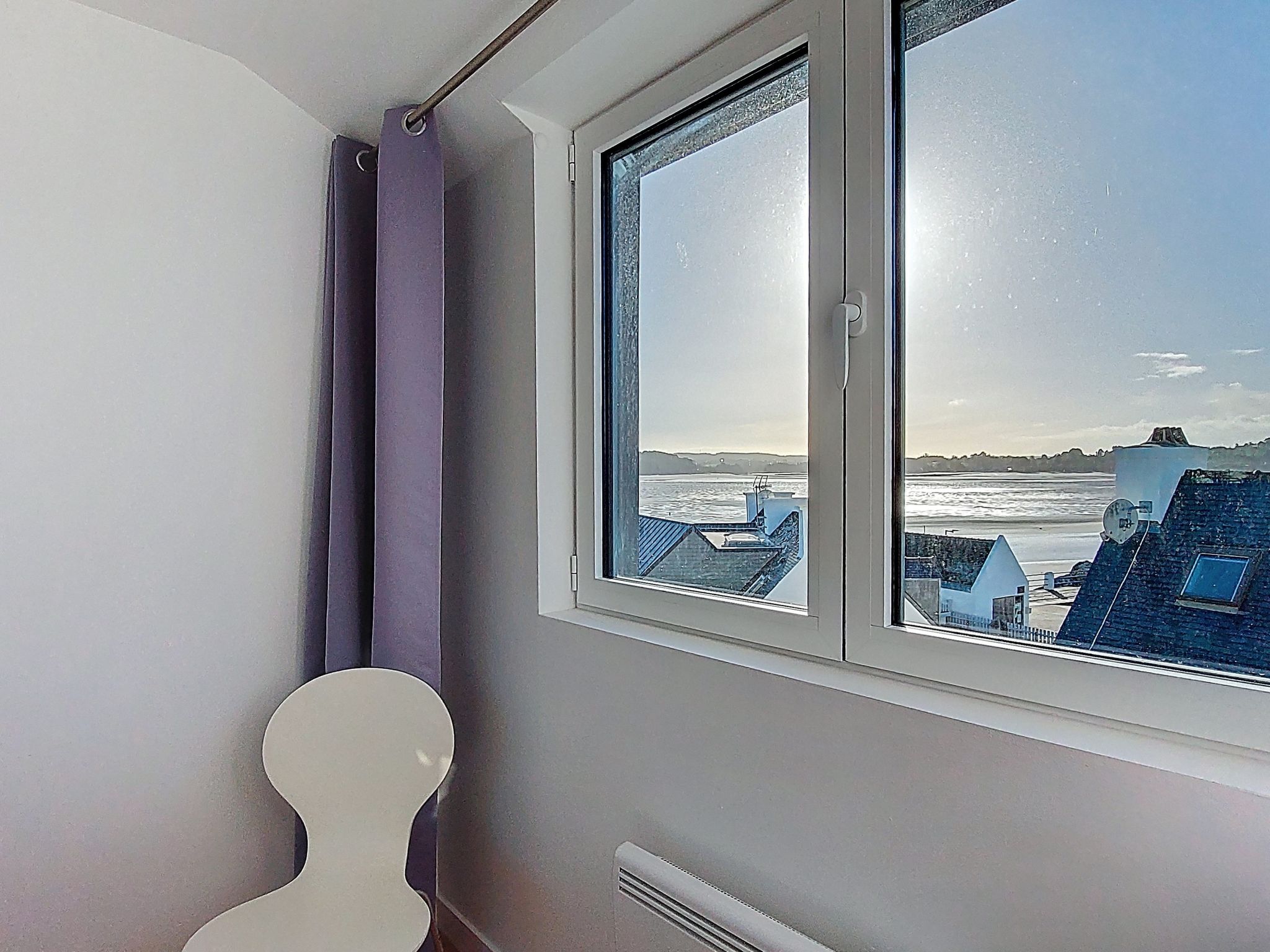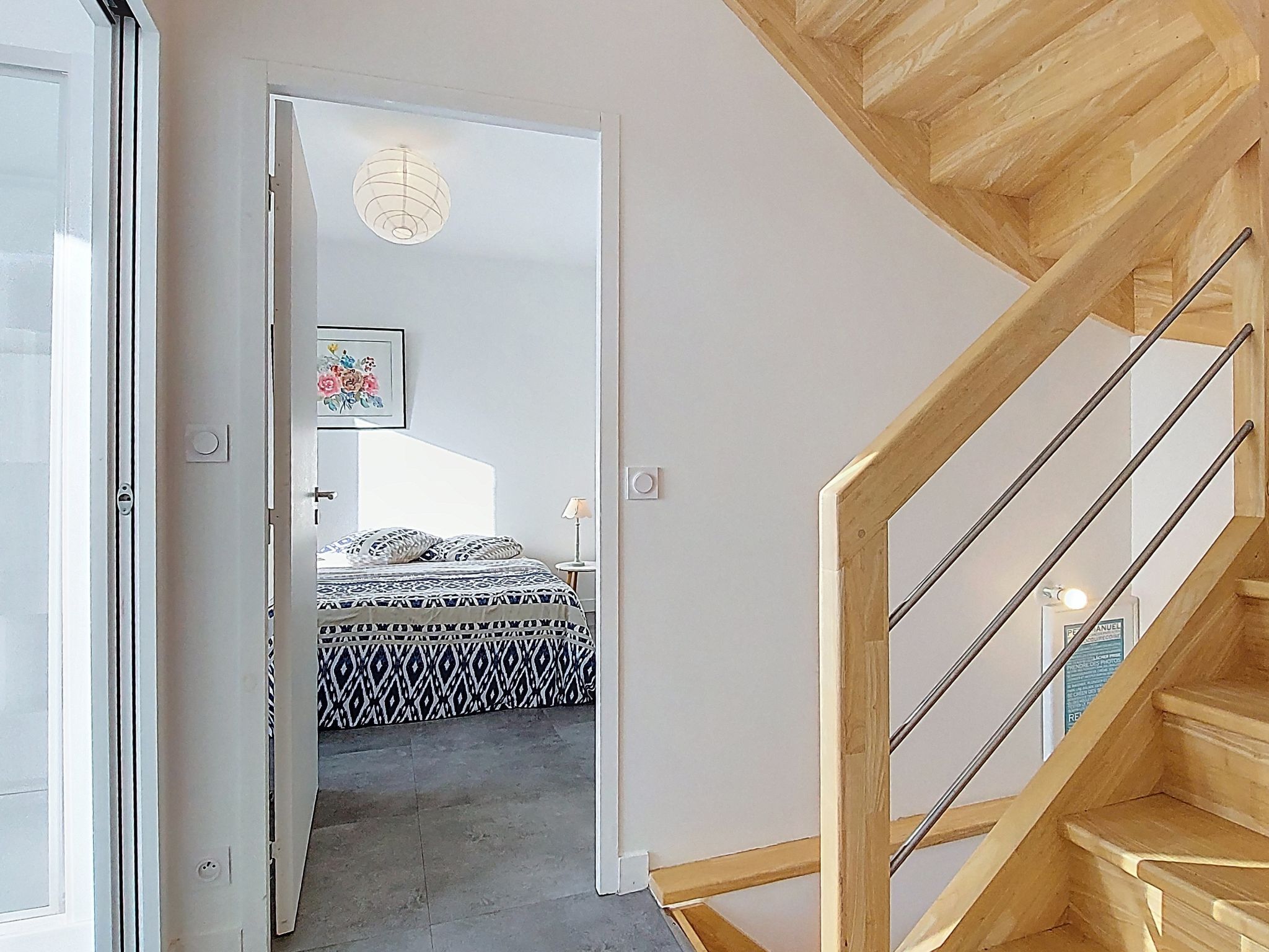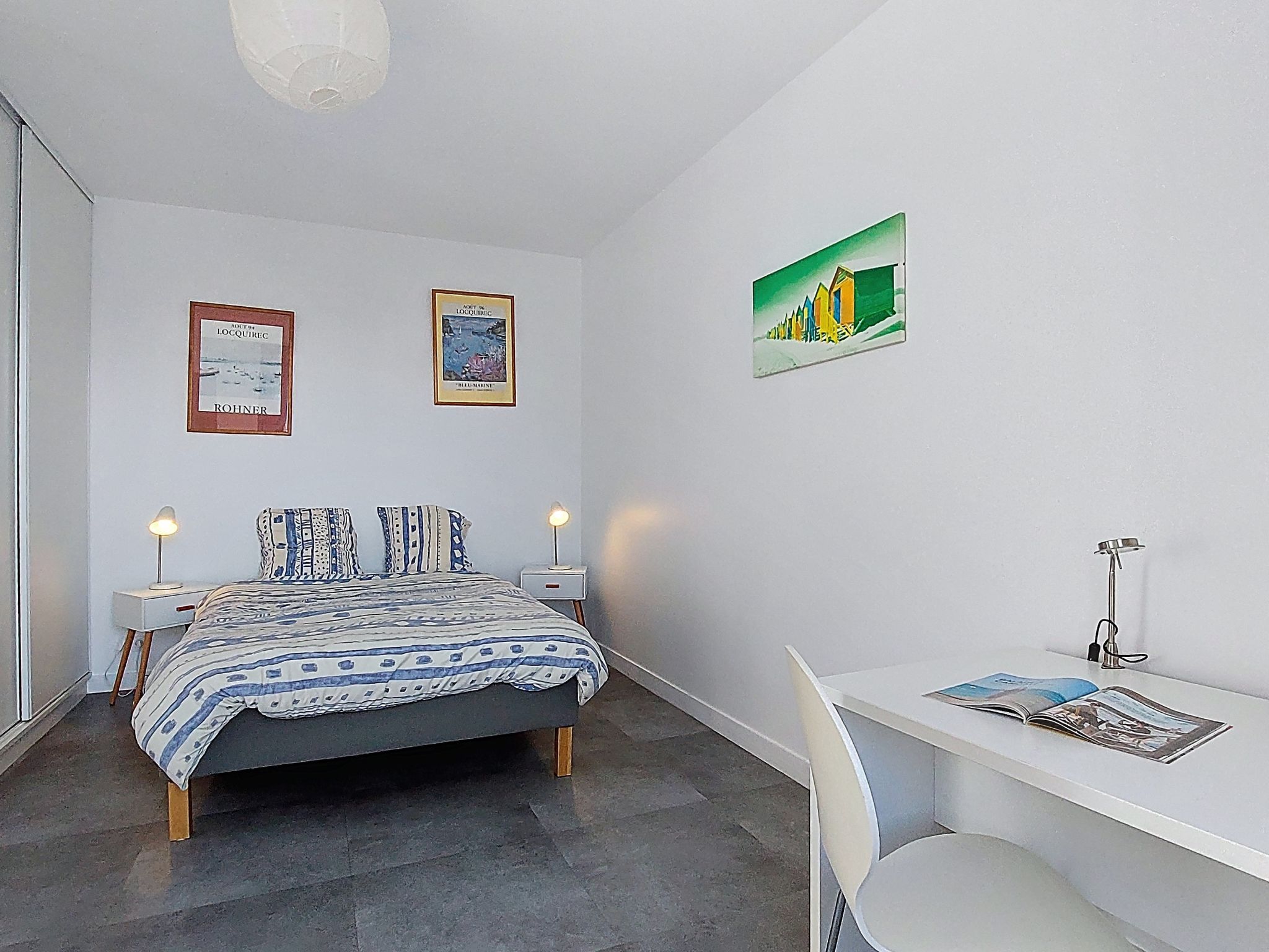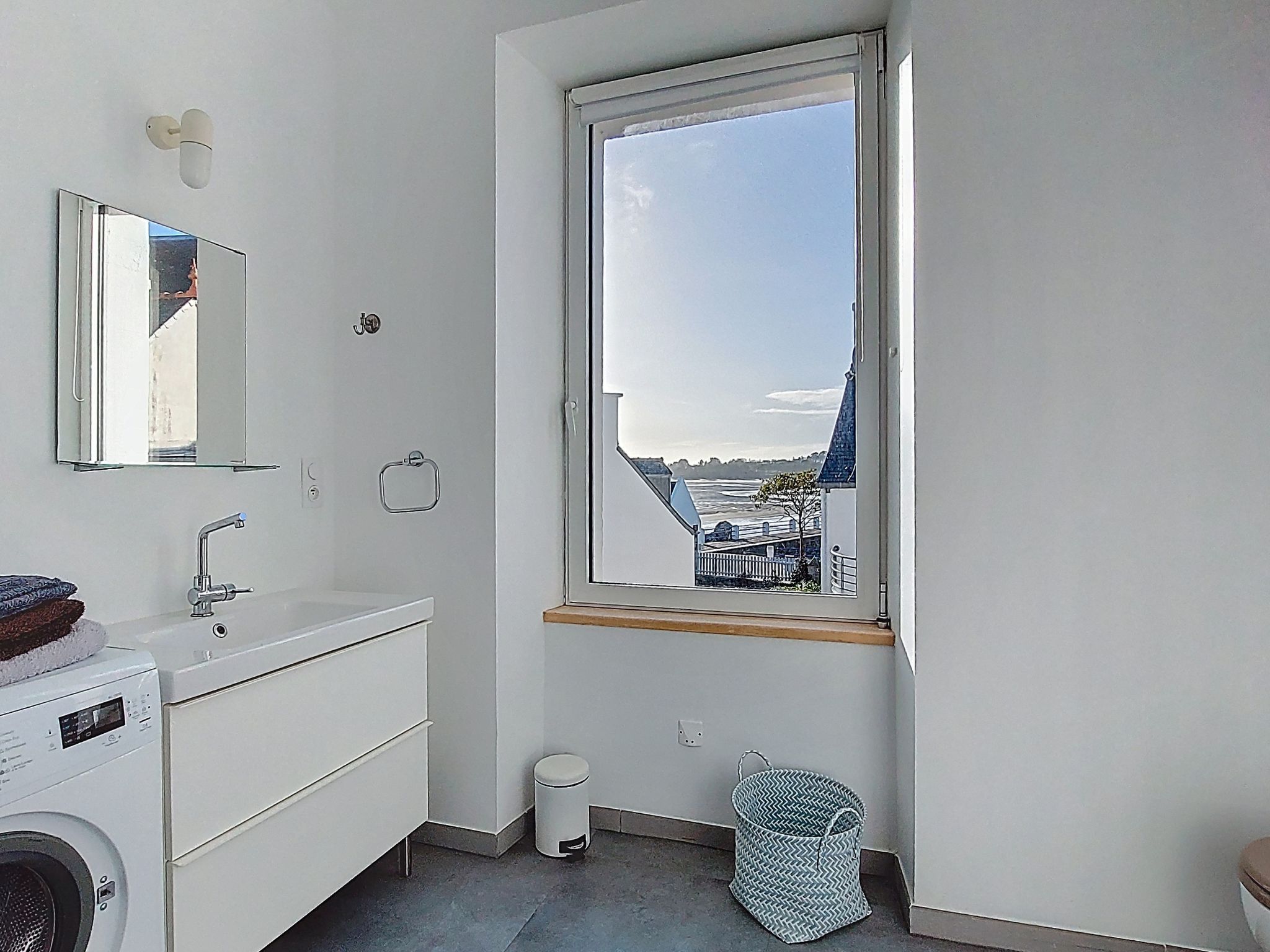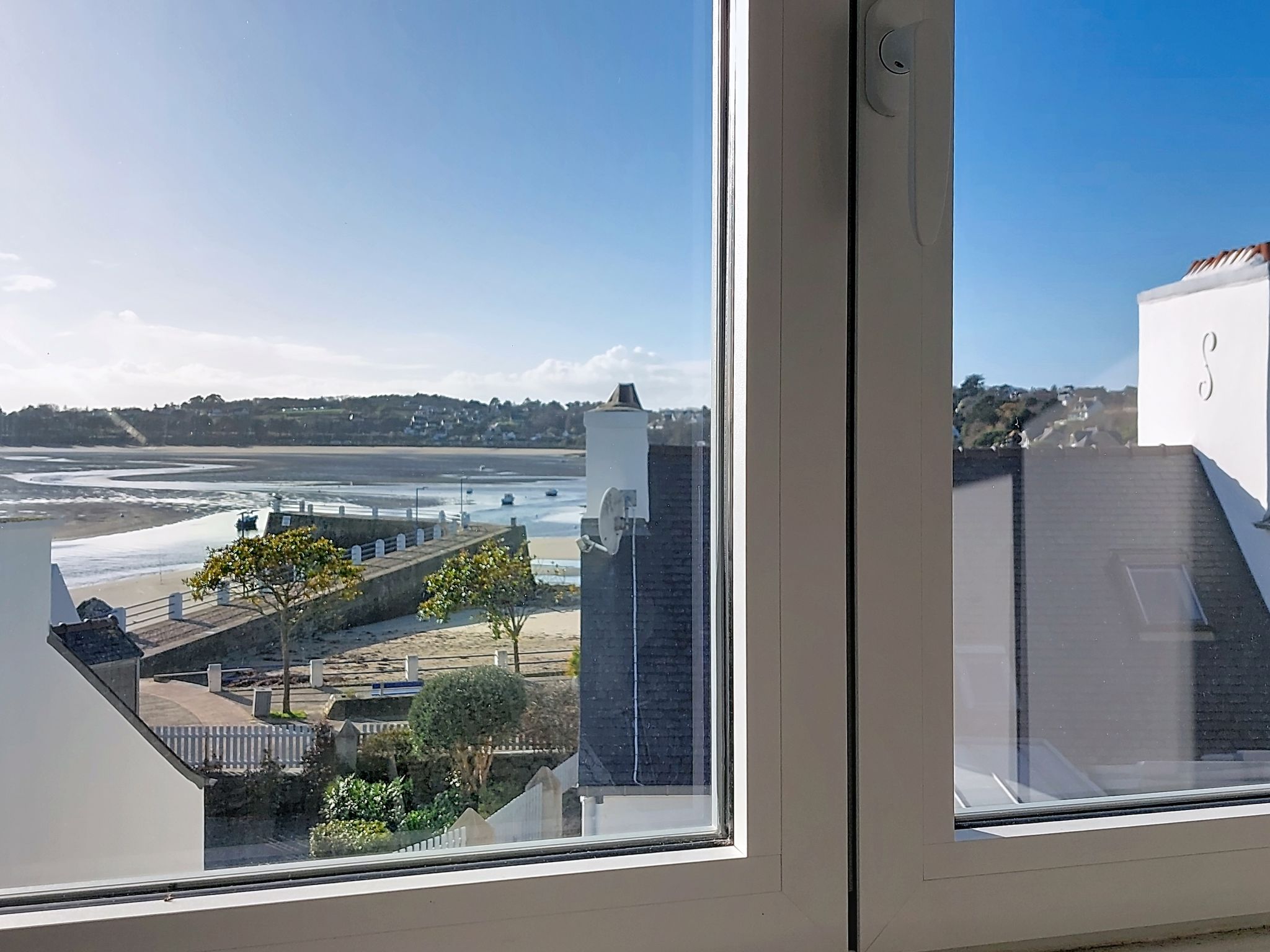 "Ker Soizik", maison 5 pièces 100 m2 sur 3 niveaux. Clair, aménagement agréable et de bon goût: séjour/salle à manger 40 m2, ouvert. Sortie sur la terrasse, orientée sud. Coin cuisine (four, lave-vaisselle, 4 plaques à induction, grille-pain, bouilloire électrique, micro-ondes, congélateur, cafetière électrique, Capsules pour machine à café (Nespresso) (NON INCLUSES)). WC séparé. À l'étage supérieur: 2 chambres 12 m2, chaque chambre avec: 2 grands-lits (140 cm, longueur 190 cm). Douche/WC. 2ème étage: 2 chambres 12 m2, chaque chambre avec: 2 lits (80 cm, longueur 190 cm). Douche/WC. Chauffage électrique. Petite terrasse 10 m2. Meubles de terrasse, barbecue (portable), chaises longues (2), réduit. Vue partielle sur la mer. A disposition: lave-linge, fer à repasser, chaise haute pour enfant, lit bébé jusqu'à 2 ans, sèche-cheveux. Internet (Connexion WIFI, gratuit). Veuillez noter: maison non-fumeur. Maximum 1 animal/ chien de petite taille autorisé. Détecteur de fumée. Annonce d'un particulier (art 155, IV du CGI).