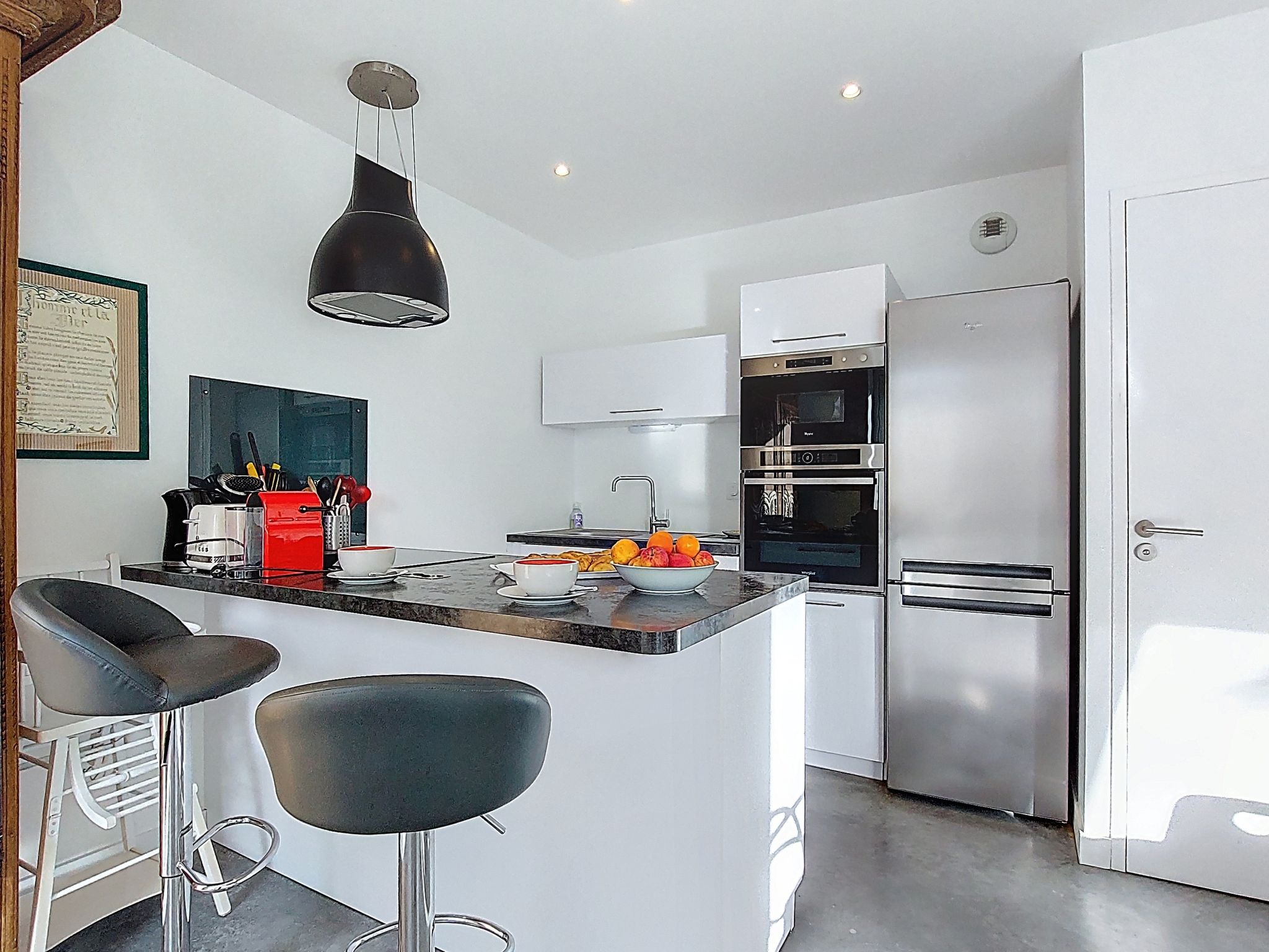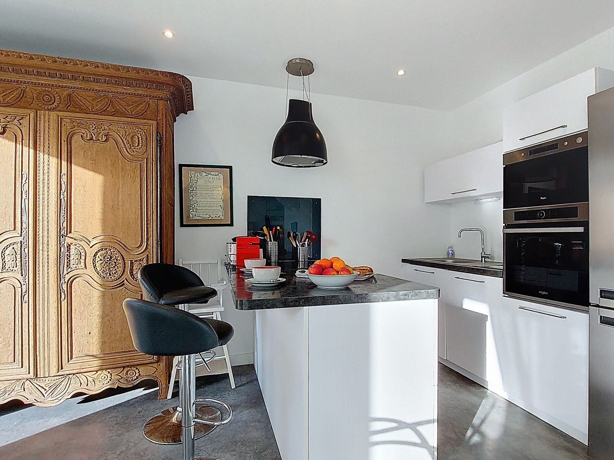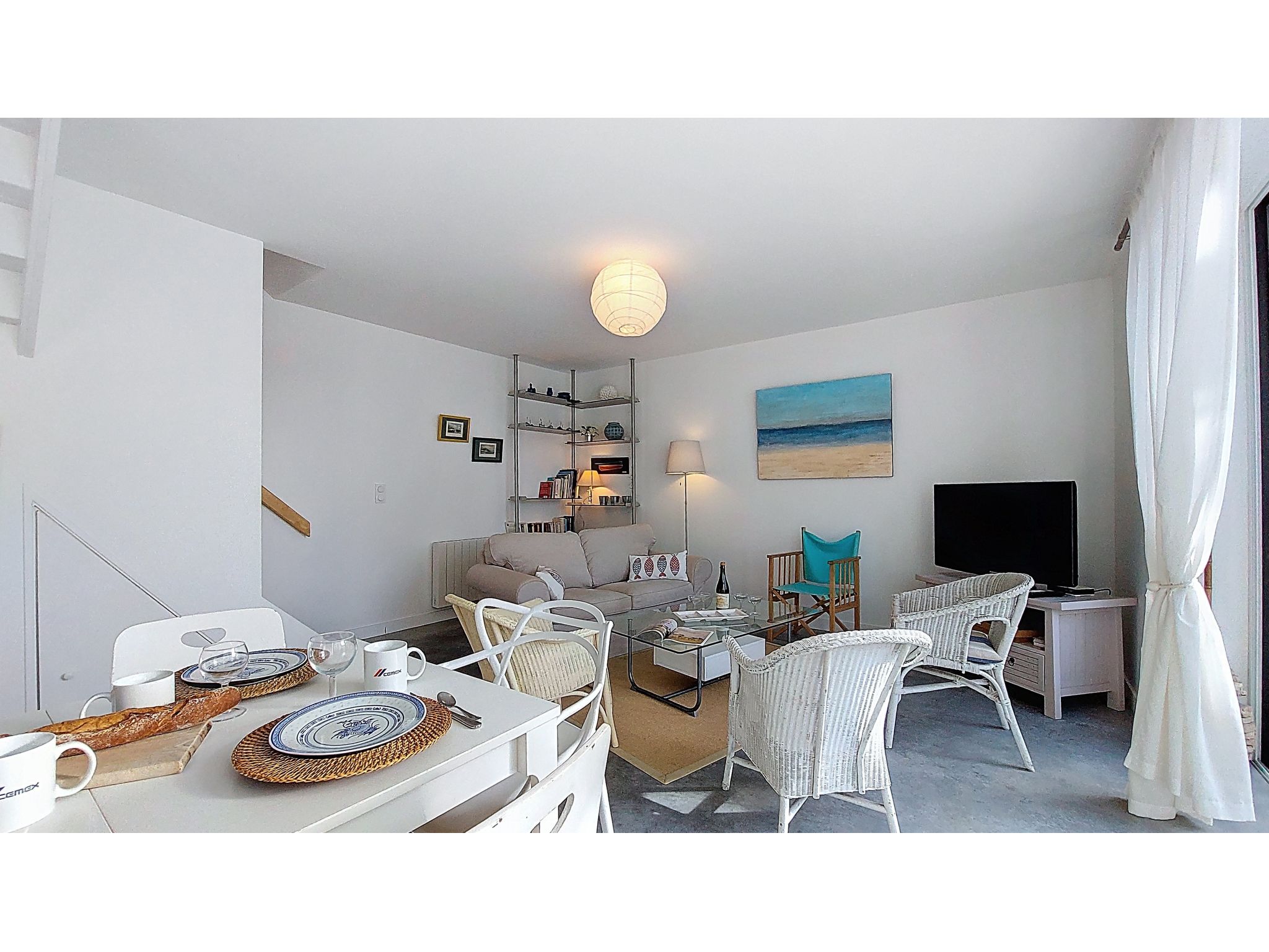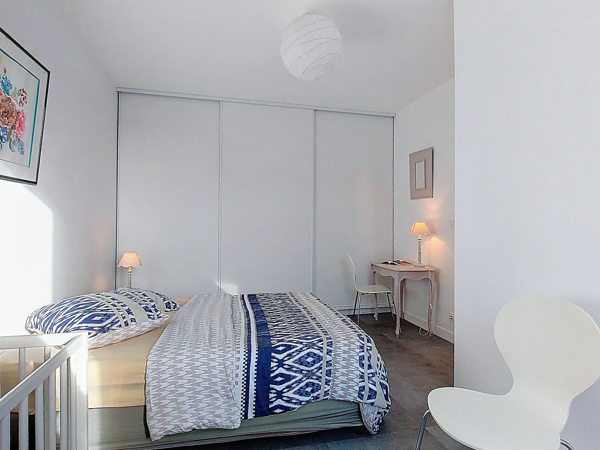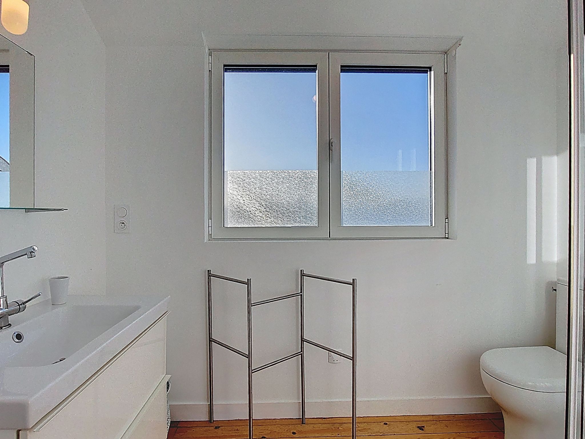 "Ker Soizik", maison 5 pièces 100 m2 sur 3 niveaux. Clair, aménagement agréable et de bon goût: séjour/salle à manger 40 m2, ouvert. Sortie sur la terrasse, orientée sud. Coin cuisine (four, lave-vaisselle, 4 plaques à induction, grille-pain, bouilloire électrique, micro-ondes, congélateur, cafetière électrique, Capsules pour machine à café (Nespresso) (NON INCLUSES)). WC séparé. À l'étage supérieur: 2 chambres 12 m2, chaque chambre avec: 2 grands-lits (140 cm, longueur 190 cm). Douche/WC. 2ème étage: 2 chambres 12 m2, chaque chambre avec: 2 lits (80 cm, longueur 190 cm). Douche/WC. Chauffage électrique. Petite terrasse 10 m2. Meubles de terrasse, barbecue (portable), chaises longues (2), réduit. Vue partielle sur la mer. A disposition: lave-linge, fer à repasser, chaise haute pour enfant, lit bébé jusqu'à 2 ans, sèche-cheveux. Internet (Connexion WIFI, gratuit). Veuillez noter: maison non-fumeur. Maximum 1 animal/ chien de petite taille autorisé. Détecteur de fumée. Annonce d'un particulier (art 155, IV du CGI).