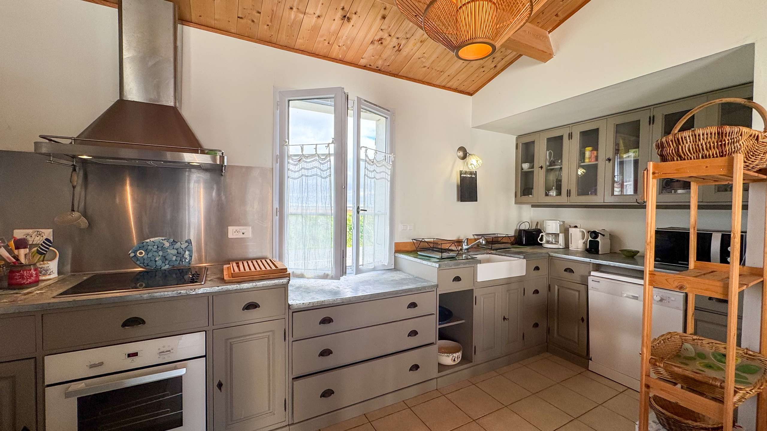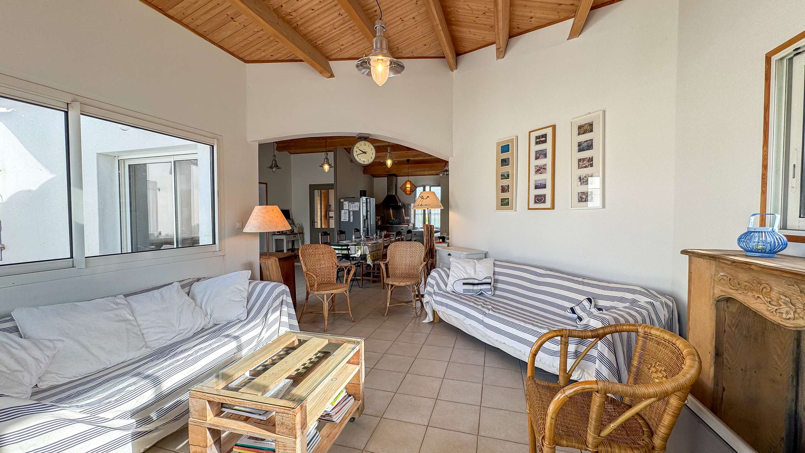 Belle maison de plain-pied moderne et spacieuse. Elle peut accueillir 10 personnes. Vous apprécierez son vaste séjour avec sa cuisine aménagée et équipée. Coté nuit, 5 chambres, 3 salles d'eau, 2 WCs. Vous aurez une piscine CHAUFFEE, protégée par un volet roulant ouverte du 15/05 au 30/09 ( 4m x 6m x 2m). A l'extérieur salon de jardin, transats, parasol, plancha, rac à vélos. PARKING - MENAGE FIN DE SEJOUR ET LINGE OBLIGATOIRES (Linge de lit, serviette de toilette, tapis de bain, torchons)
