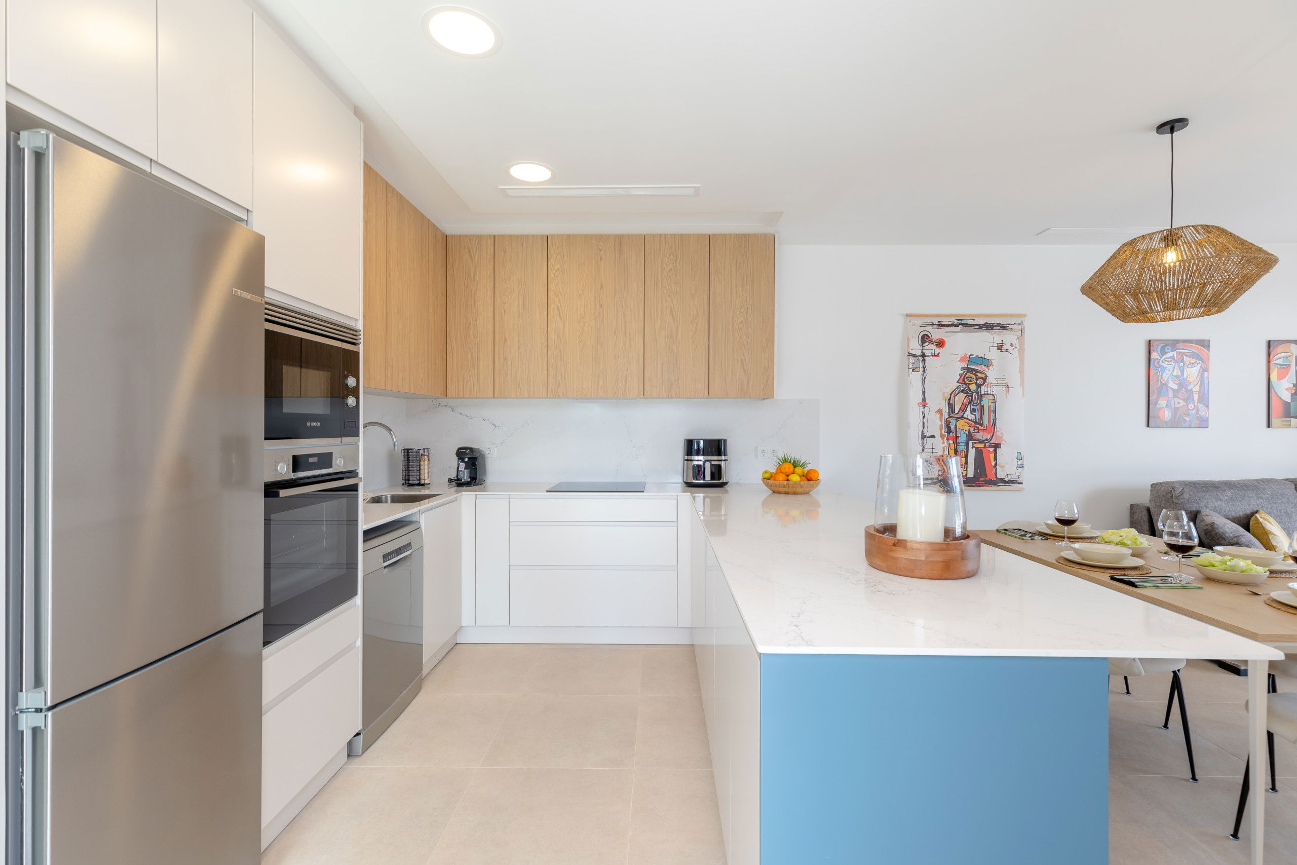 Cuisine moderne et complète, lave-linge, sèche-linge, lave-vaisselle et tout ce qu'il faut pour passer de belles vacances.