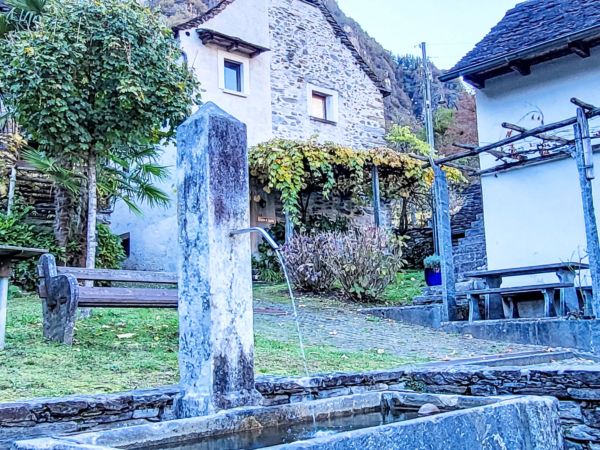 Aurigeno à 13 km de Locarno: Grand cottage accueillant, individuel "Casa Sambuco", de 2 étages, du 19ème siècle, environné par les arbres, prés et vignobles. Au centre d'Aurigeno, situation tranquille, ensoleillée, zone avec peu de trafic, à 20 m de la forêt, à 200 m de la rivière, orientée sud-est. A usage privé: terrain à l'état naturel. Jardinet (3 m2), terrasse. Infrastructures de la Maison: chauffage central, possibilité de chauffage uniquement du 15.Oct. - 30.Avr.. Sentier en escalier (10 marches) jusqu'à la maison. Parking public 100 m possible dans la rue. Zone bleue (payant). Supermarché 2 km, bar 350 m, arrêt de bus "Aurigeno-Moghegno Linie 315" 1 km, plage de galets "Maggia" 800 m. Attractions à proximité: Casa Patricia Highsmith, Kirche San Bartolomeo, Falconeria, Kamelienpark, Piazza Grande, Ascona, Locarno. Les lacs connus sont facilement accessibles: Lago Maggiore. Région de randonnées: Vallemaggia.