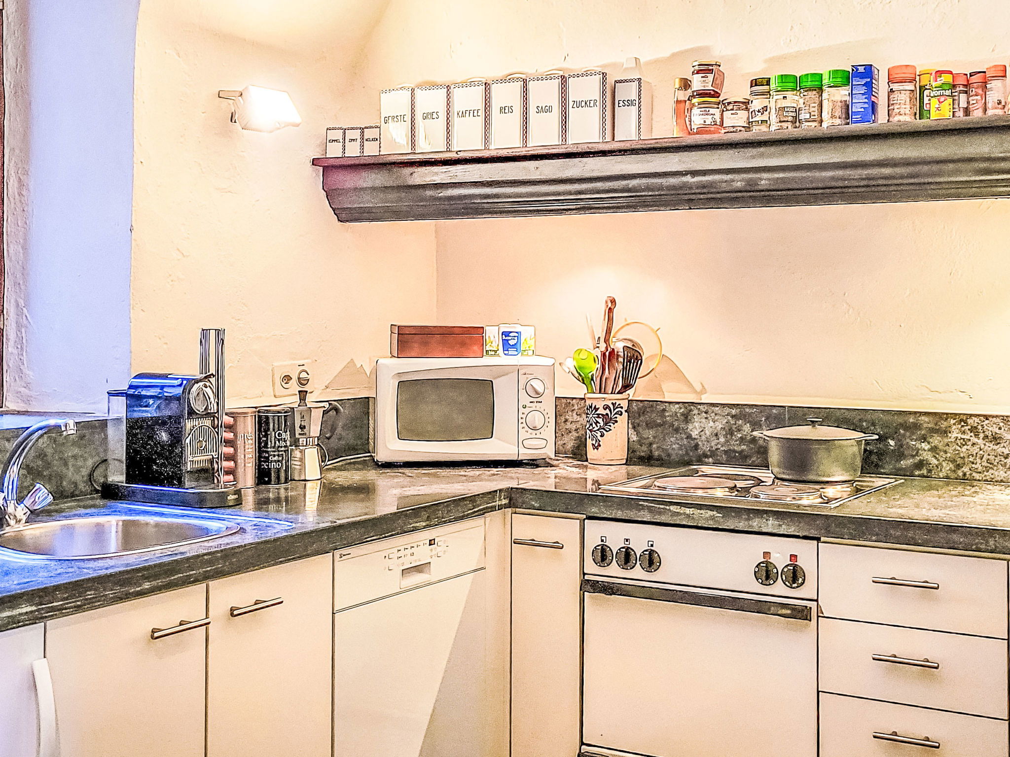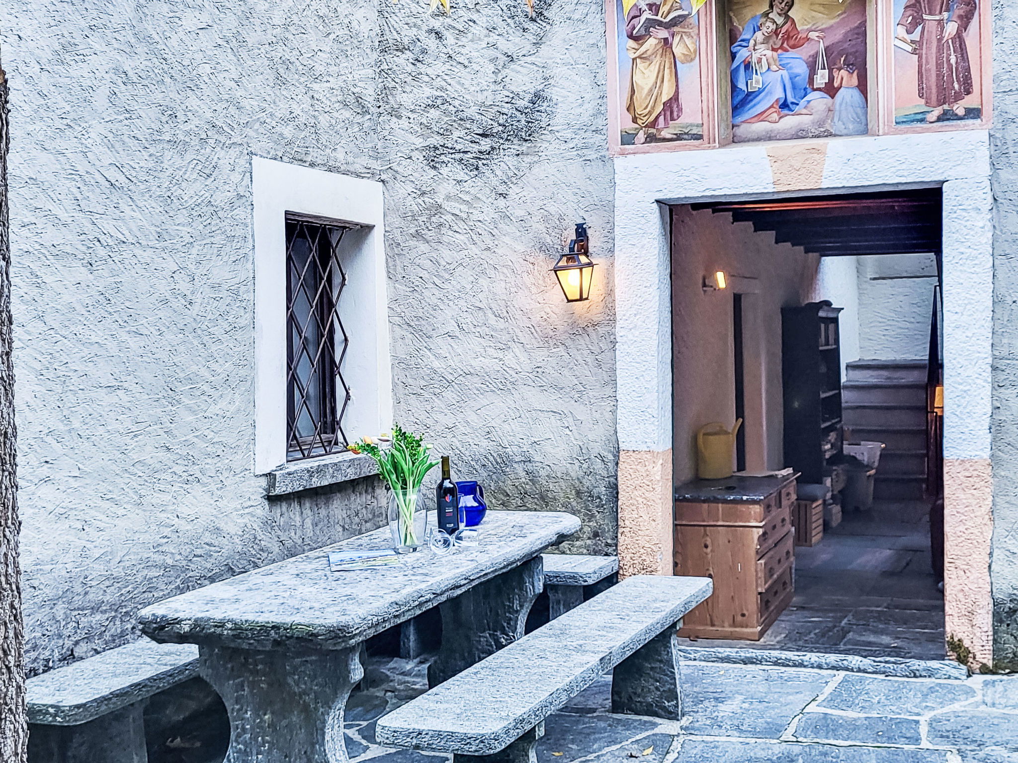 "Casa Sambuco", 4 pièces cottage 90 m2 sur 2 niveaux, situation sud-est. Logement idéal pour 6 adultes. Aménagement rustique et plaisant: séjour/salle à manger avec cheminée. Sortie sur la véranda. Cuisine ouverte (3 plaques de cuisson, four, lave-vaisselle, micro-ondes, cafetière électrique, Capsules pour machine à café (Nespresso) (NON INCLUSES)) avec coin repas. Sol en pierres naturelles. Meubles de terrasse, barbecue. Belle, sur les montagnes, les alentours et la localité. A disposition: Internet (Connexion WIFI, Bande passante: 250 Mbit/s). Veuillez noter: adapté(e) aux familles. Logement non-fumeur. Maximum 1 animal/ chien autorisé. NL-00001234
