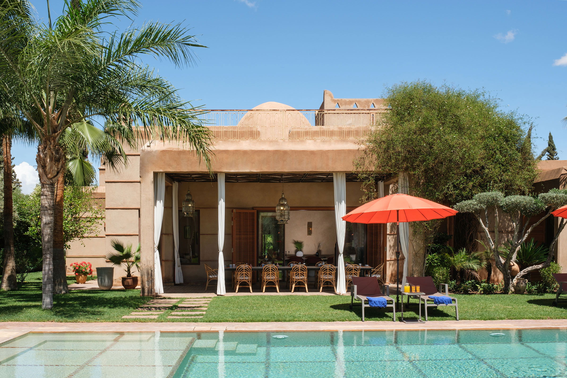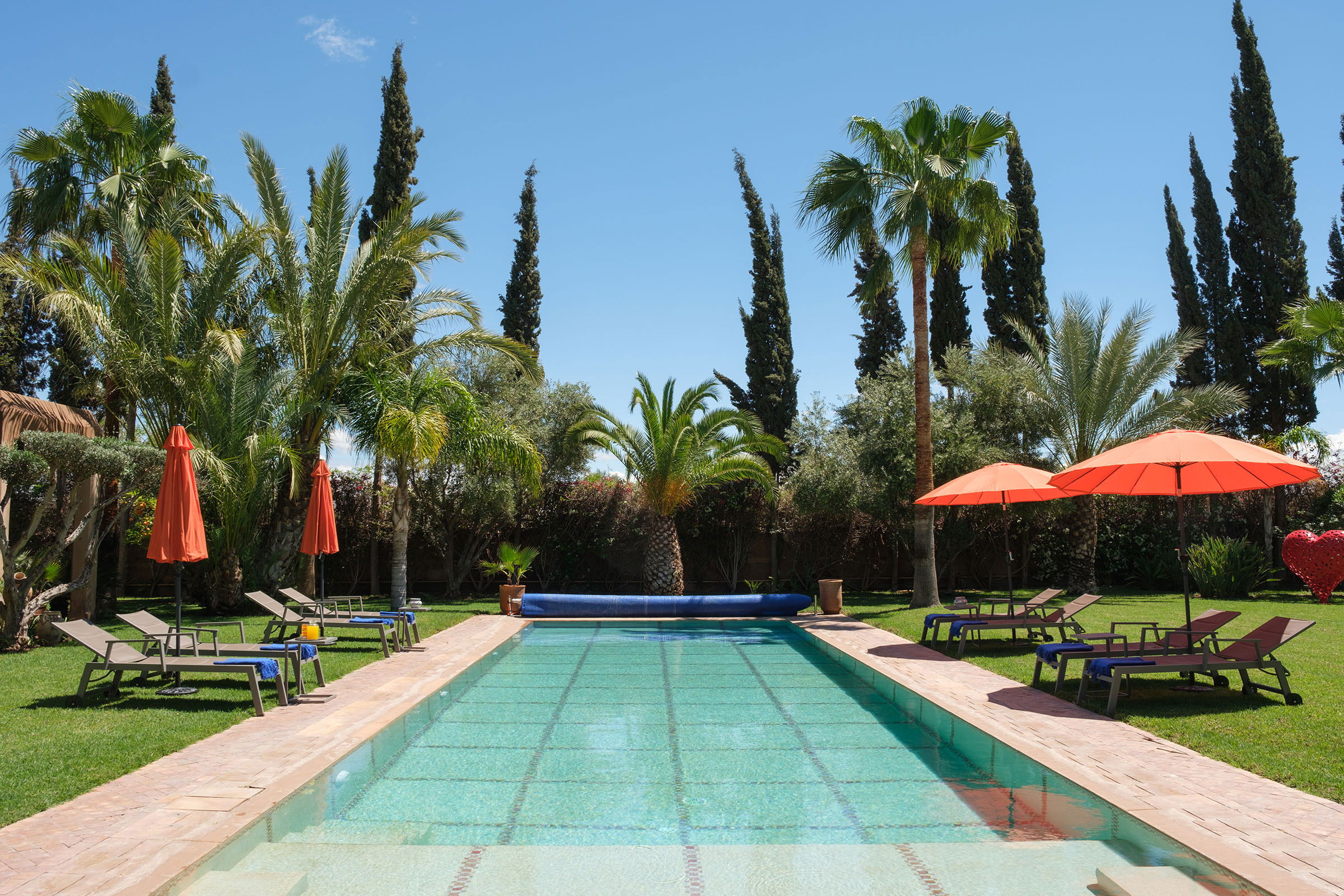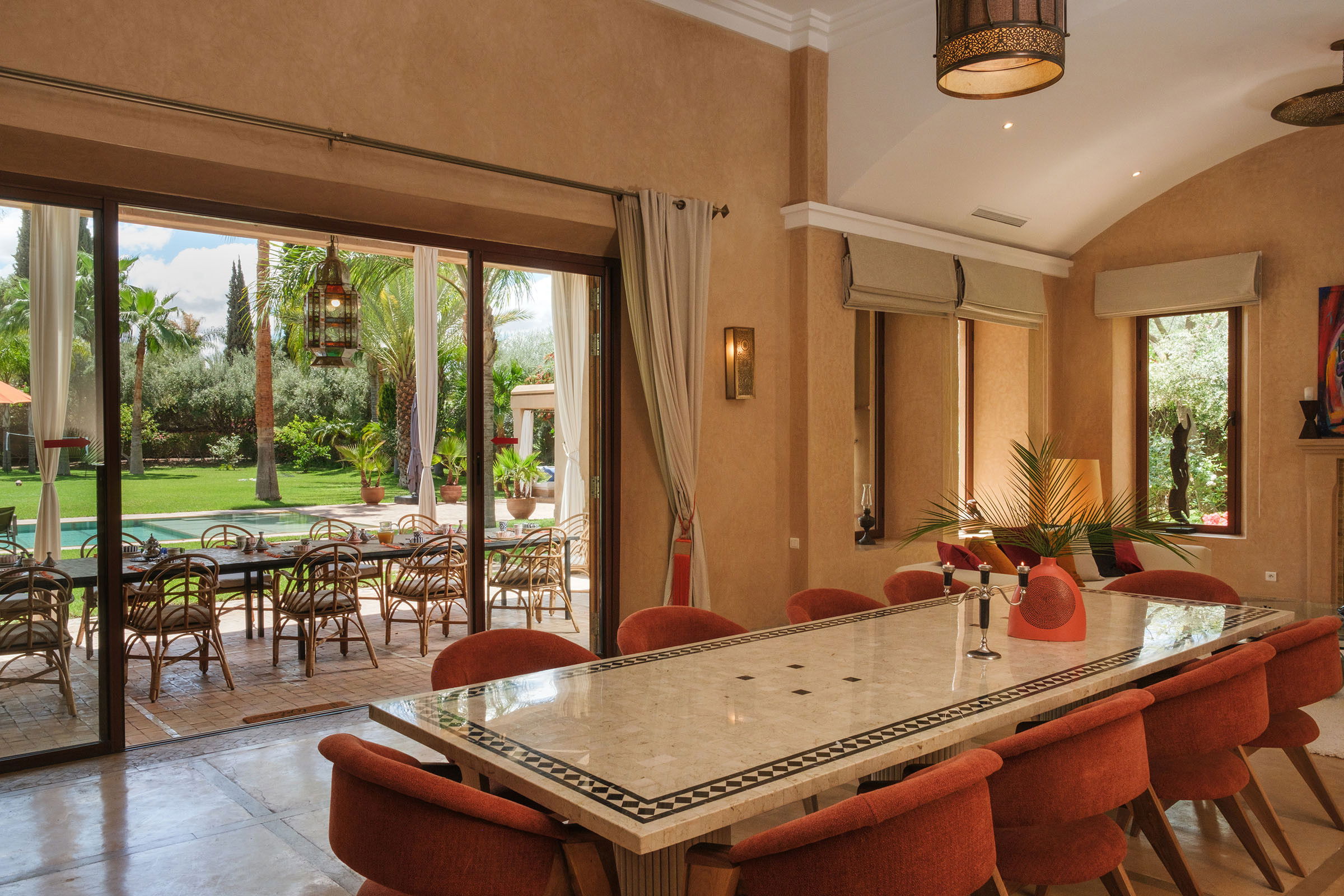 À l'extérieur, une piscine spectaculaire de 18 mètres vous attend, accompagnée de deux charmantes pool houses, de transats et de terrasses ombragées pour des repas en plein air et des moments de détente. Profitez d'un repas préparé par un chef privé (sur demande), ou simplement détendez-vous avec un livre sous le soleil marocain.