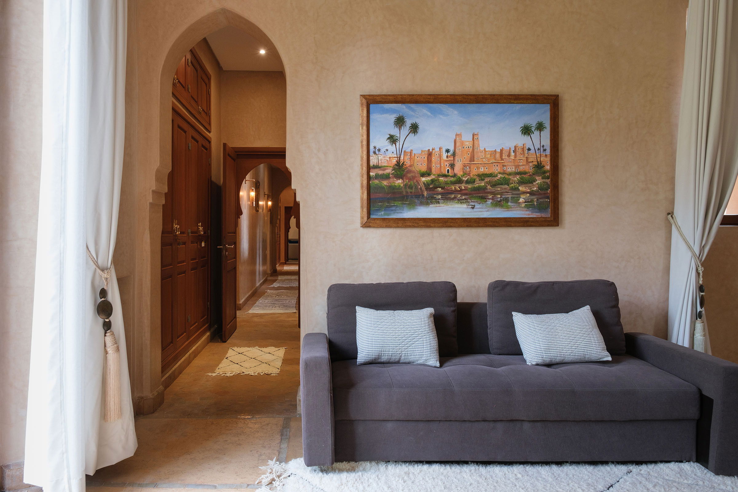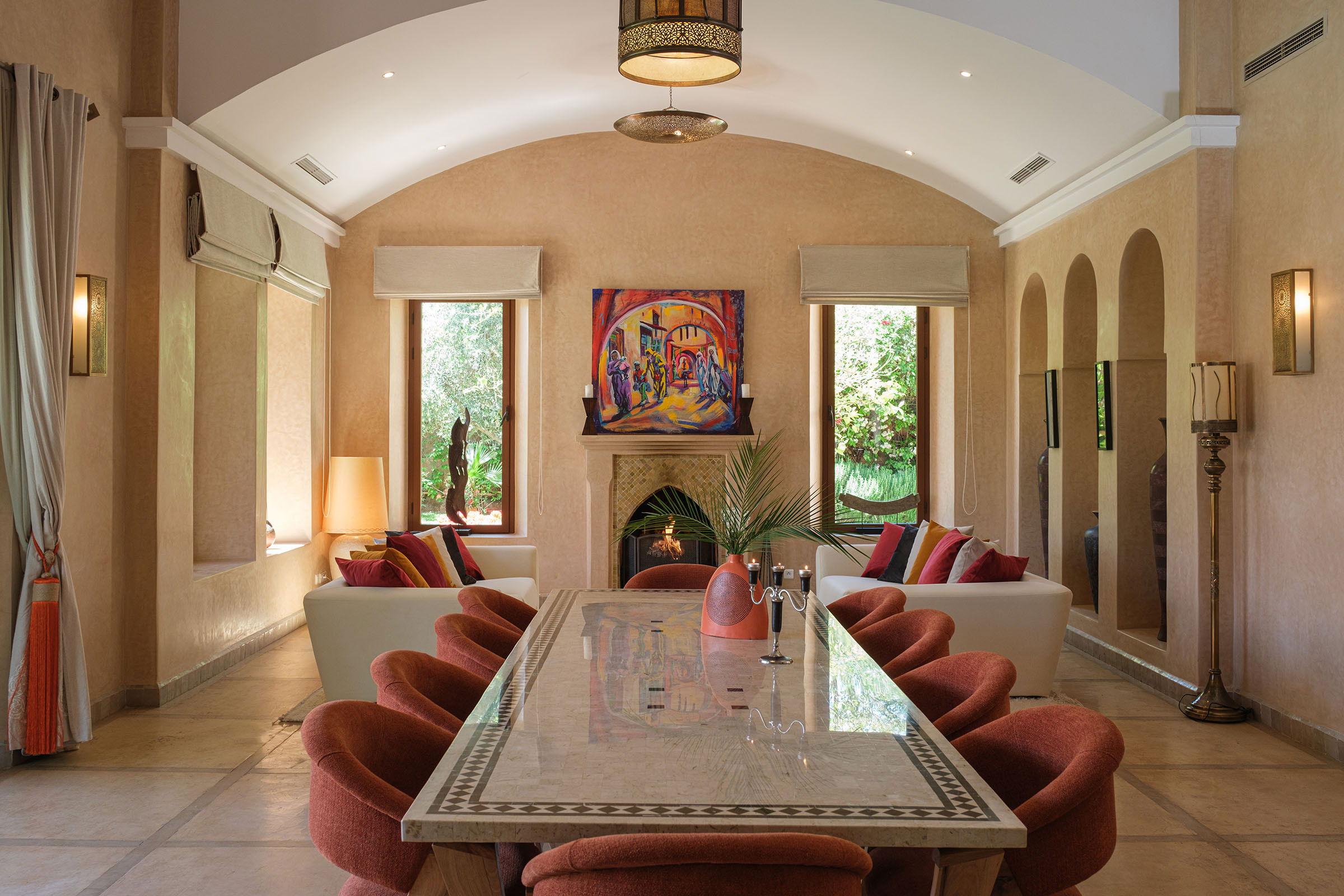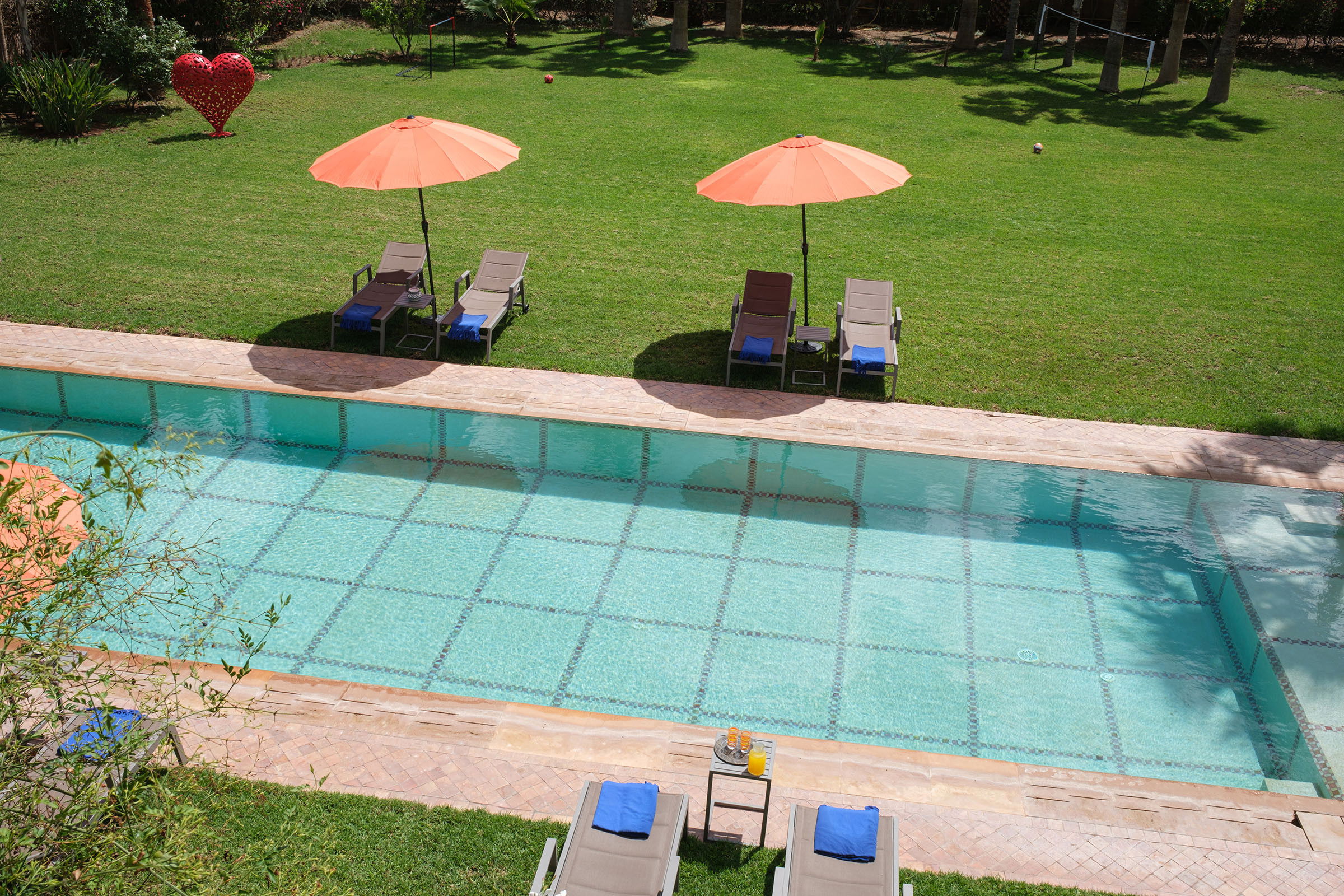 À l'extérieur, une piscine spectaculaire de 18 mètres vous attend, accompagnée de deux charmantes pool houses, de transats et de terrasses ombragées pour des repas en plein air et des moments de détente. Profitez d'un repas préparé par un chef privé (sur demande), ou simplement détendez-vous avec un livre sous le soleil marocain.