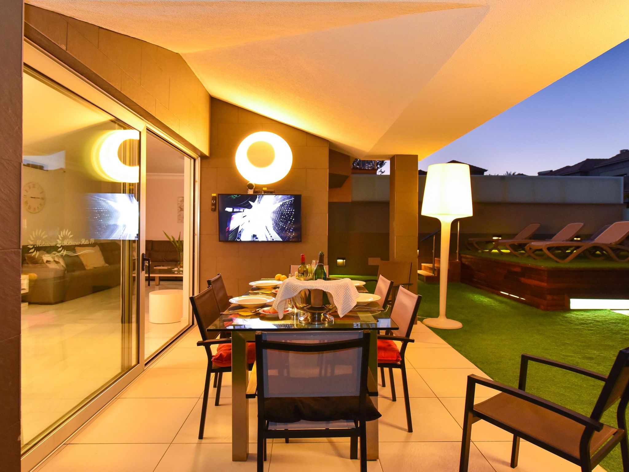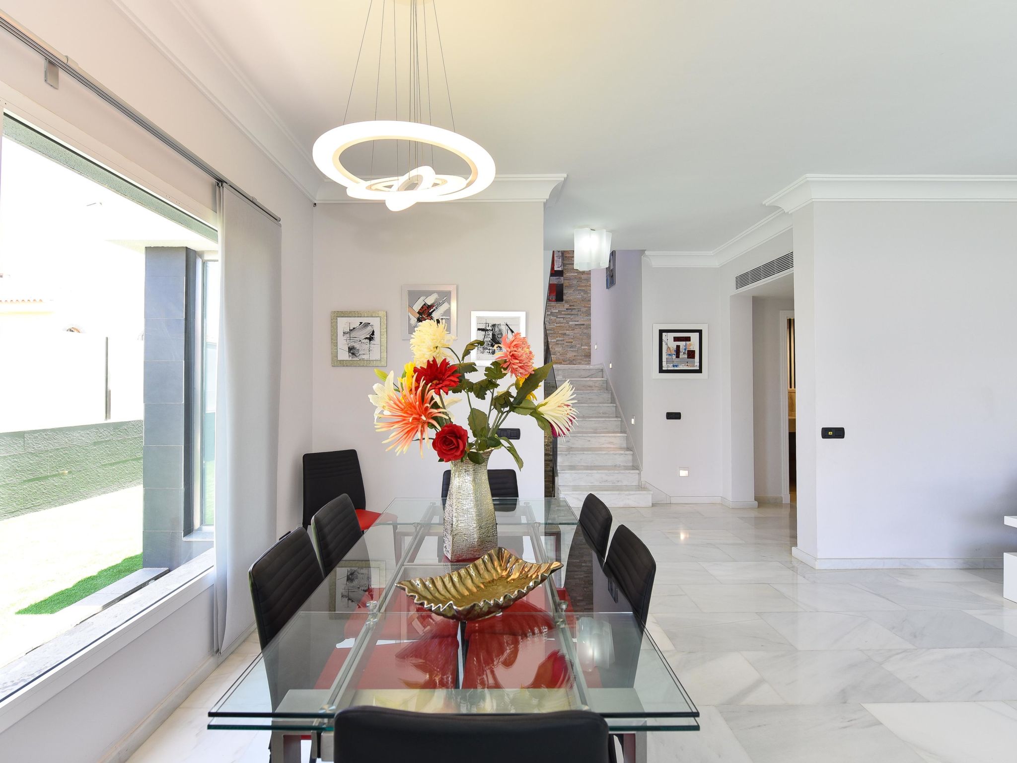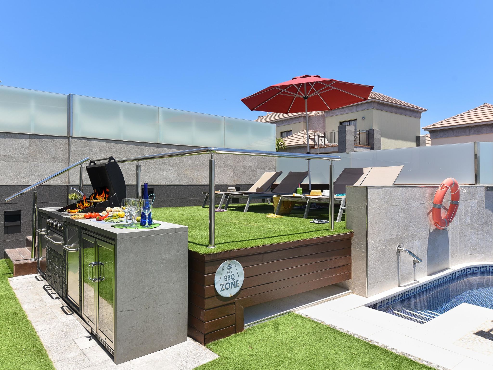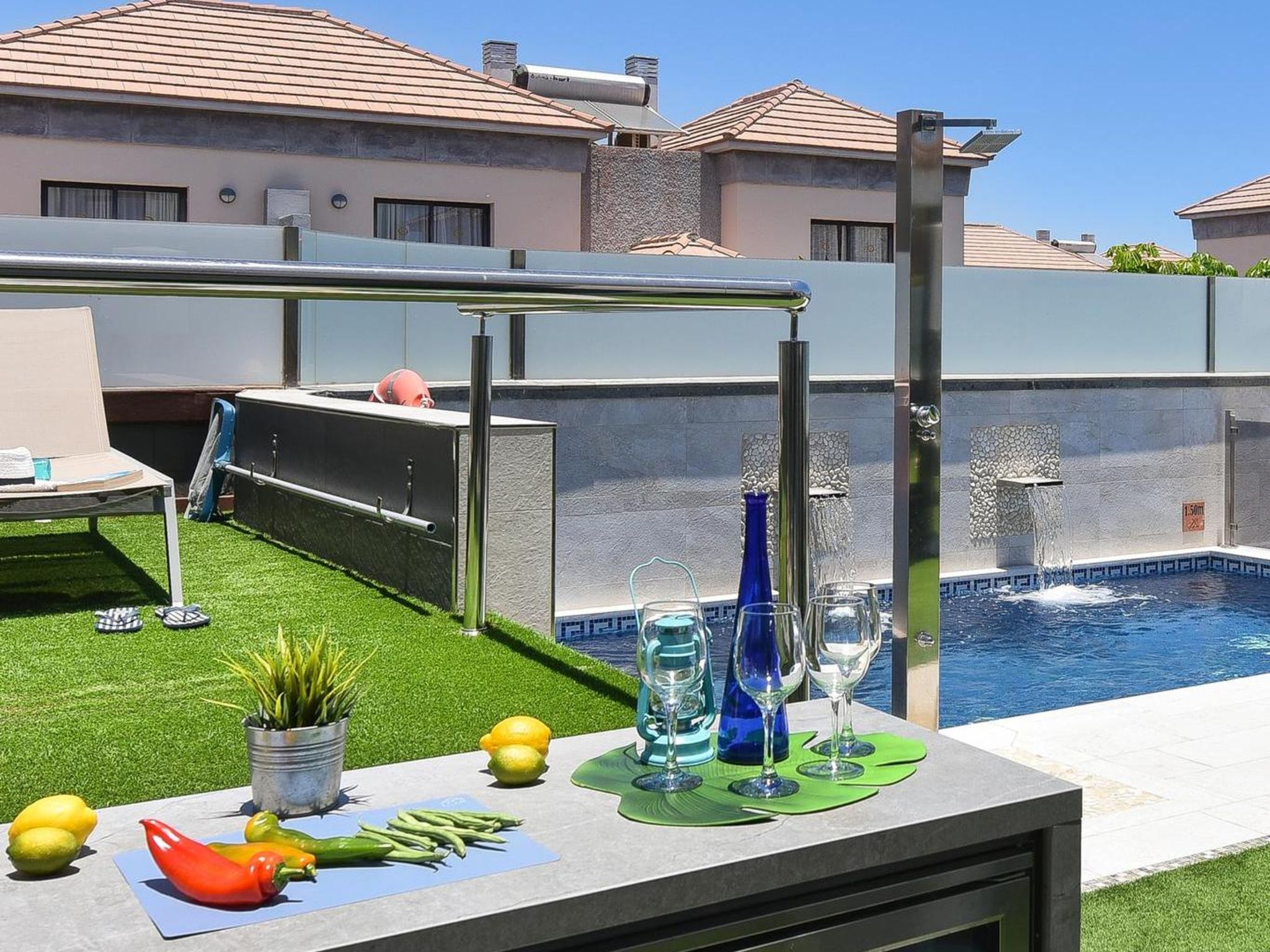 Maison individuelle moderne, luxueuse "Meloneras Hills 19". Au centre de Meloneras, en bordure de la localité Maspalomas, situation centrale, tranquille dans un quartier résidentiel, excellente situation: centrale mais tranquille. A usage privé: jardin (clôturé), piscine (4 x 2 m, profondeur 1 - profondeur 60 cm, disponibilité saisonnière: 01.Jan. - 31.Dec.). Douche extérieure, place de parking près de la maison. Magasins, magasin d'alimentation, supermarché 500 m, restaurant 100 m, arrêt de bus "Faro de Maspalomas" 1.2 km, plage de sable "300". Terrain de golf (18 trous) 2.4 km, tennis 500 m. Veuillez noter: voiture recommandée. Équipement pour bébés sur demande. Le propriétaire n'accepte pas les groupes de jeunes. Aéroport 33 km de la maison.