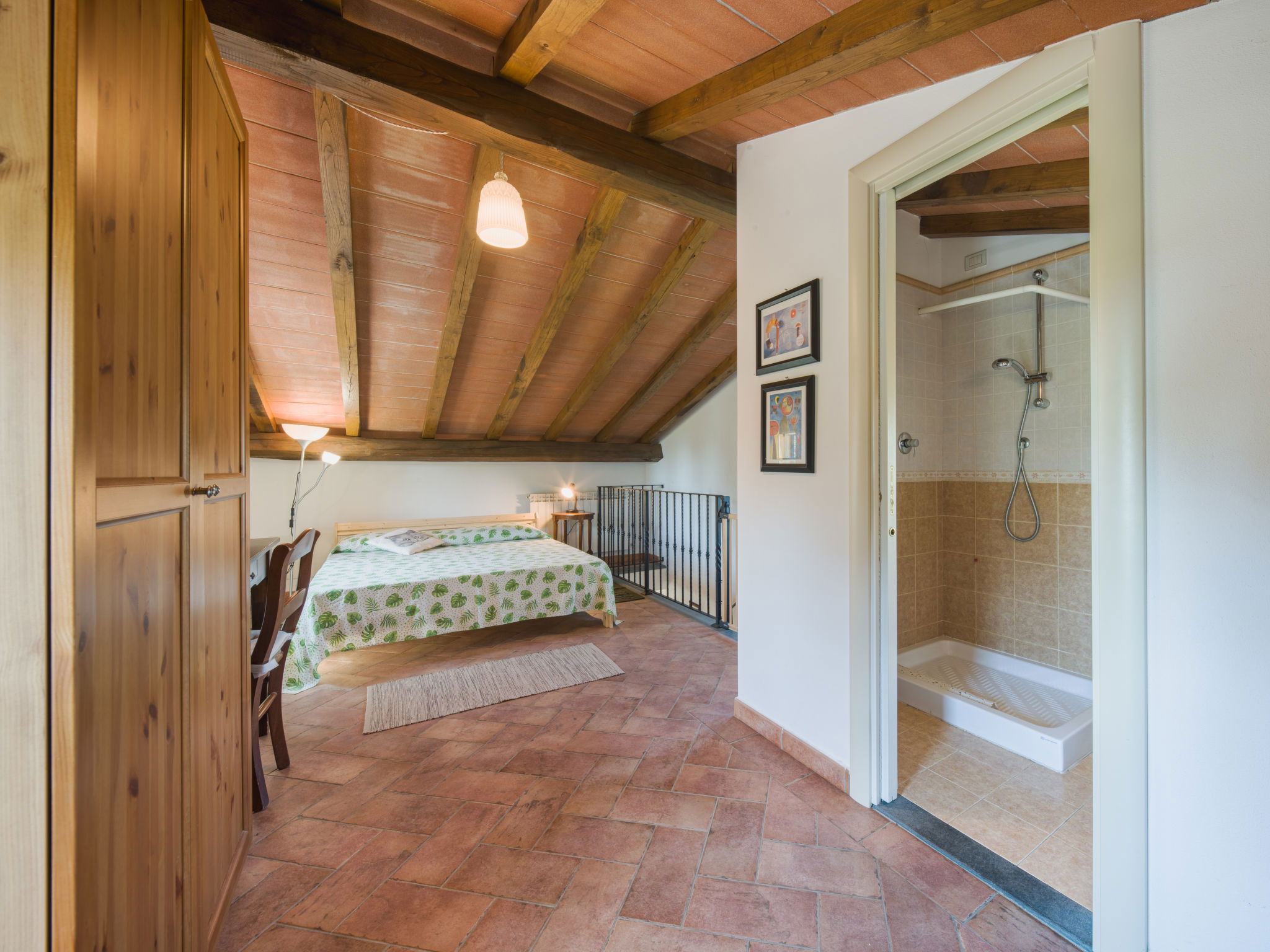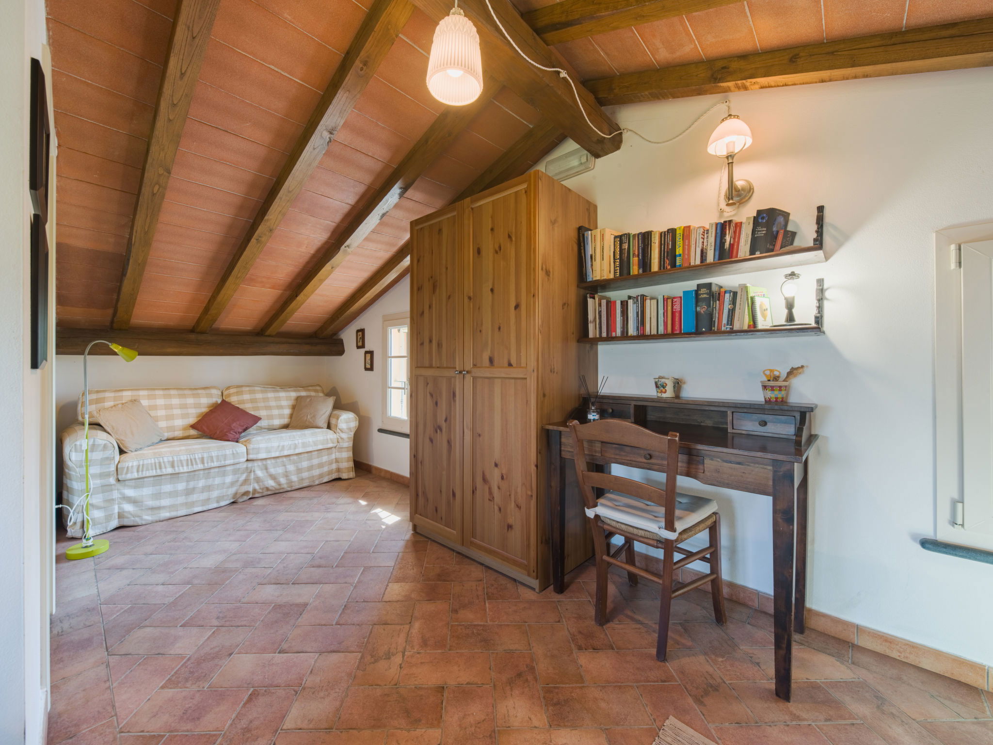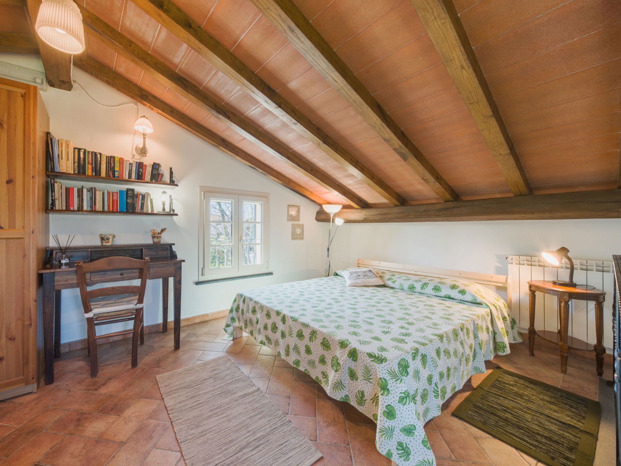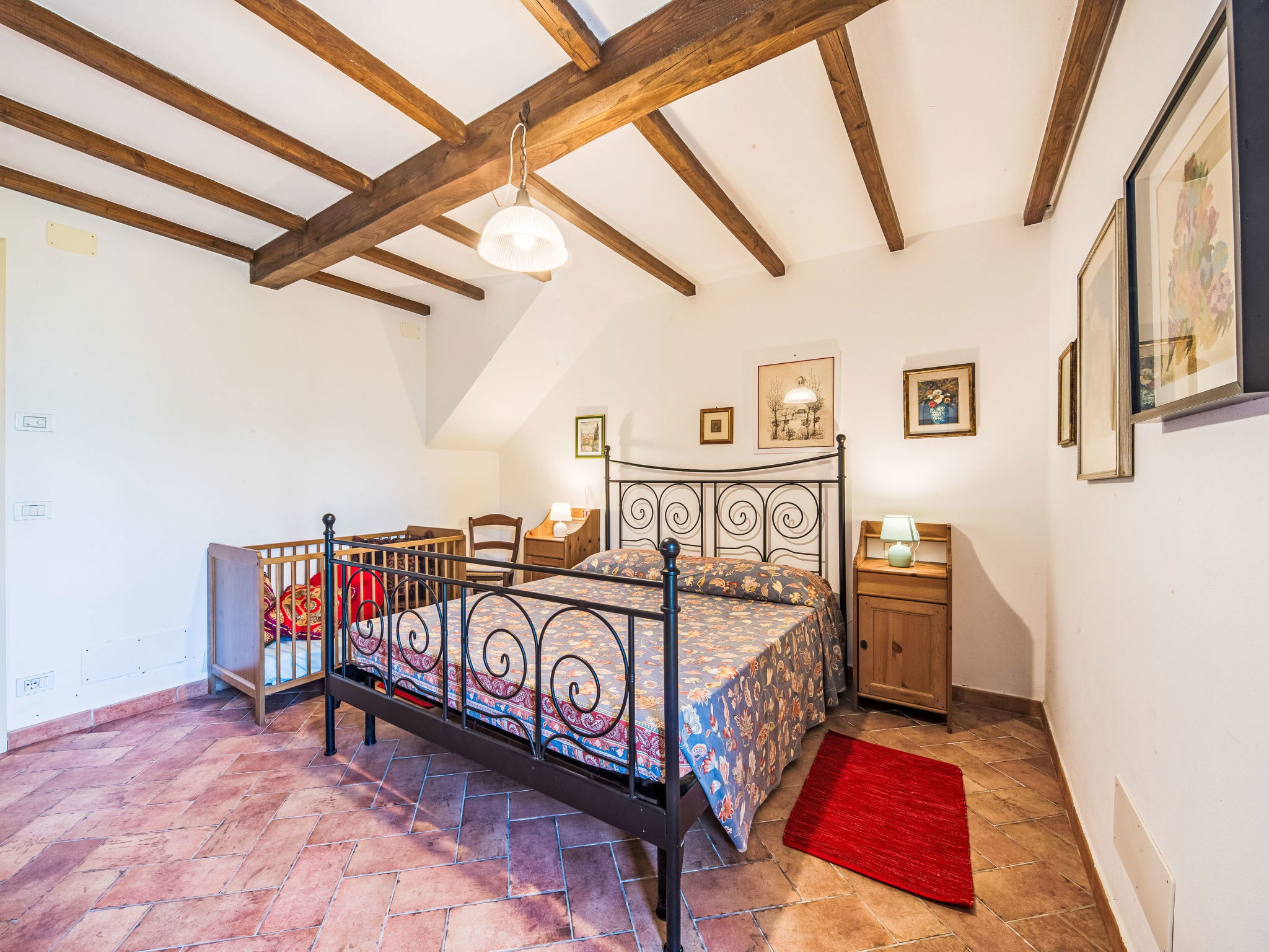 Villa 5 pièces 110 m2 sur 3 niveaux. Clair, aménagement confortable et plaisant: séjour ouvert avec TV (satellite). Sortie sur le jardin. Cuisine ouverte (4 plaques de cuisson, four, lave-vaisselle, grille-pain, bouilloire électrique, micro-ondes, congélateur, cafetière électrique) avec table pour les repas. Sortie sur la véranda. WC séparé. À l'étage inférieur: 1 chambre double. Sortie sur la terrasse. 1 chambre avec 2 lits. Sortie sur la terrasse. Douche/bidet/WC. À l'étage supérieur: séjour/chambre à coucher mansardé avec 1 divan-lit et 1 lit double. Douche/bidet/WC. Chauffage. Grand jardin. Meubles de terrasse, barbecue, chaises longues (3). Vue sur les montagnes et les alentours. A disposition: lave-linge, fer à repasser, moustiquaire, chaise haute pour enfant, lit bébé jusqu'à 2 ans, sèche-cheveux. Internet (Connexion WIFI, en sus). Place de parking (cloturée, 3 Voitures) près de la maison. Veuillez noter: maison non-fumeur. Maximum 1 animal/ chien autorisé. Détecteur de fumée, extincteur. IT046018C2CFXIRQBQ