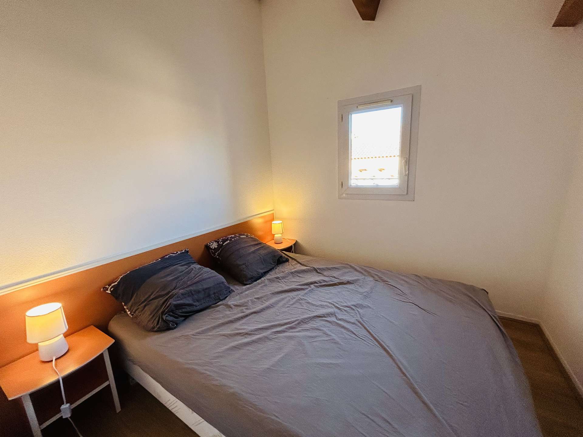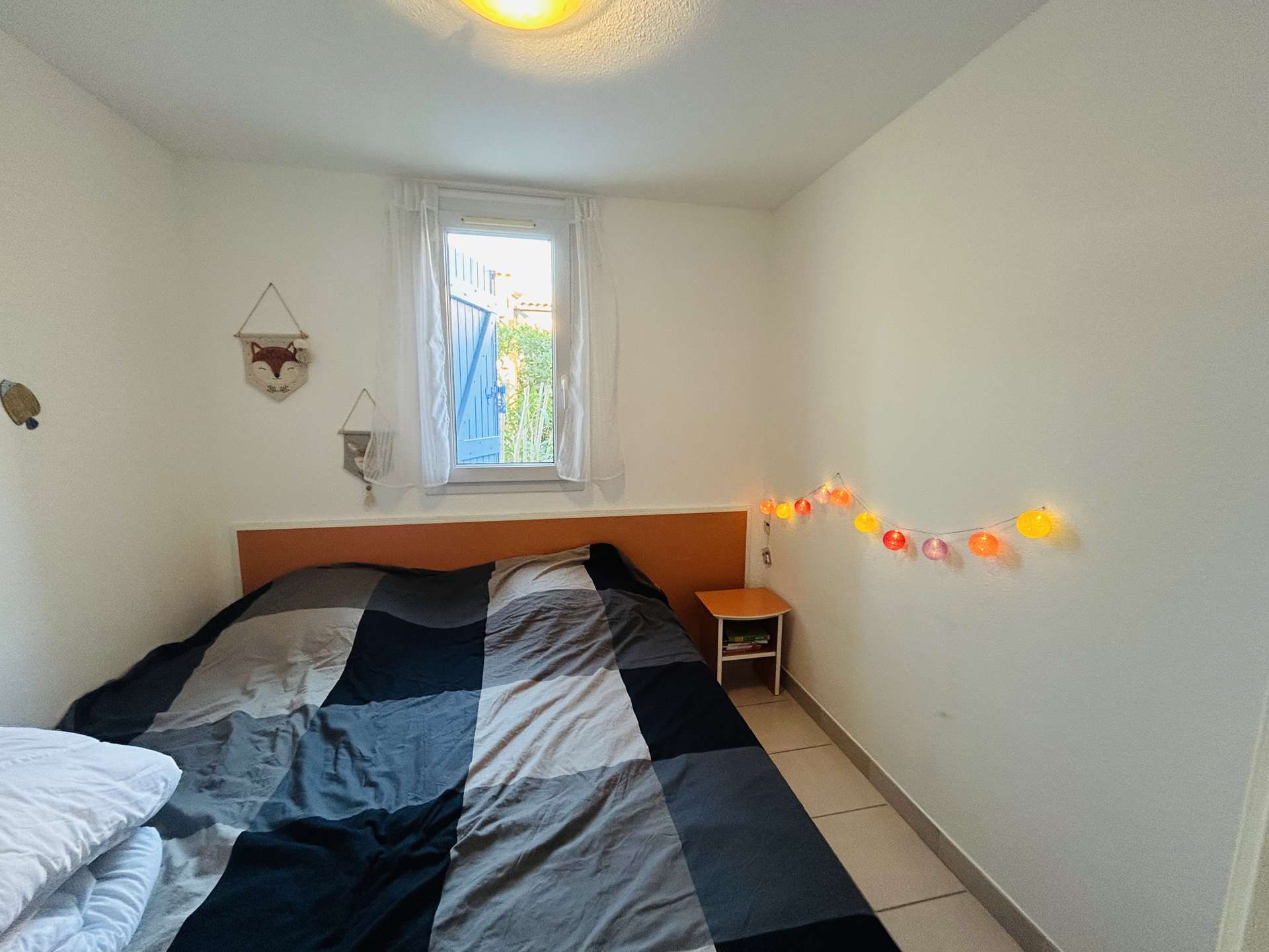 Ce logement de vacances à la mer est composé au rez de chaussé d’un séjour avec banquette et télévision(sous réserve d'une bonne réception), d’un coin cuisine, d’une chambre avec deux lits 1 personne et d’ une salle d'eau avec WC. A l'étage se trouve une chambre avec un lit 2 personnes et une mezzanine comprenant un lit 1 personne.