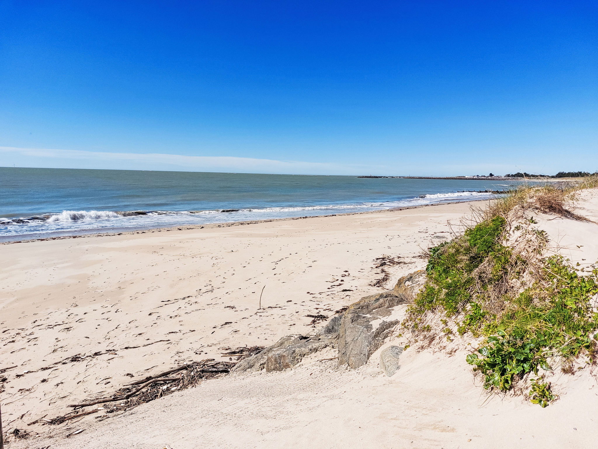 L'Epine-Noirmoutier: Maison individuelle "Tranquille en bord de Mer". À 500 m du centre de L'Epine, à 4.7 km du centre de Noirmoutier-en-L'Ile, excellente situation: centrale mais tranquille, à 800 m de la mer, à 800 m de la plage, dans une impasse. A usage privé: cour. Douche extérieure, terrasse (100 m2), place de parking. Magasins, restaurant 500 m, arrêt de bus "RP de l'Europe, La Guérinière" 3 km, plage de sable "de la Martinière/Thibaudière" 800 m. Port plaisance 2.8 km, ecole de voile 2.8 km. Attractions à proximité: Marais Salants de l'île de Noirmoutier 1.5 km, Port Morin 2.8 km, Port de l'Herbaudière 6 km, Bois de la Chaize 8 km, Le Gois 12 km, Challans 40 km.