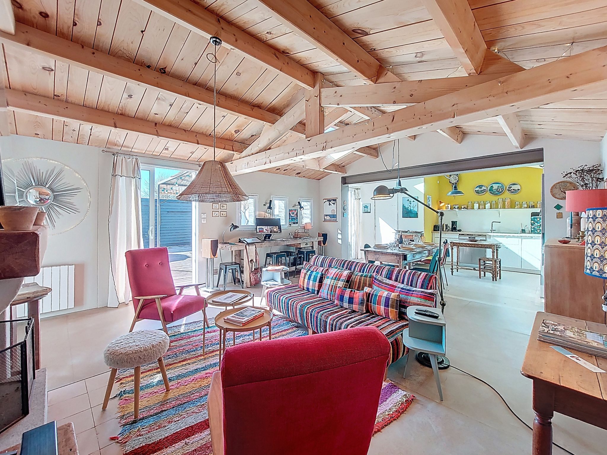Maison 4 pièces 90 m2. Aménagement très agréable et de bon goût: entrée. Séjour avec cheminée (uniquement à titre de décoration), TV (écran plat). Sortie sur la terrasse. 1 chambre avec 2 lits (90 cm, longueur 200 cm). 1 chambre avec 1 grand-lit (140 cm, longueur 190 cm). Sortie sur la terrasse. 1 chambre avec 1 grand-lit (140 cm, longueur 190 cm). Sortie sur la terrasse. Cuisine ouverte (four, lave-vaisselle, 3 plaques vitrocéramiques, grille-pain, bouilloire électrique, micro-ondes, congélateur, cafetière électrique). Douche, 2 WC séparés. Chauffage électrique. Grande terrasse, situation sud. Meubles de terrasse, barbecue électrique (portable). A disposition: lave-linge, sèche-linge, sèche-cheveux. Internet (Connexion WIFI, gratuit). Veuillez noter: maison non-fumeur. Maximum 1 animal/ chien autorisé. Détecteur de fumée. A noter : Les chambres sont en enfilade et communiquent via des sanitaires en commun. Annonce d'un particulier (art 155, IV du CGI). 85083000349F9