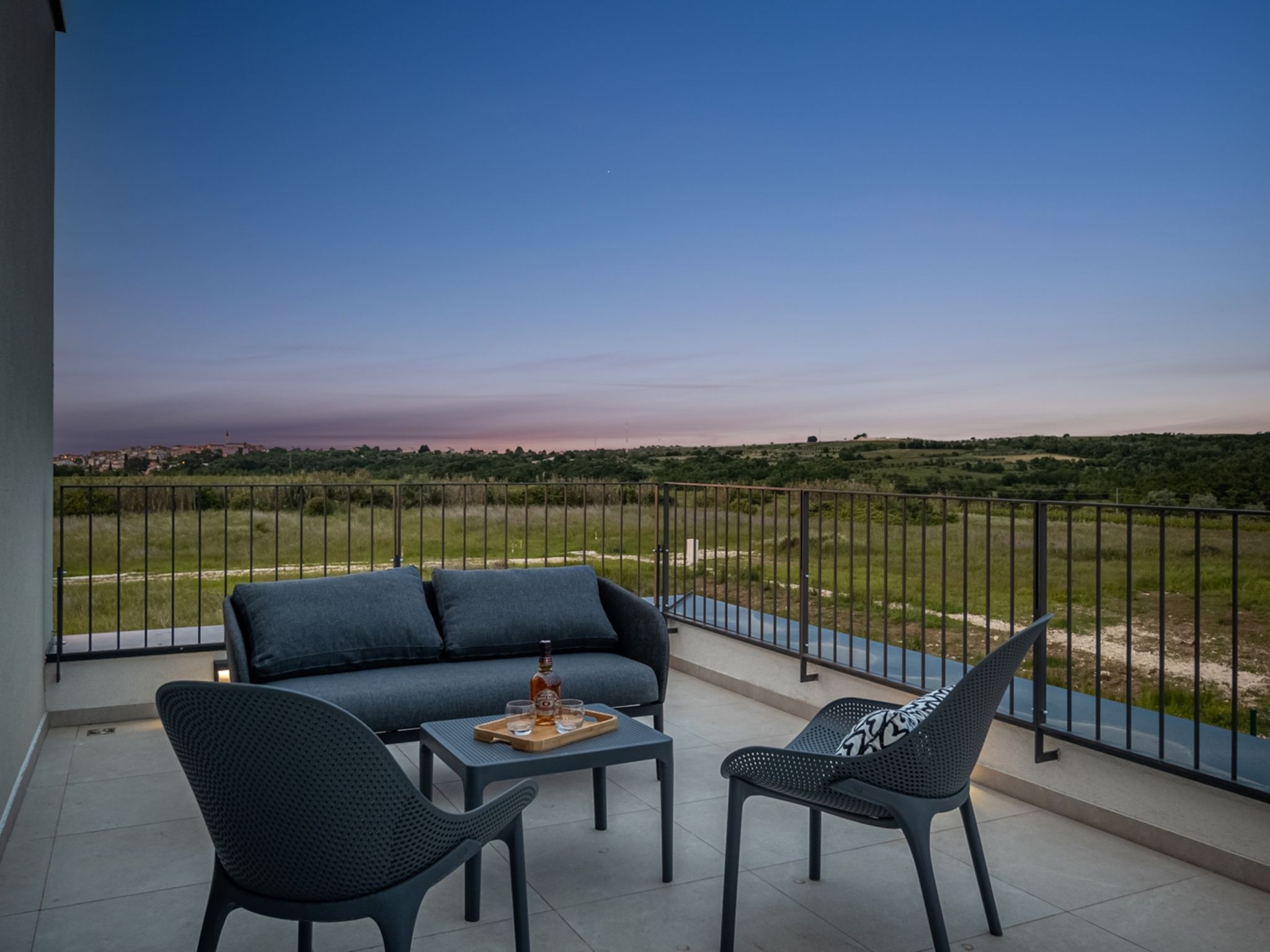 Villa moderne, luxueuse "La Perla", de 2 étages, année de construction 2021. À 1 km du centre de Nova Vas, à 2 km du centre de Brtonigla, à 10 km du centre de Novigrad, situation ensoleillée, à 8.2 km de la mer. A usage privé: terrain 900 m2 (clôturé) avec pelouse, piscine rectangulaire, chauffée (60 m2, profondeur 135 cm, disponibilité saisonnière: 10.Avr. - 05.Nov.) avec marches intérieures. Douche extérieure, bain à remous , badminton, terrasse (10 m2), meubles de jardin, espace barbecue. Infrastructures de la Maison: accès internet, sauna, baby foot, trampoline, lave-linge. A disposition: vélos (2). Accès en voiture (500 m chemin non goudronné). Place de parking (pour 4 voitures) près de la maison sur le terrain. Magasins 1.5 km, restaurant 650 m, arrêt de bus 4 km, plage de graviers 8.2 km. Chemins de randonnées pédestres depuis la maison, piste cyclable 100 m. Attractions à proximité: Aquapark 2 km. Groupes de jeunes sur demande seulement. Veuillez noter: Aéroport 20 km de la maison. Piscine chauffée (en sus). Il y a des caméras de surveillance dans le parking et l'allée.