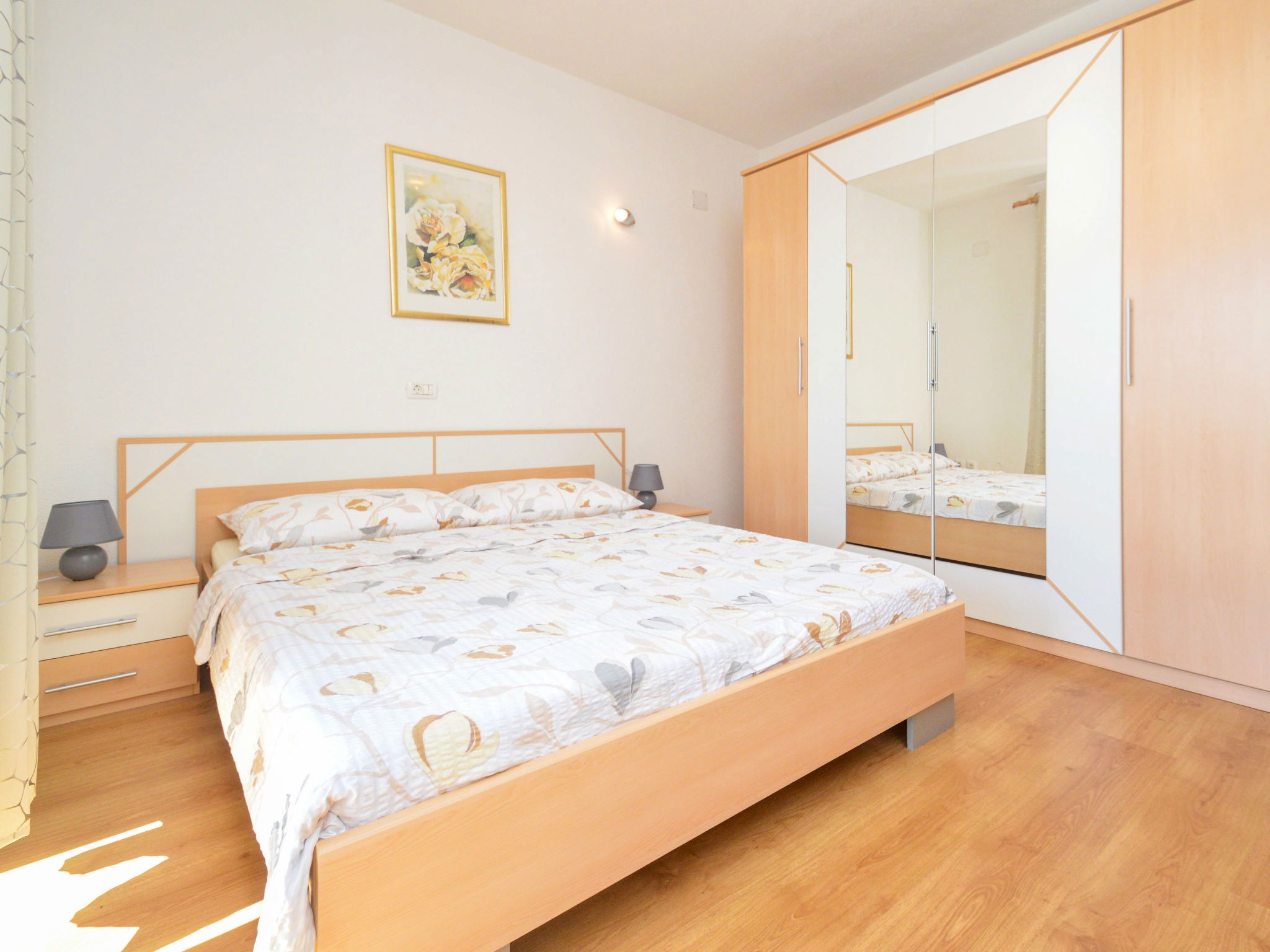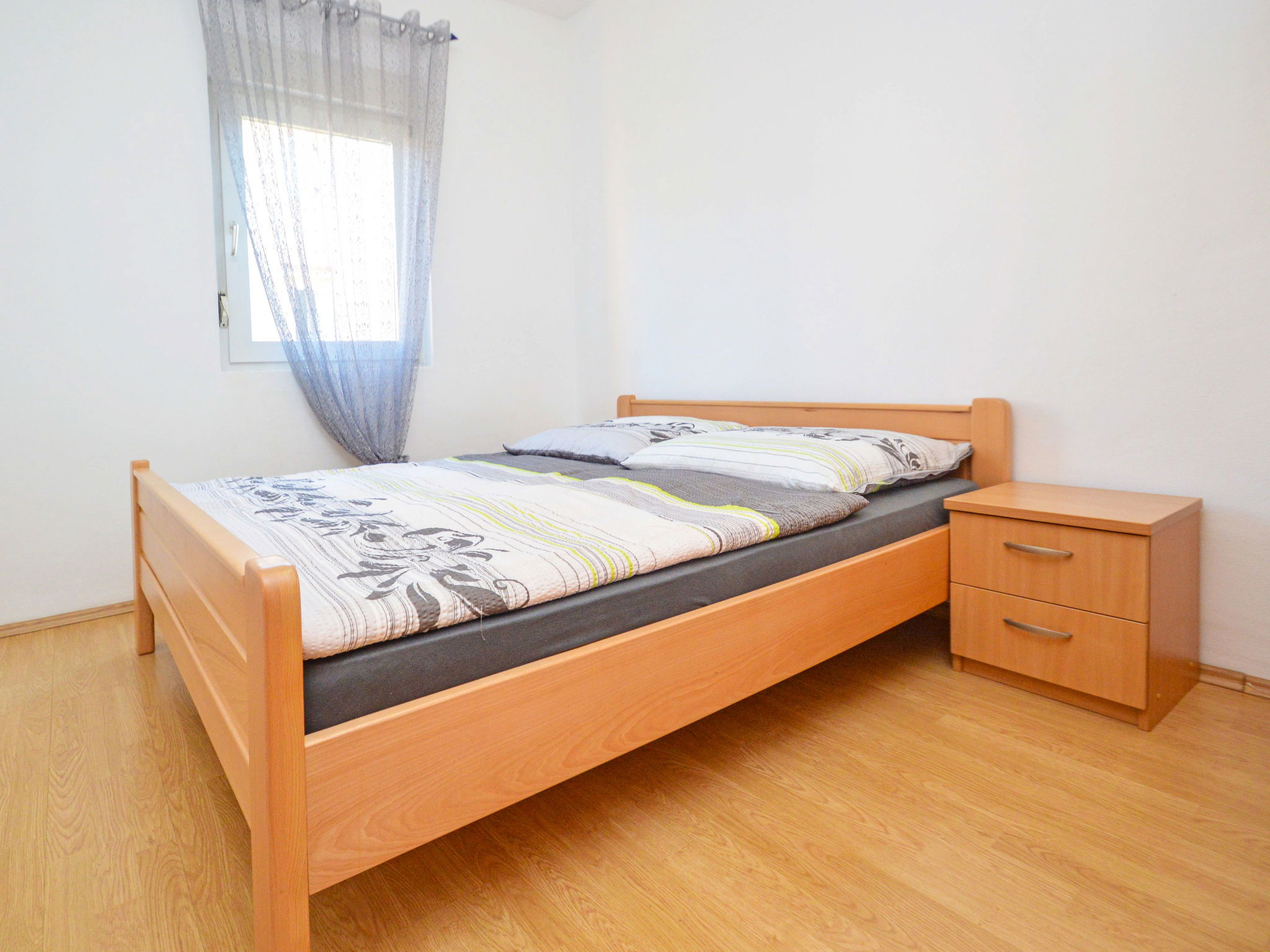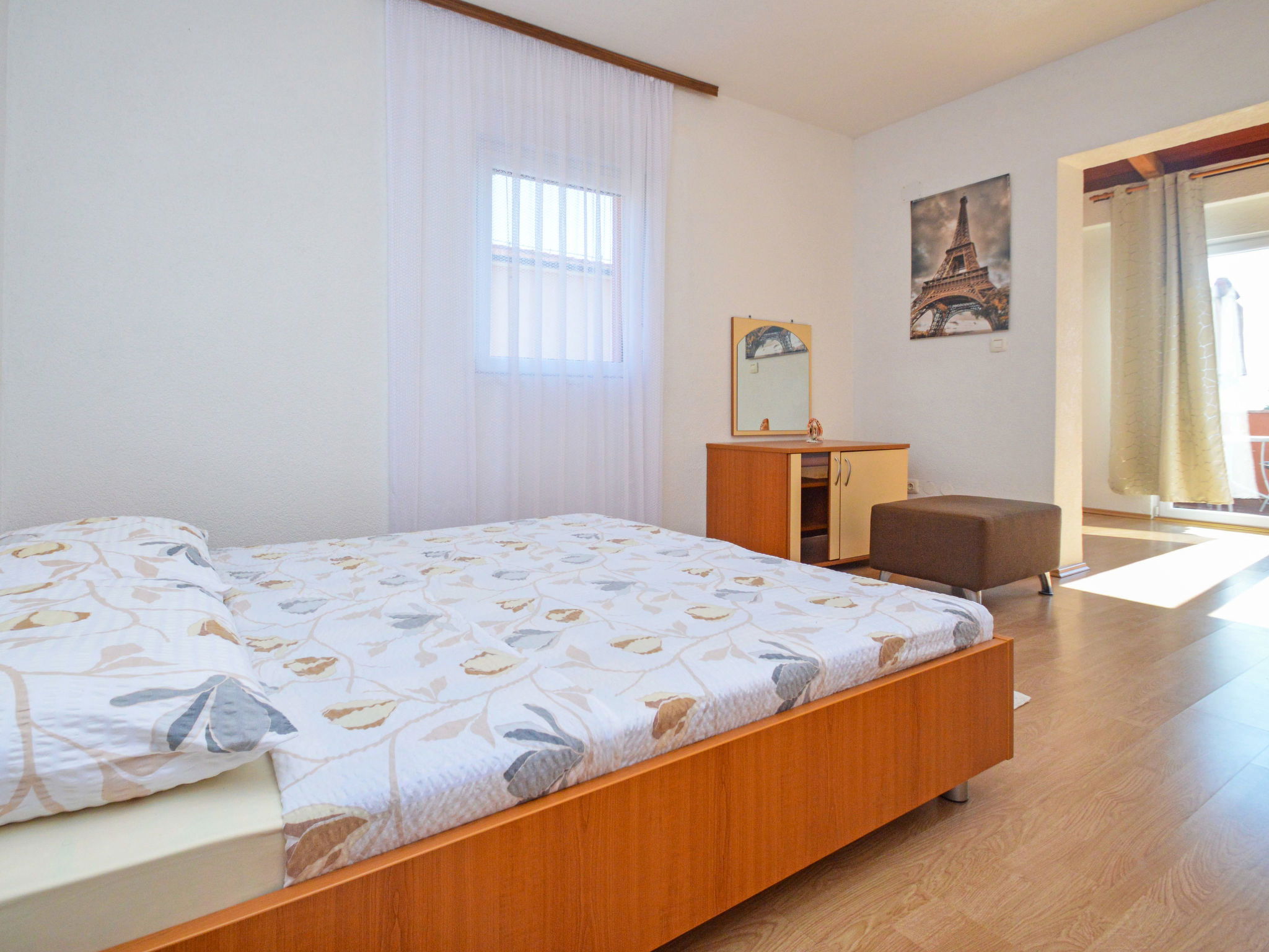 Maison jumelée 5 pièces 140 m2 sur 3 niveaux. Séjour/salle à manger avec cheminée (uniquement à titre de décoration), TV (satellite) et air-conditionné. Sortie sur la terrasse. Cuisine ouverte (four, lave-vaisselle, 4 plaques vitrocéramiques, micro-ondes, congélateur, cafetière électrique). Douche/WC. À l'étage supérieur: 1 chambre avec 1 grand-lit (160 cm, longueur 200 cm). 1 chambre avec 1 lit double (2 x 80 cm, longueur 200 cm), air-conditionné. Sortie sur la terrasse. 1 chambre avec 1 lit double (2 x 80 cm, longueur 200 cm). Sortie sur la terrasse. Bain/WC, balnéo. 2ème étage: 1 chambre avec 1 grand-lit (160 cm, longueur 200 cm). Bain/WC, balnéo. Chauffage à air chaud. Terrasse 11 m2, couverte, 2 terrasses 12 m2, couverte. Meubles de terrasse. Vue partielle sur la mer. A disposition: chaise haute pour enfant, lit bébé. Internet (Connexion WIFI, gratuit). Maximum 1 animal/ chien autorisé.