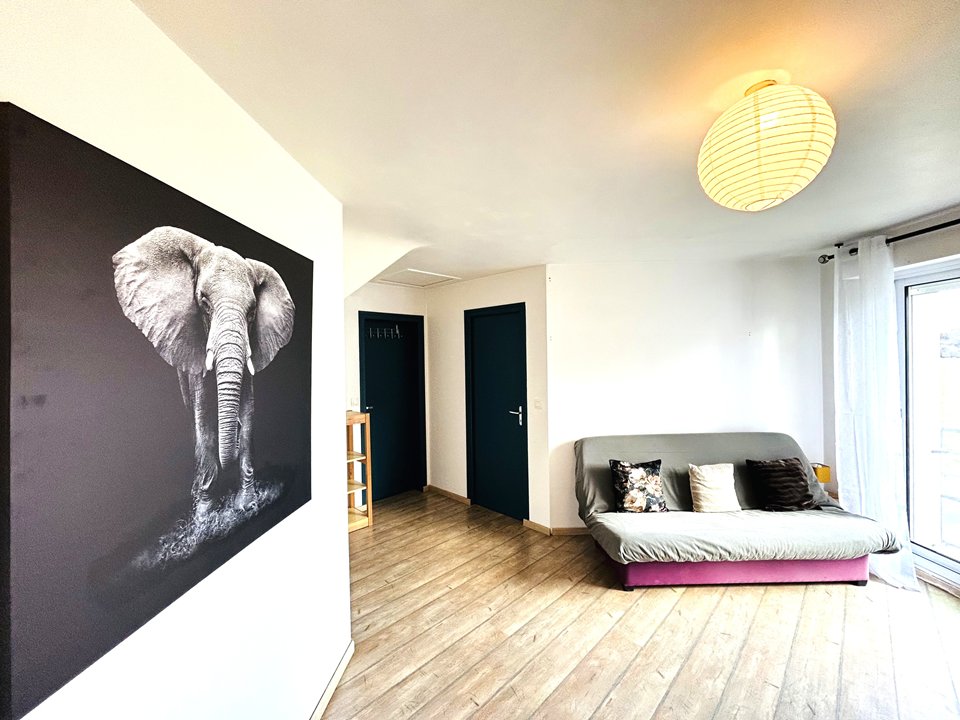 - Une pièce à vivre avec espace salon et partie salle à manger, ouvrant sur jardin