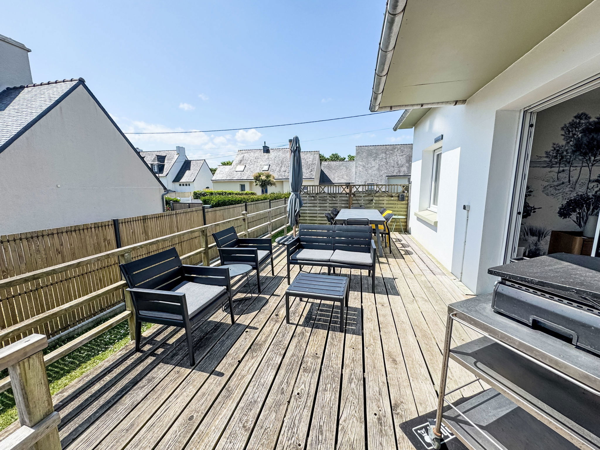 "Villa Koraill Glaz", maison 6 pièces 140 m2 sur 2 niveaux. Complètement rénovée en 2022, aménagement très confortable et agréable: grand séjour/salle à manger 30 m2 avec Télévision numérique, écran plat et poêle à bois. Sortie sur le jardin, sur la terrasse. 1 chambre 14 m2 avec 1 grand-lit (160 cm, longueur 200 cm). Cuisine 12 m2 (four, lave-vaisselle, 4 plaques à induction, grille-pain, bouilloire électrique, micro-ondes, congélateur, cafetière électrique, appareil à raclette) avec petite table pour les repas. Douche, WC séparé. À l'étage supérieur: 1 chambre 15 m2 avec 1 lit double (90 cm, longueur 200 cm), douche. 2 chambres 12 m2, chaque chambre avec: 1 grand-lit (160 cm, longueur 200 cm). Douche/WC, WC séparé. Chauffage au fuel. A disposition: lave-linge, sèche-linge, fer à repasser, chaise haute pour enfant, lit bébé jusqu'à 2 ans, sèche-cheveux, table à langer. Internet (Connexion WIFI, gratuit). Veuillez noter: maison non-fumeur. Maximum 1 animal/ chien de petite taille autorisé. Détecteur de fumée. Annonce d'un particulier (art 155, IV du CGI). 29185 000177 09