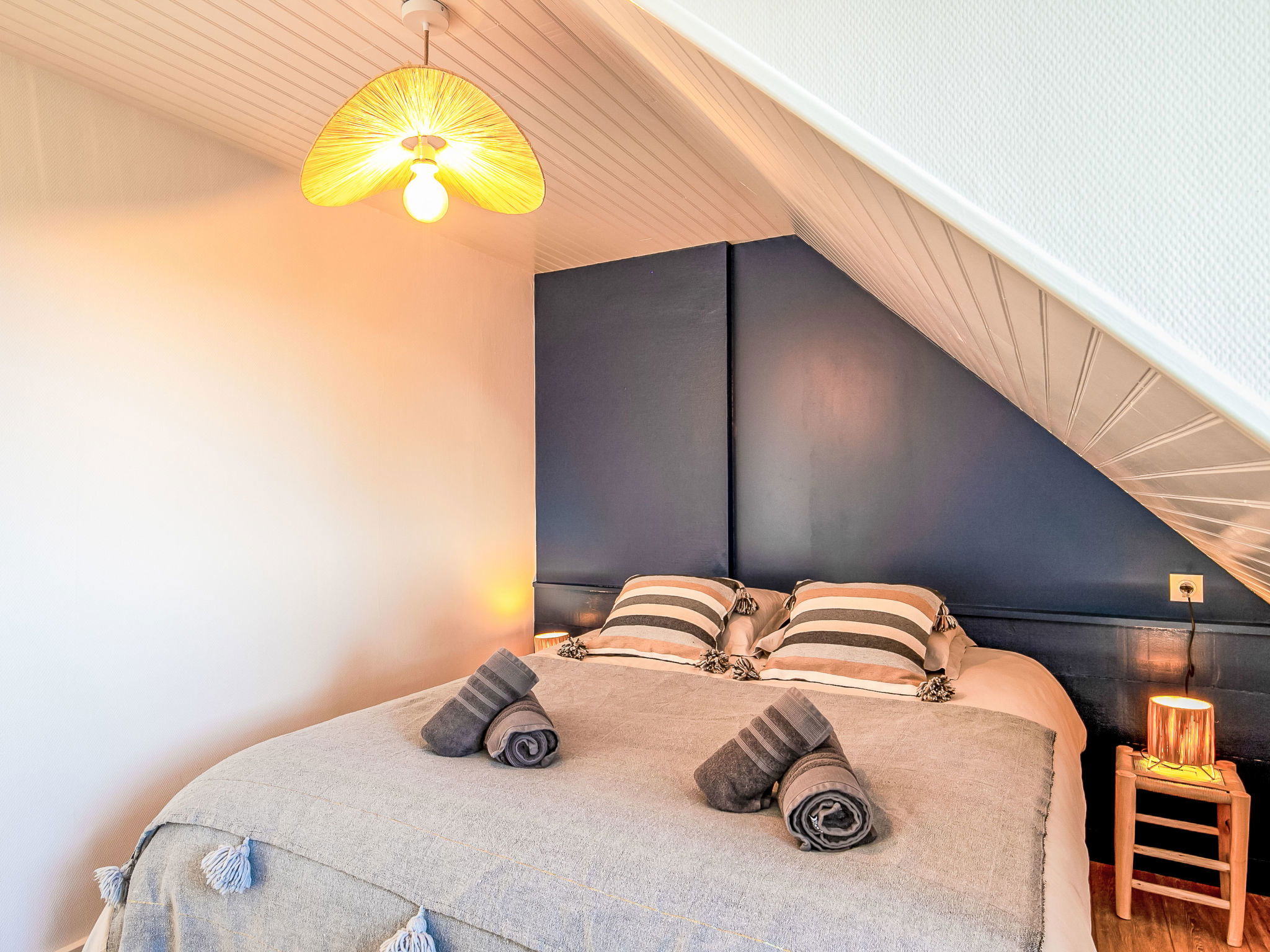 "La Lividig Bleue", maison 6 pièces 140 m2 sur 2 niveaux. Clair, complètement rénovée en 2023, aménagement moderne et de bon goût: séjour/salle à manger avec TV (écran plat). Sortie sur le jardin. Cuisine ouverte 10 m2 (four, lave-vaisselle, 4 feux, grille-pain, bouilloire électrique, micro-ondes, congélateur, cafetière électrique) avec bar. Douche, WC séparé. À l'étage inférieur: 1 chambre avec 2 lits (90 cm, longueur 190 cm), 1 x 2 lits superposés (90 cm, longueur 190 cm). Salle de jeux. Sortie sur le jardin. À l'étage supérieur: 1 chambre avec 1 grand-lit (160 cm, longueur 200 cm), douche. 2 chambres, chaque chambre avec: 1 grand-lit (160 cm, longueur 200 cm). WC séparé. Chauffage électrique. Belle vue sur la mer. A disposition: lave-linge, fer à repasser, lit bébé jusqu'à 2 ans, sèche-cheveux. Internet (Connexion WIFI, gratuit). Veuillez noter: maison non-fumeur. Maximum 1 animal/ chien de petite taille autorisé. Détecteur de fumée. babyfoot. Si le nombre d’occupants n’atteint pas le maximum, toutes les chambres ne seront pas disponibles. Annonce d'un particulier (art 155, IV du CGI).