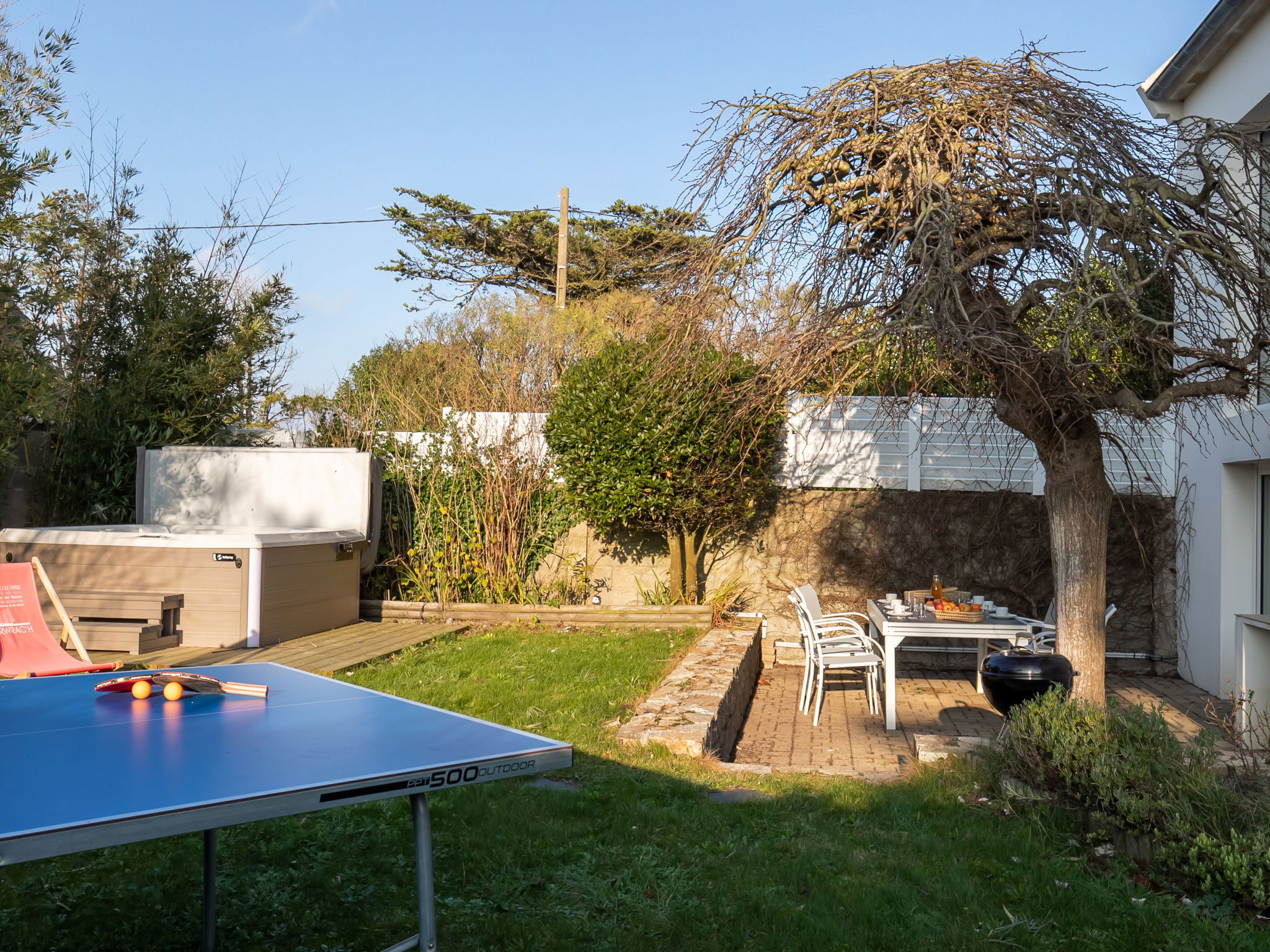 Brignogan-Plage: Belle maison individuelle moderne, confortable "La Lividig Bleue". À 1.3 km du centre de Brignogan-Plages, situation tranquille, à 70 m de la mer, à 70 m de la plage, dans une impasse. A usage privé: terrain 900 m2 (clôturé), jardin entretenu avec pelouse et plantes. Bain à remous , ping-pong, place de parking (pour 2 voitures) sur le terrain. Magasins 1.3 km, supermarché 1.5 km, restaurant 950 m, bar 1.3 km, boulangerie 2.4 km, arrêt de bus 850 m, plage de sable "Plage du Lividic" 70 m, piscine couverte 14 km. Port plaisance 1.5 km, terrain de golf (18 trous) 35 km, ecole de surf 9 km, ecole de voile 3.2 km, tennis 50 m, chemins de randonnées pédestres depuis la maison 30 m. Attractions à proximité: Meneham 5 km, Dunes de Keremma, Réserve ornithologiqe 7.5 km, Lesneven 11 km, Roscoff, Jardin exotique, Île de Batz 34 km, Plouguerneau, Pays des Abers 22 km, Brest, Oceanopolis 40 km. Région de randonnées: GR34, sentier des douaniers 30 m.