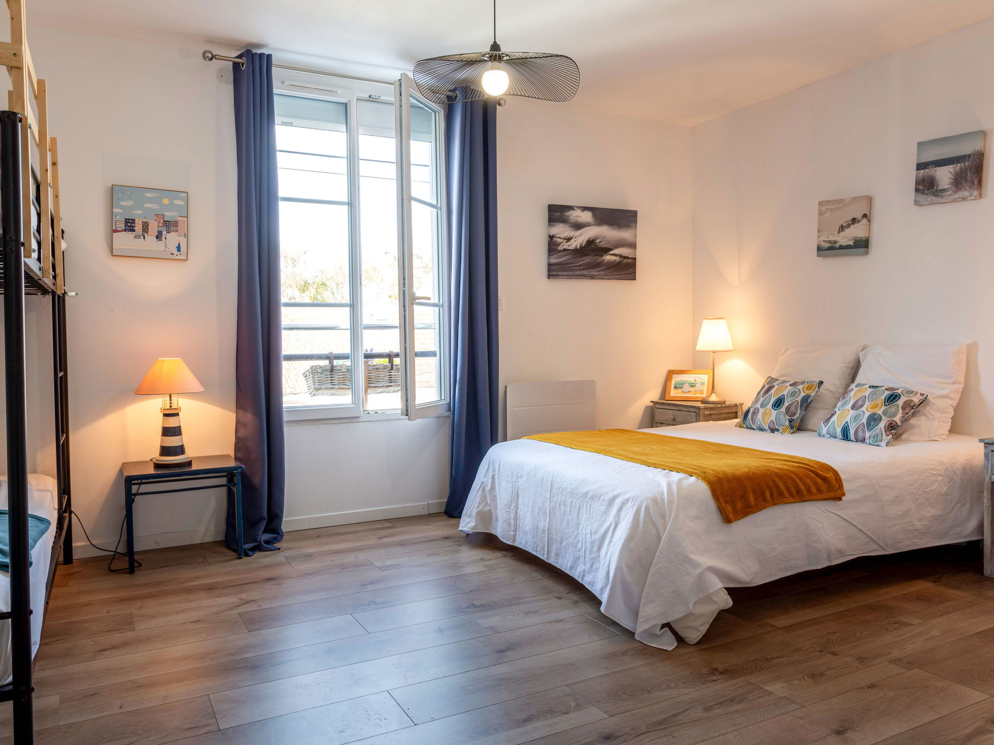 Maison mitoyenne 6 pièces 150 m2 sur 2 niveaux, situation sud. Spacieux: séjour/salle à manger avec TV (écran plat). Salon. Sortie sur la terrasse. Cuisine ouverte (four, lave-vaisselle, 3 plaques à induction, grille-pain, bouilloire électrique, micro-ondes, congélateur, cafetière électrique). Bain/douche/WC. À l'étage supérieur: 1 chambre avec 1 grand-lit (1 x 140 cm, longueur 200 cm), TV (écran plat). 2 chambres, chaque chambre avec: 1 grand-lit (1 x 140 cm, longueur 200 cm). Chambre avec passage avec 1 grand-lit (1 x 140 cm, longueur 200 cm). 1 grande chambre avec 1 x 2 lits superposés (90 cm, longueur 190 cm), 1 grand-lit (1 x 140 cm, longueur 200 cm). 2 douches/WC. Chauffage électrique. A disposition: lave-linge, fer à repasser, chaise haute pour enfant, lit bébé, sèche-cheveux. Internet (Connexion WIFI, gratuit). Veuillez noter: adapté(e) aux familles. Maison non-fumeur. 1 animal/ chien de petite taille autorisé. Détecteur de fumée. Annonce d'un professionnel (art 155, IV du CGI) 441310001792G