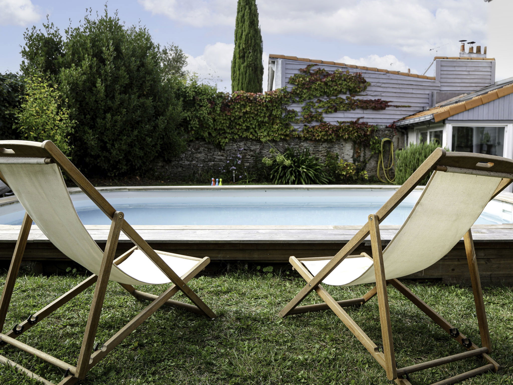 Belle maison mitoyenne "Le Bain du Papillon", de 2 étages. Au centre de Pornic, excellente situation: centrale mais tranquille, à 900 m de la mer, à 1 km de la plage, orientée sud. A usage privé: jardin entretenu (clôturé), piscine chauffée (6 x 3 m, profondeur 115 - 115 cm, disponibilité saisonnière: 15.Jun. - 15.Sep.) avec protection par couverture de volet et systeme d'électolyseur au sel. Pool house avec réfrigérateur, terrasse, meubles de jardin, barbecue, espace de jeux pour les enfants (bac à sable), parking public possible dans la rue. Magasins 800 m, supermarché 90 m, restaurant 600 m, bar 20 m, boulangerie 50 m, café 20 m, centre à 5 minutes à pieds, arrêt de bus "Gare de Pornic" 600 m, gare ferroviaire "Pornic" 600 m, plage de sable "Plage de la Source" 1 km, piscine couverte 2 km, centre thermal "Alliance Pornic Thalasso & Spa" 1 km. Port plaisance 600 m, terrain de golf (18 trous) 3 km, ecole de voile 2.5 km, tennis 3 km, golf miniature 3 km, centre équestre 4 km, centre sportif 2 km, chemins de randonnées pédestres depuis la maison 1 km. Attractions à proximité: Faïencerie de Pornic 2 km, Pornic Aventure Accrobranche 3 km, Legendia Parc 20 km, Planète Sauvage 30 km, Les Machines de l'Ile de Nantes 49 km, Ile de Noirmoutier 59 km. Les lacs connus sont facilement accessibles: Lac de Saint Viaud 20 km. La remise des clés a lieu à l’agence de Pornic, 1 km. Veuillez noter : l'accès à la maison se fait par un escalier comportant 6 marches.