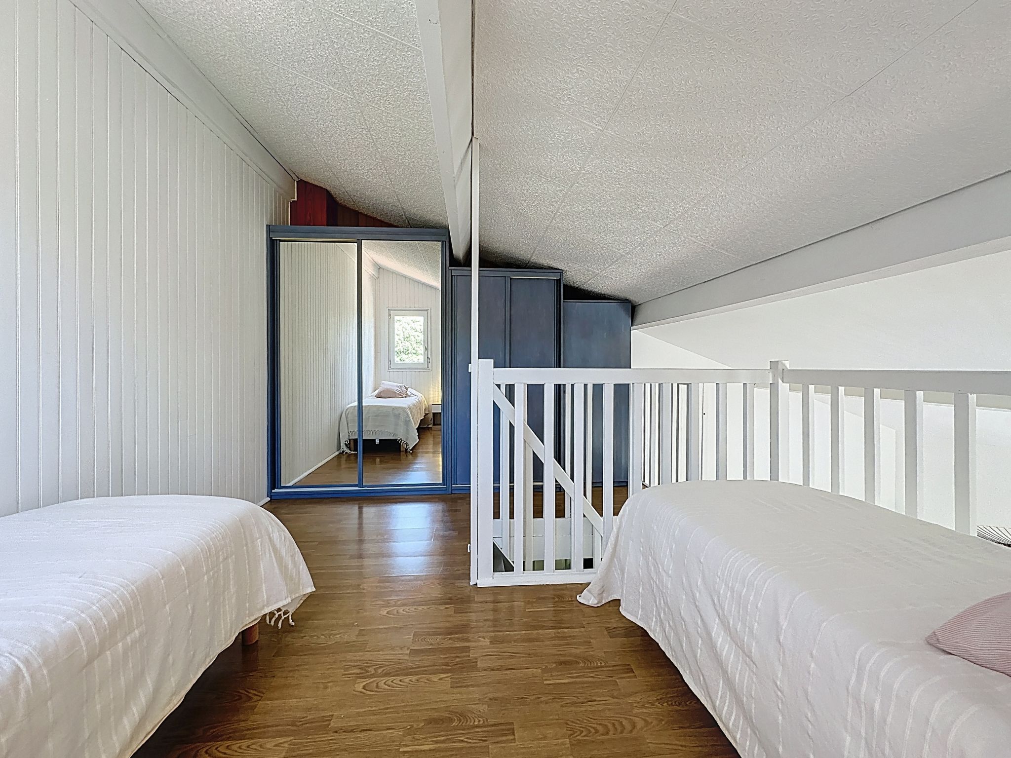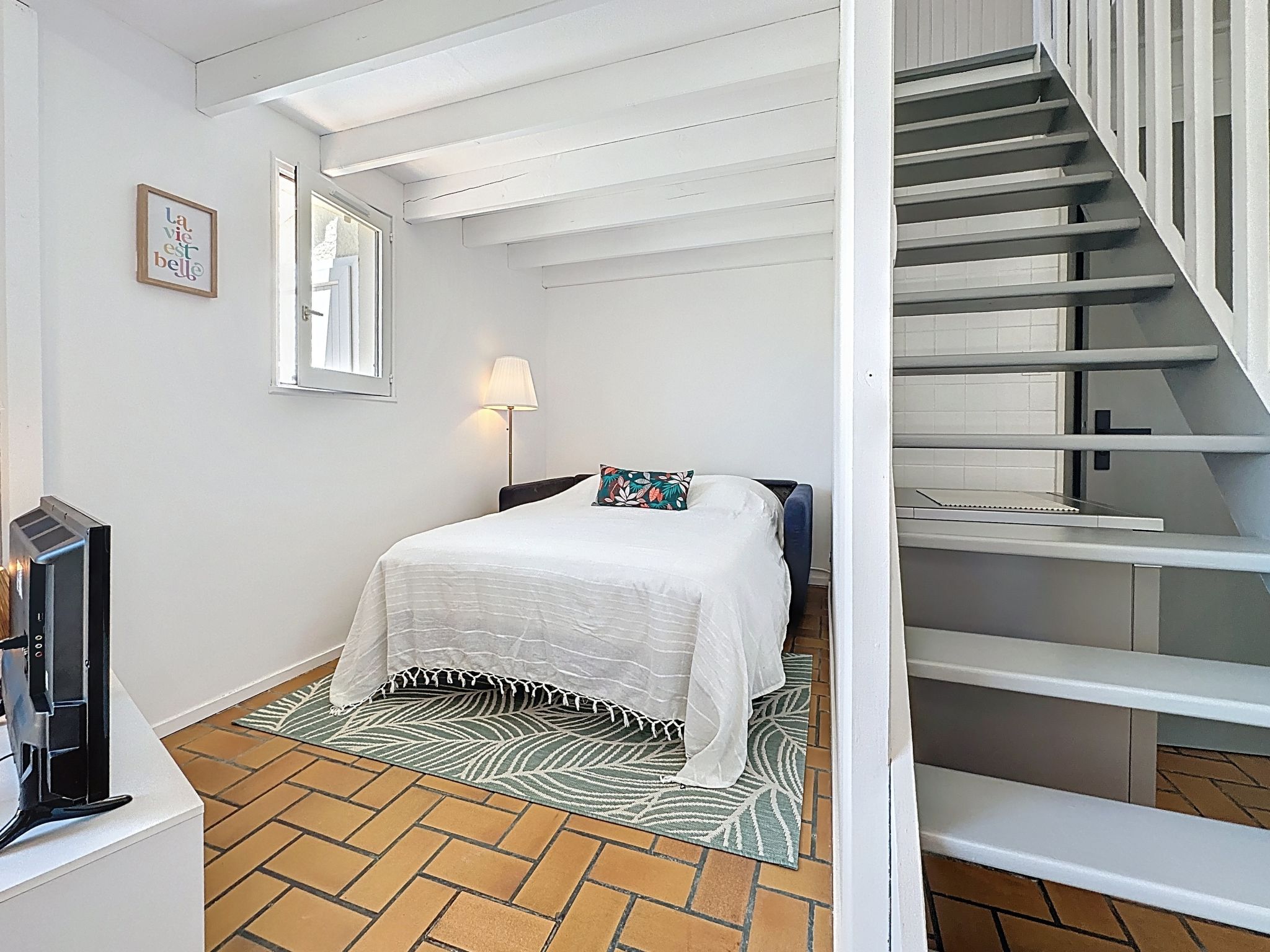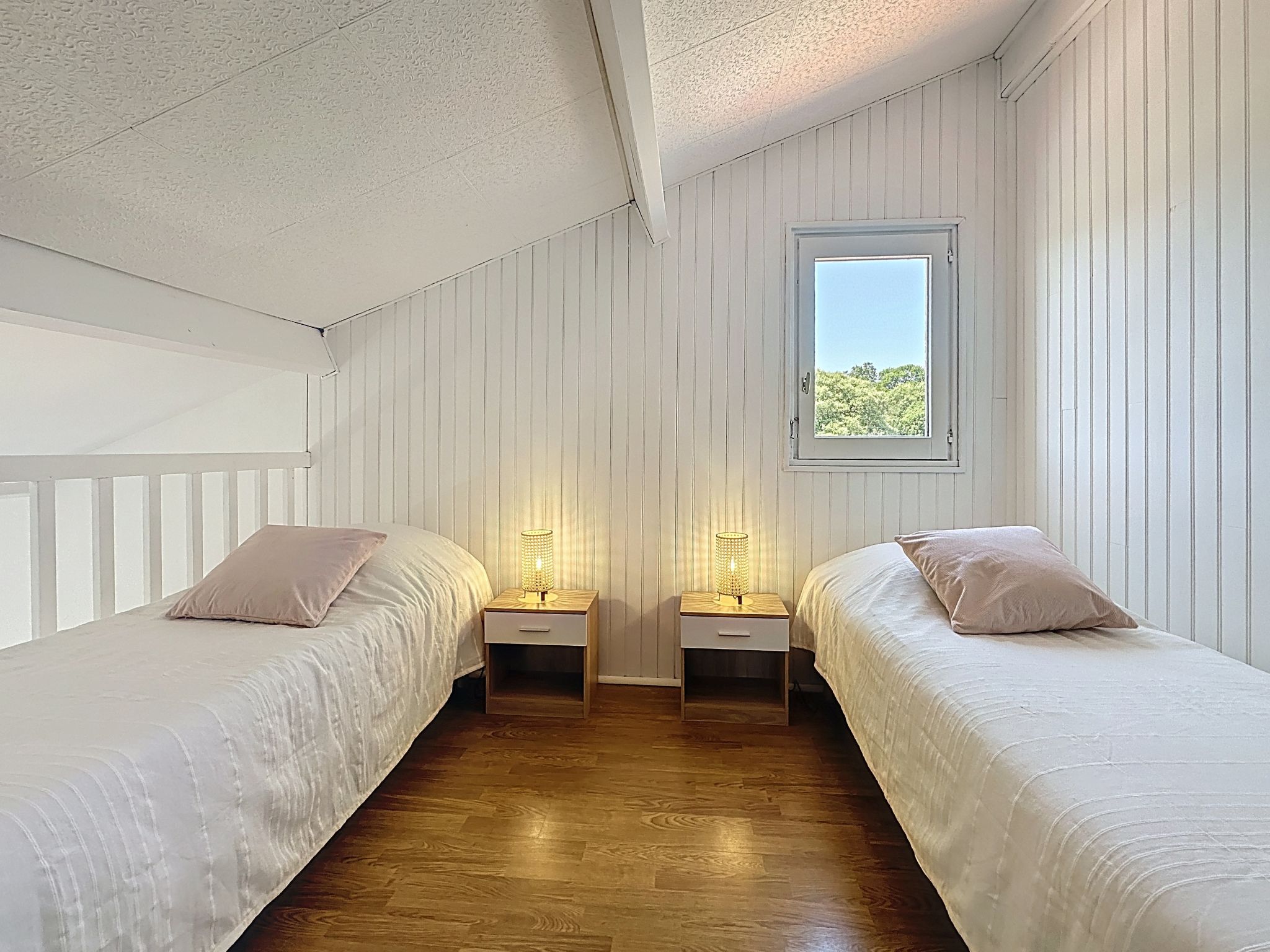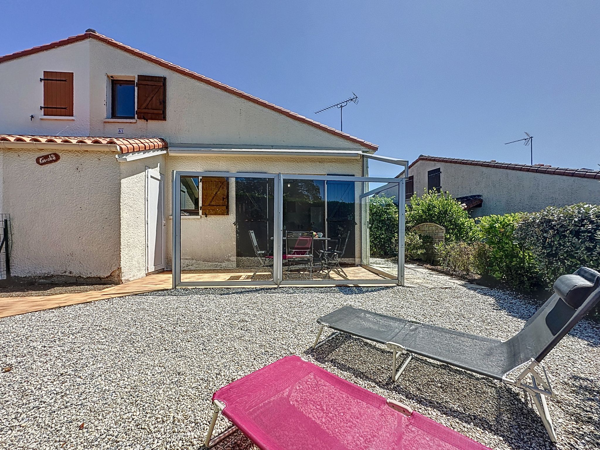"Ker Ch'ti", maison mitoyenne 2 pièces 35 m2 sur 2 niveaux, situation ouest. Rénovée en 2025, aménagement moderne: séjour/salle à manger avec 1 divan-lit double (1 x 160 cm, longueur 200 cm), TV (écran plat). Sortie sur la terrasse, orientée ouest. Cuisine ouverte (four, lave-vaisselle, 4 plaques à induction, grille-pain, bouilloire électrique, micro-ondes, congélateur, cafetière électrique). Douche/WC. À l'étage supérieur: (escalier raide) galerie mansardée, ouverte avec 2 lits (70 cm, longueur 190 cm). Chauffage électrique. Terrasse 10 m2, situation ouest, petit jardin. Meubles de terrasse, barbecue, chaises longues (4). Vue latérale sur la mer. A disposition: lave-linge, fer à repasser, sèche-cheveux. Internet (Connexion WIFI, gratuit). Place de parking No 41 (1 Voiture). Veuillez noter: maison non-fumeur. Maximum 1 animal/ chien de petite taille autorisé. Détecteur de fumée. Annonce d'un professionnel (art 155, IV du CGI) 44131001262GT