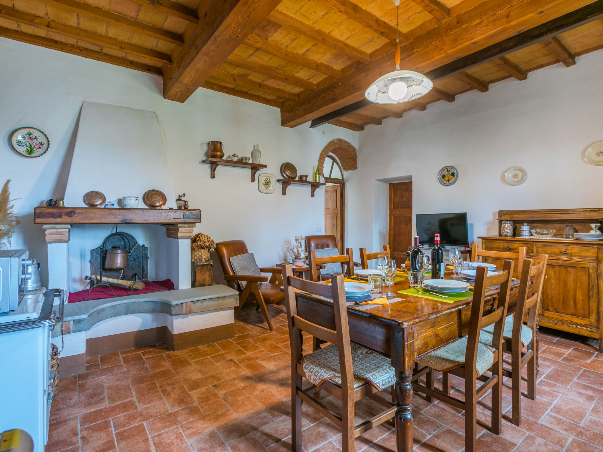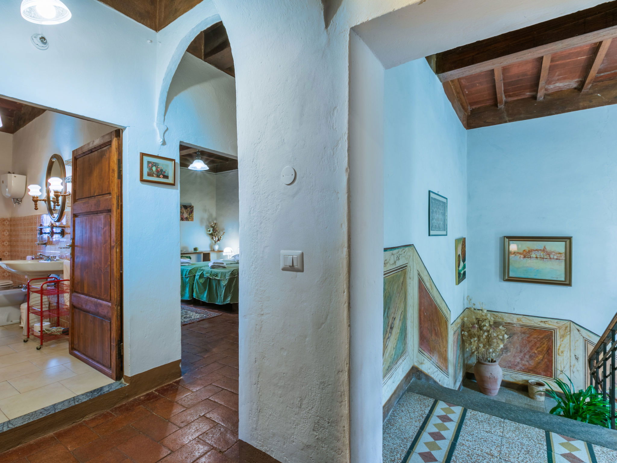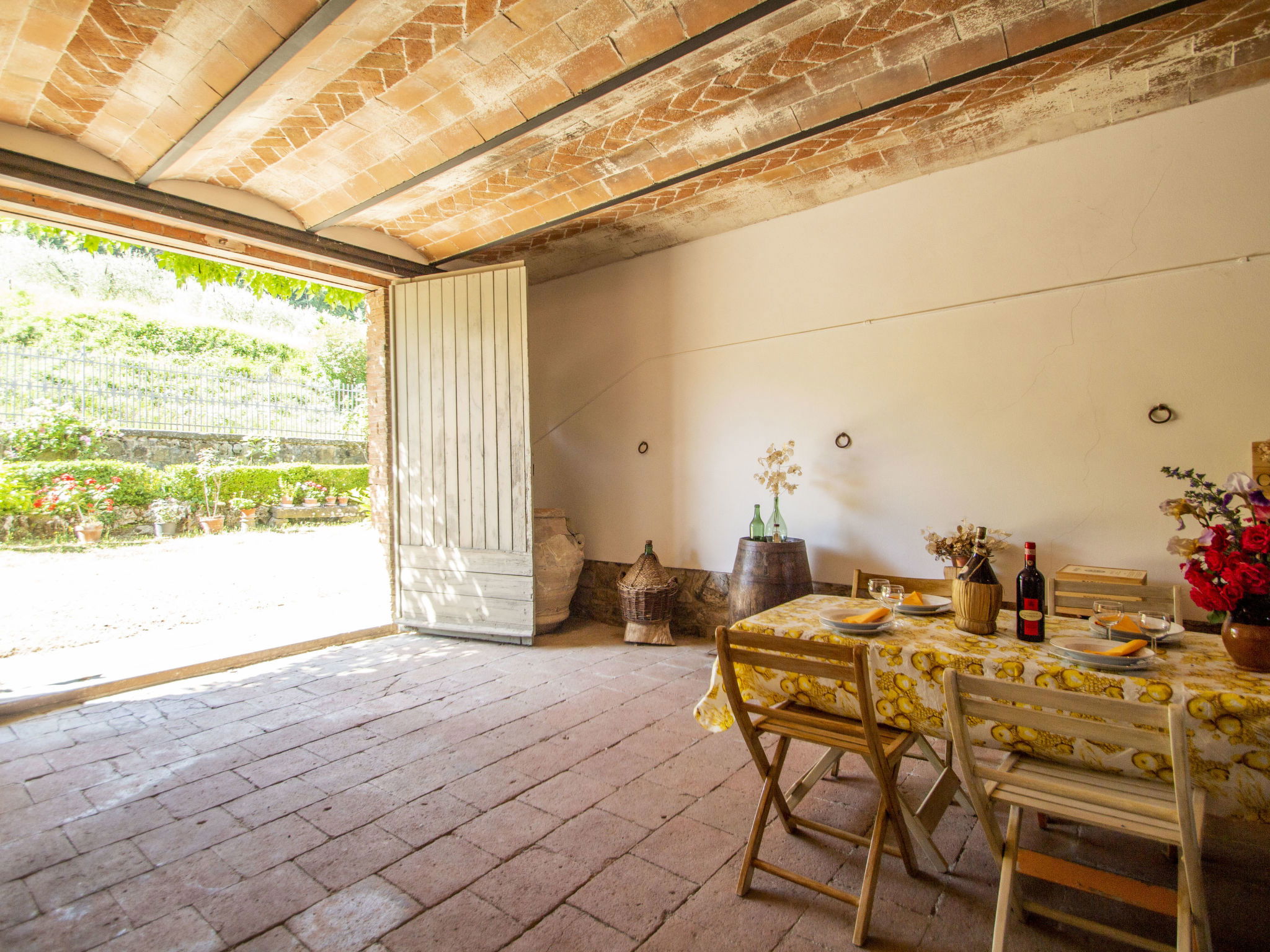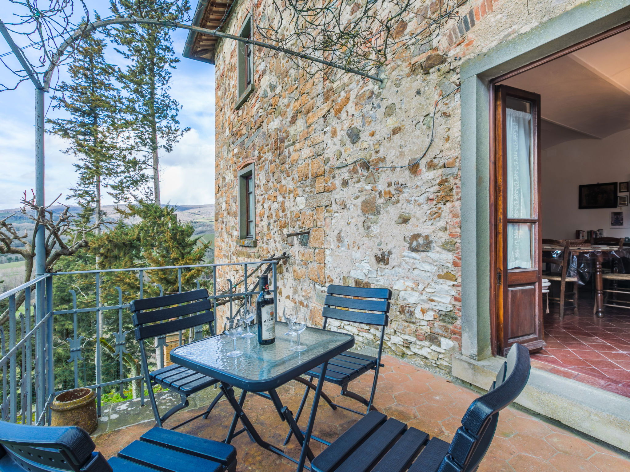 La Terrazza est un manoir typique, situé au cœur de la région du Chianti Classico, qui conserve l'atmosphère de la structure architecturale originale de la fin du XIXe siècle avec des meubles authentiques de la même époque. A l'intérieur, la maison dispose de suffisamment d'espace tant dans le salon que dans la chambre pour pouvoir passer un séjour relaxant tout en dégustant un excellent verre de vin local. Maison de campagne individuelle "La Terrazza". À 1.5 km du centre de Radda in Chianti, à 36 km du centre de Siena, à 54 km du centre de Firenze, situation ensoleillée, dans une rue. A usage privé: jardin 150 m2 (clôturé). Meubles de jardin, barbecue. Infrastructures de la Maison: réduit pour bicyclettes, chauffage payable localement, possibilité de chauffage uniquement du 01.Nov. - 01.Avr.. Cuisinier possible (en sus). Place de parking près de la maison. Magasins 1.5 km, magasin d'alimentation 1.5 km, supermarché 1.5 km, restaurant 1.5 km, arrêt de bus 50 m. Attractions à proximité: Gaiole in Chianti, Castello di Meleto 10 km, Panzano, Castellina in Chianti 13 km, Castello di Brolio 16 km, San Donato in Poggio 18 km, Greve in Chianti 19 km, Badia a Passignano 21 km.