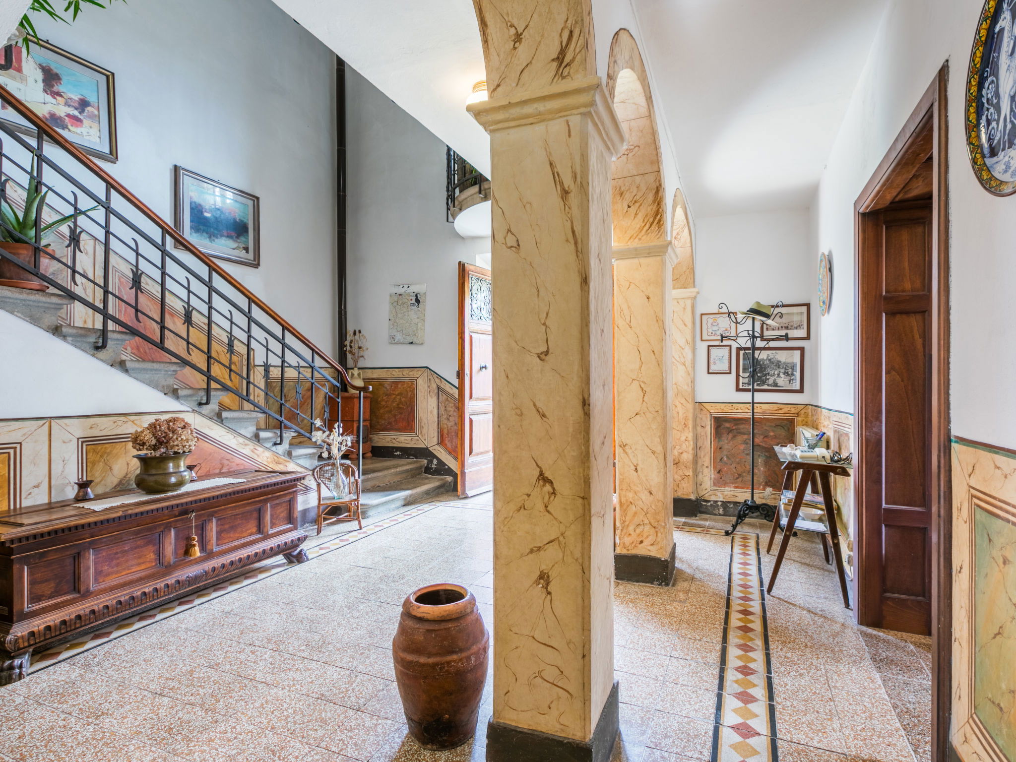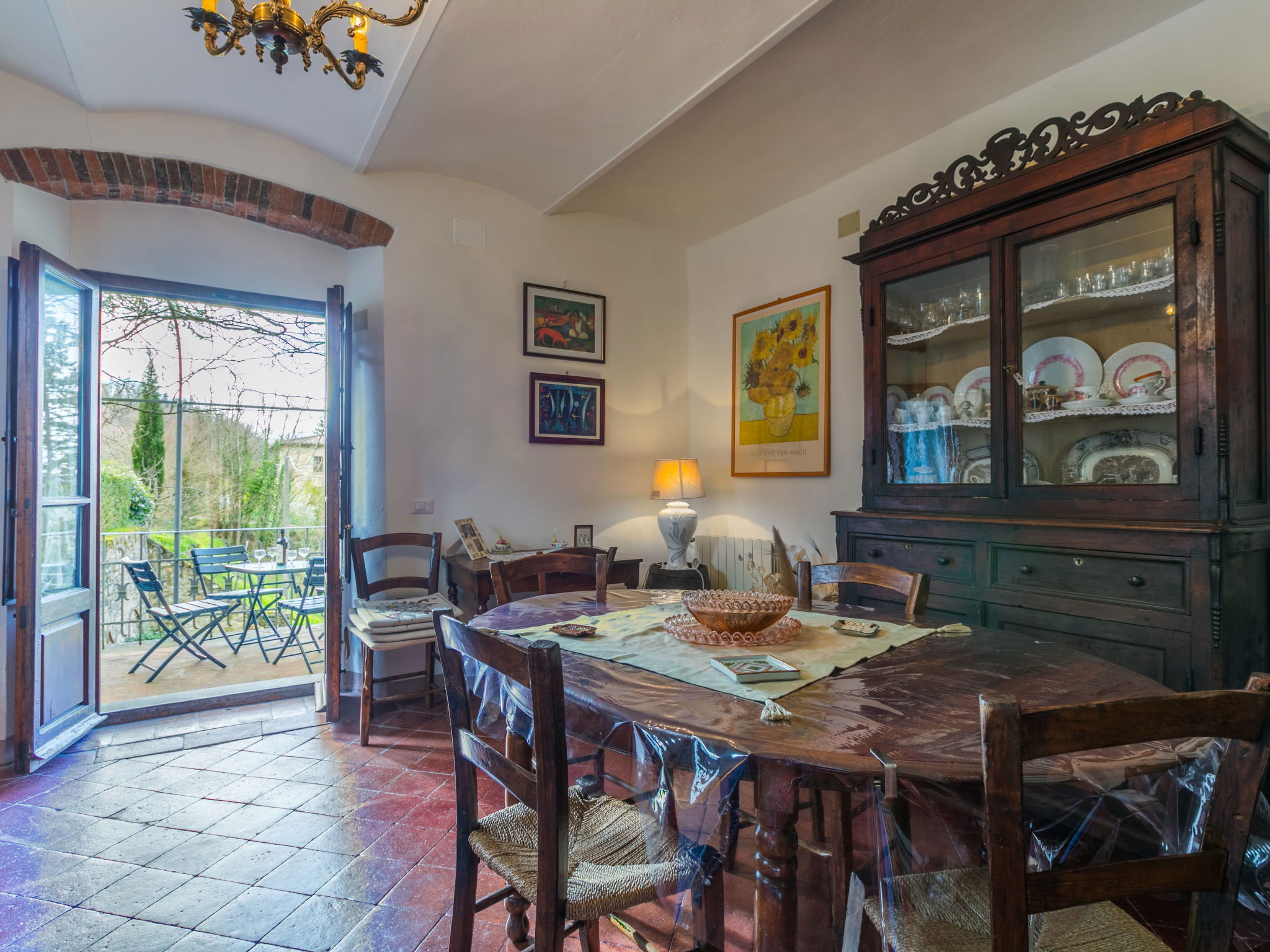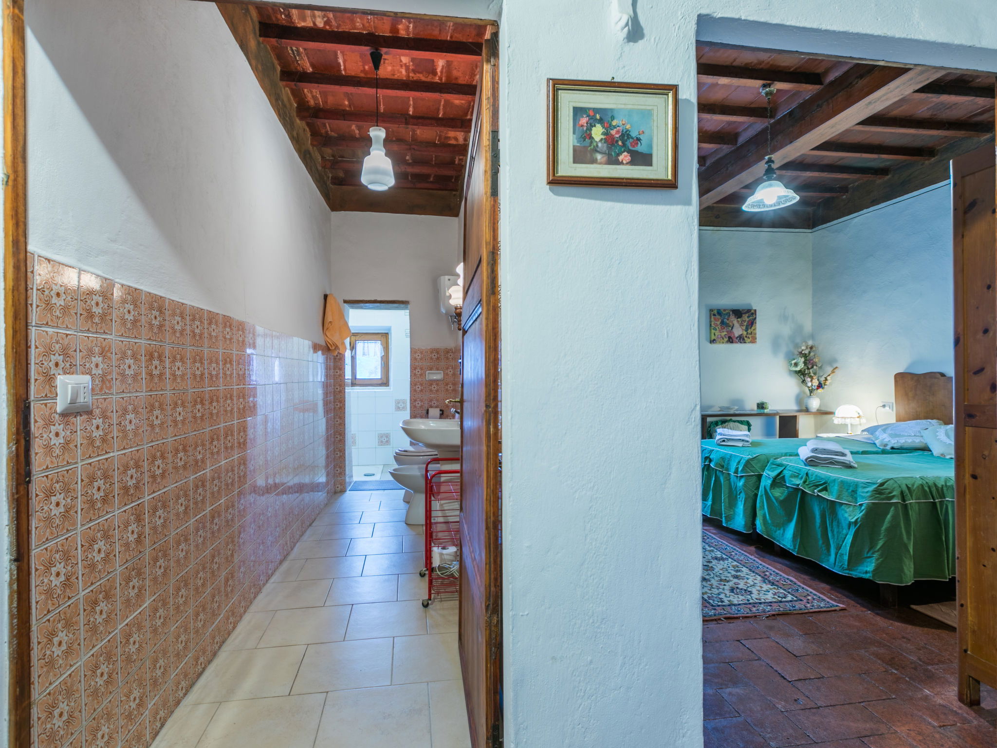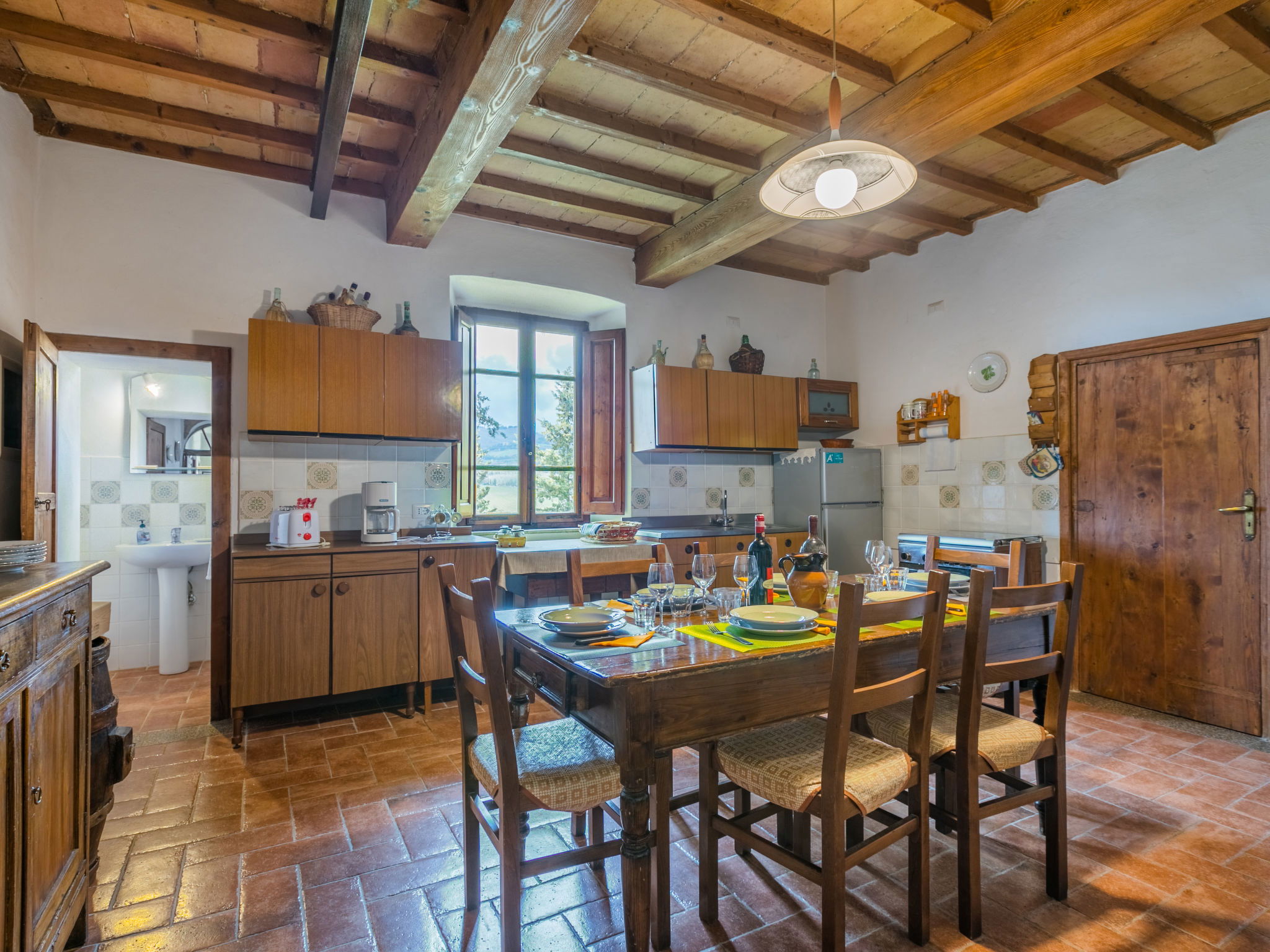 La Terrazza est un manoir typique, situé au cœur de la région du Chianti Classico, qui conserve l'atmosphère de la structure architecturale originale de la fin du XIXe siècle avec des meubles authentiques de la même époque. A l'intérieur, la maison dispose de suffisamment d'espace tant dans le salon que dans la chambre pour pouvoir passer un séjour relaxant tout en dégustant un excellent verre de vin local. Maison de campagne individuelle "La Terrazza". À 1.5 km du centre de Radda in Chianti, à 36 km du centre de Siena, à 54 km du centre de Firenze, situation ensoleillée, dans une rue. A usage privé: jardin 150 m2 (clôturé). Meubles de jardin, barbecue. Infrastructures de la Maison: réduit pour bicyclettes, chauffage payable localement, possibilité de chauffage uniquement du 01.Nov. - 01.Avr.. Cuisinier possible (en sus). Place de parking près de la maison. Magasins 1.5 km, magasin d'alimentation 1.5 km, supermarché 1.5 km, restaurant 1.5 km, arrêt de bus 50 m. Attractions à proximité: Gaiole in Chianti, Castello di Meleto 10 km, Panzano, Castellina in Chianti 13 km, Castello di Brolio 16 km, San Donato in Poggio 18 km, Greve in Chianti 19 km, Badia a Passignano 21 km.