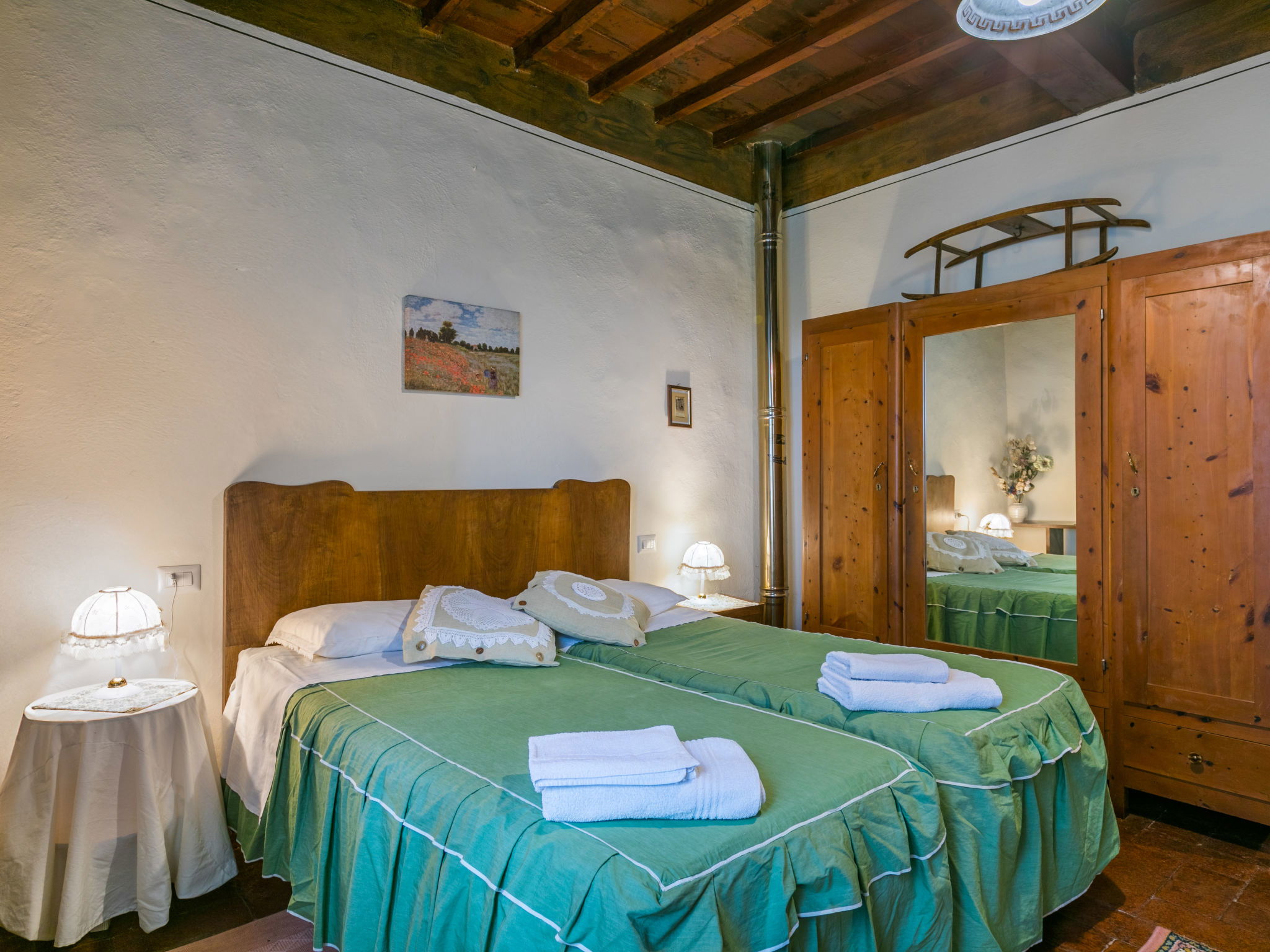 "La Terrazza", maison jumelée 4 pièces 150 m2 sur 2 niveaux. Aménagement fonctionnel et à l'ancienne: grande entrée. Séjour/salle à manger avec TV. Sortie sur la terrasse. Grande cuisine (4 plaques de cuisson, four, grille-pain, bouilloire électrique, micro-ondes, congélateur, cafetière électrique) avec cheminée. WC séparé. À l'étage supérieur: 1 chambre double 25 m2. 1 chambre double 25 m2 avec douche/bidet/WC. 1 chambre 20 m2 avec 2 lits. Douche/bidet/WC. Terrasse 10 m2. Meubles de terrasse, barbecue. Vue panoramique sur les alentours. A disposition: lave-linge, fer à repasser, chaise haute pour enfant, lit bébé jusqu'à 2 ans, sèche-cheveux. Internet (Connexion WIFI, gratuit). Maximum 2 animaux/ chiens autorisés. IT052023C25AZMXXFP