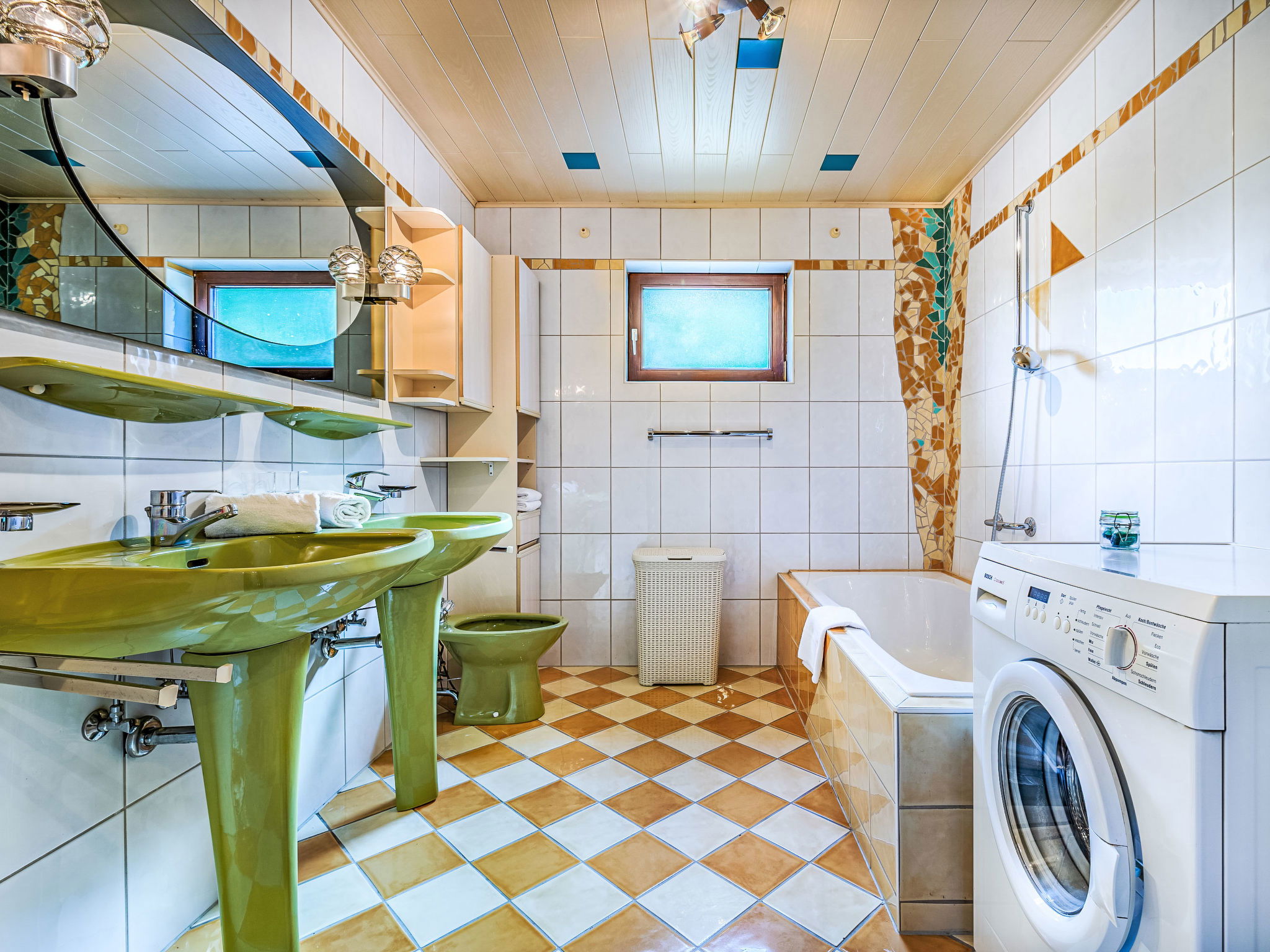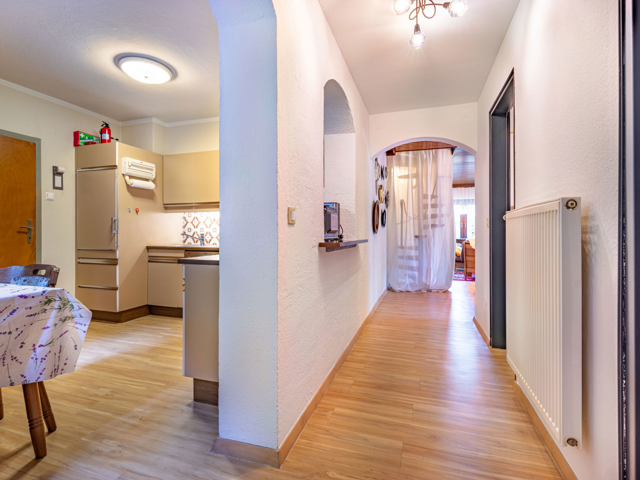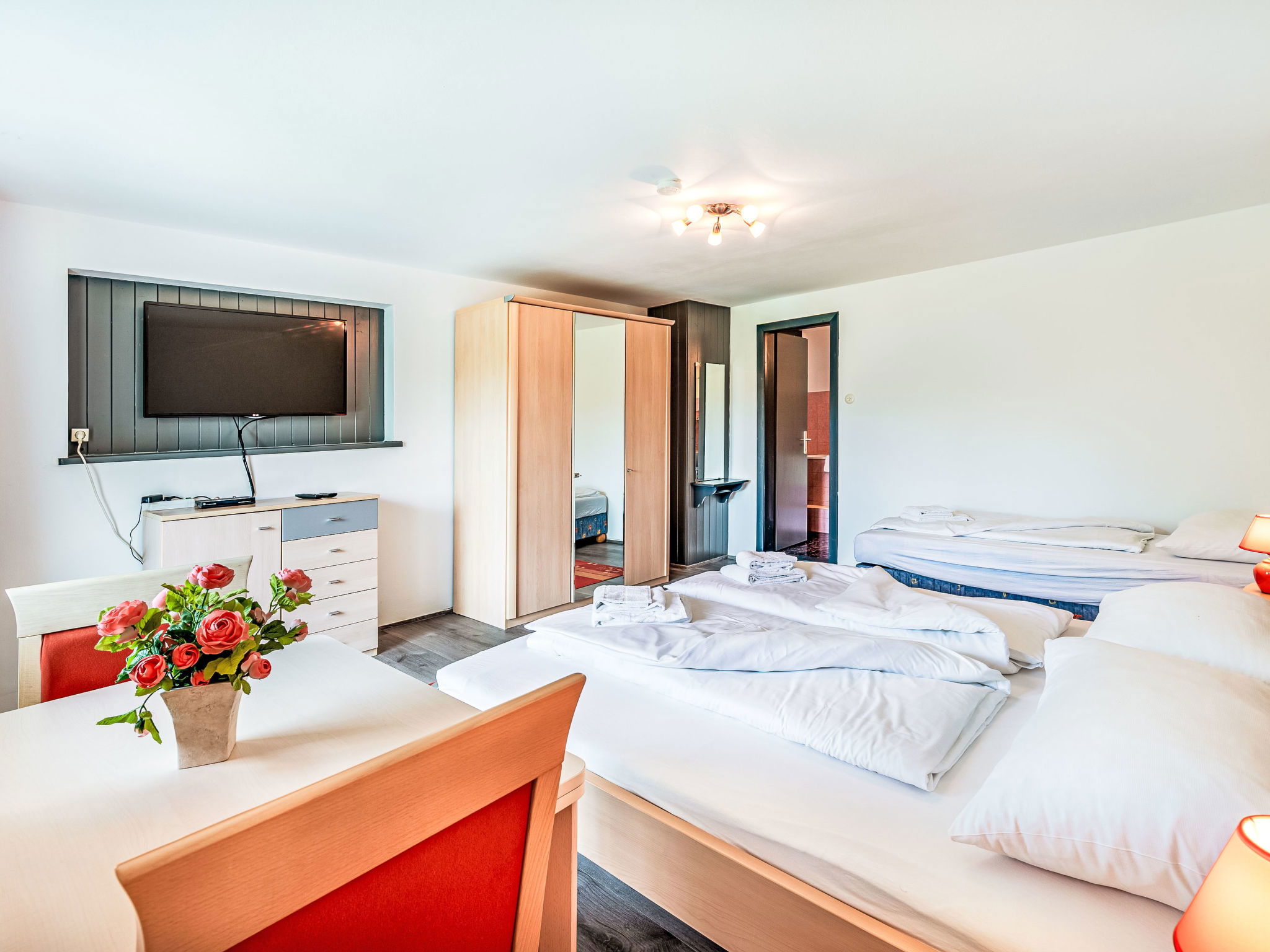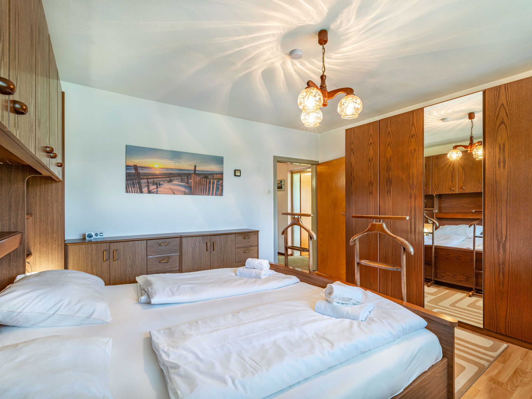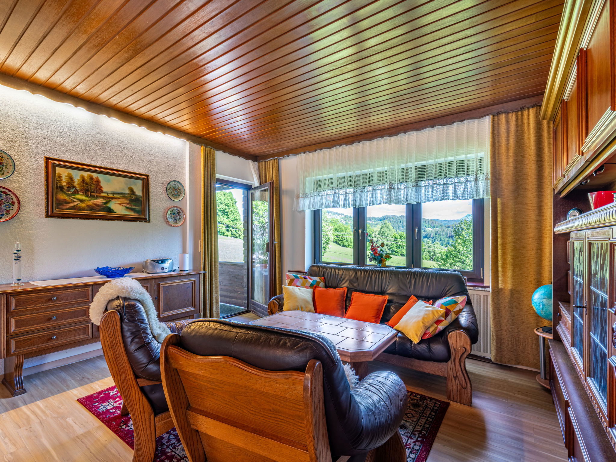 "Zeitlos", maison 5 pièces 112 m2 sur 2 niveaux. Logement idéal pour 8 adultes + 1 enfant. Aménagement fonctionnel et plaisant: entrée. 1 grande chambre double 16 m2 avec rideau avec douche/WC. Sortie sur le balcon. 1 grande chambre double avec rideau avec douche/WC. 1 chambre mansardée avec rideau avec 2 lits (90 cm, longueur 200 cm), lavabo et radio. Grand séjour/salle à manger avec véranda avec TV (satellite), écran plat, radio et lecteur CD. Sortie sur le balcon, sur la terrasse. Petite cuisine ouverte 7 m2 (four, lave-vaisselle, 4 plaques vitrocéramiques, bouilloire électrique, micro-ondes, congélateur, cafetière électrique) avec petite table pour les repas, passe-plat. Salle de bains, bidet, WC séparé, double vasque. Chauffage au fuel. À l'étage inférieur: (escalier extérieur) 1 chambre avec 1 divan-lit (200 cm, longueur 90 cm), 1 lit double, bain/WC, lavabo, TV (satellite) et écran plat. Sortie sur la terrasse. Belle vue panoramique. A disposition: lave-linge, chaise haute pour enfant, lit bébé. Internet (Connexion WIFI, gratuit). Veuillez noter: maison non-fumeur. Maximum 1 animal/ chien autorisé.