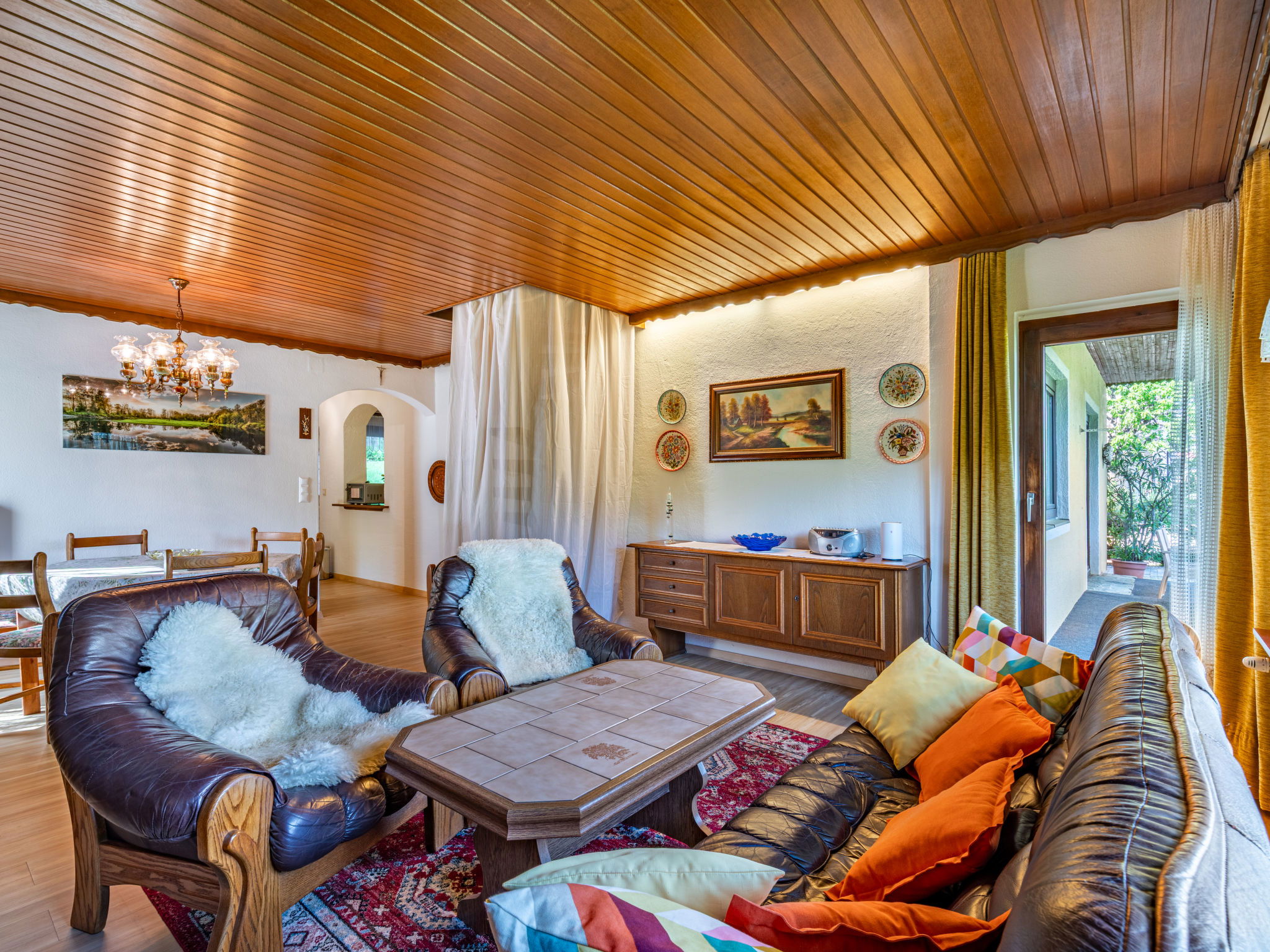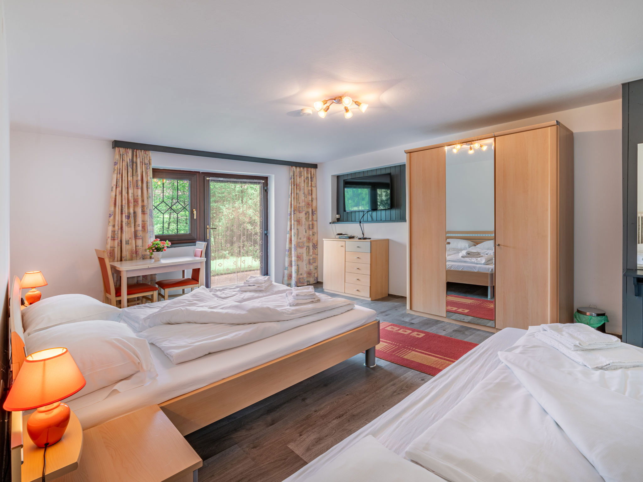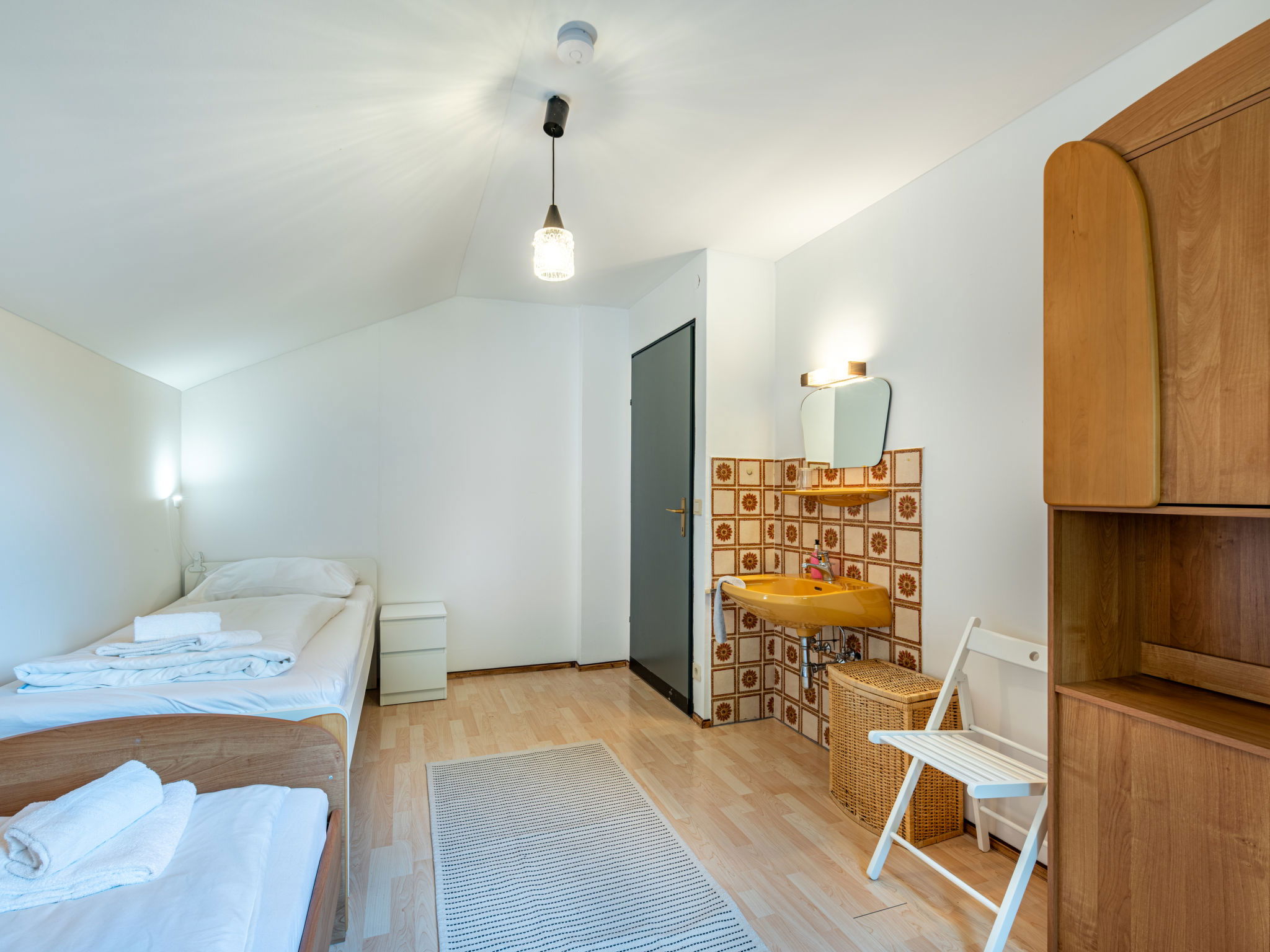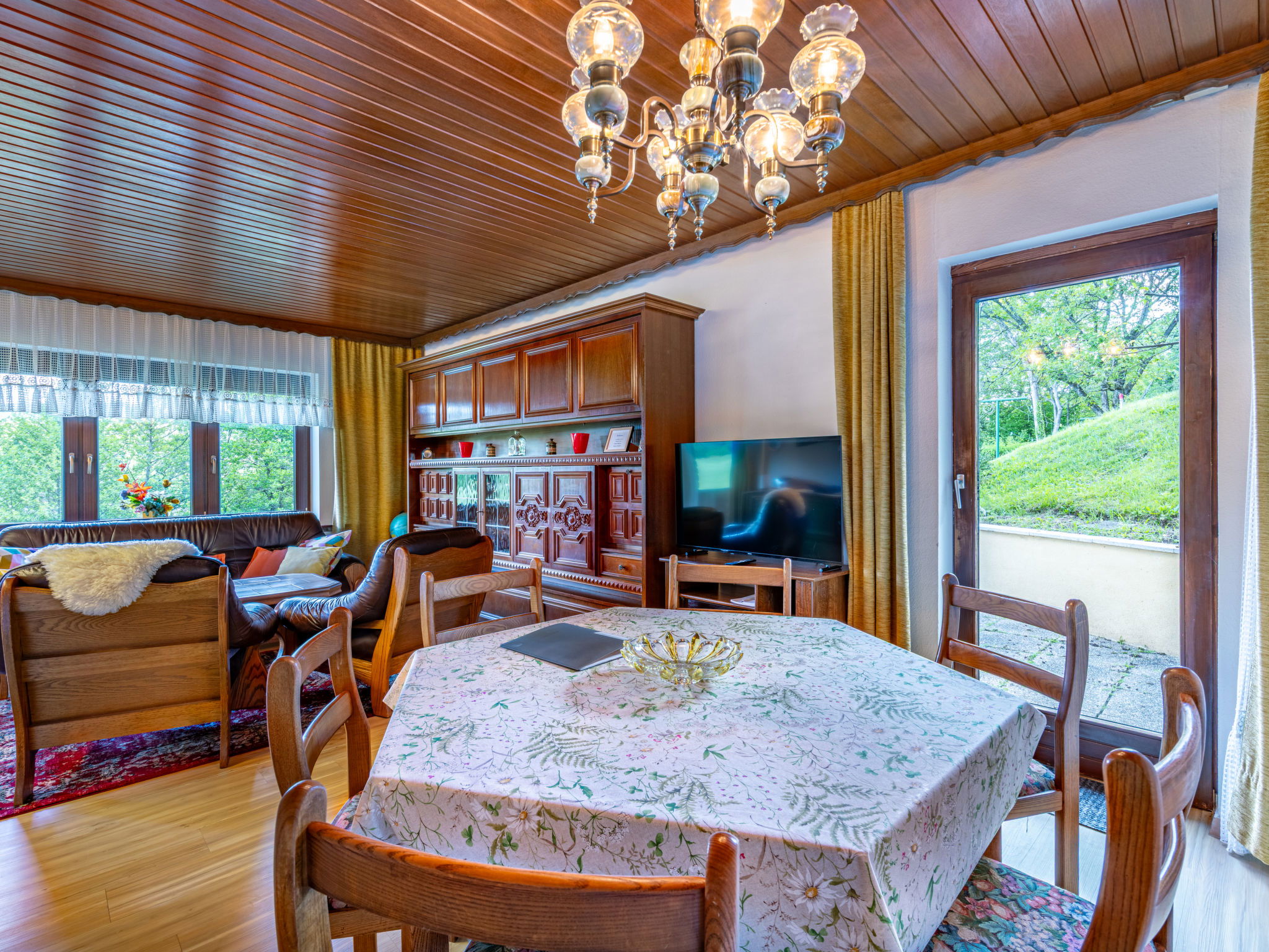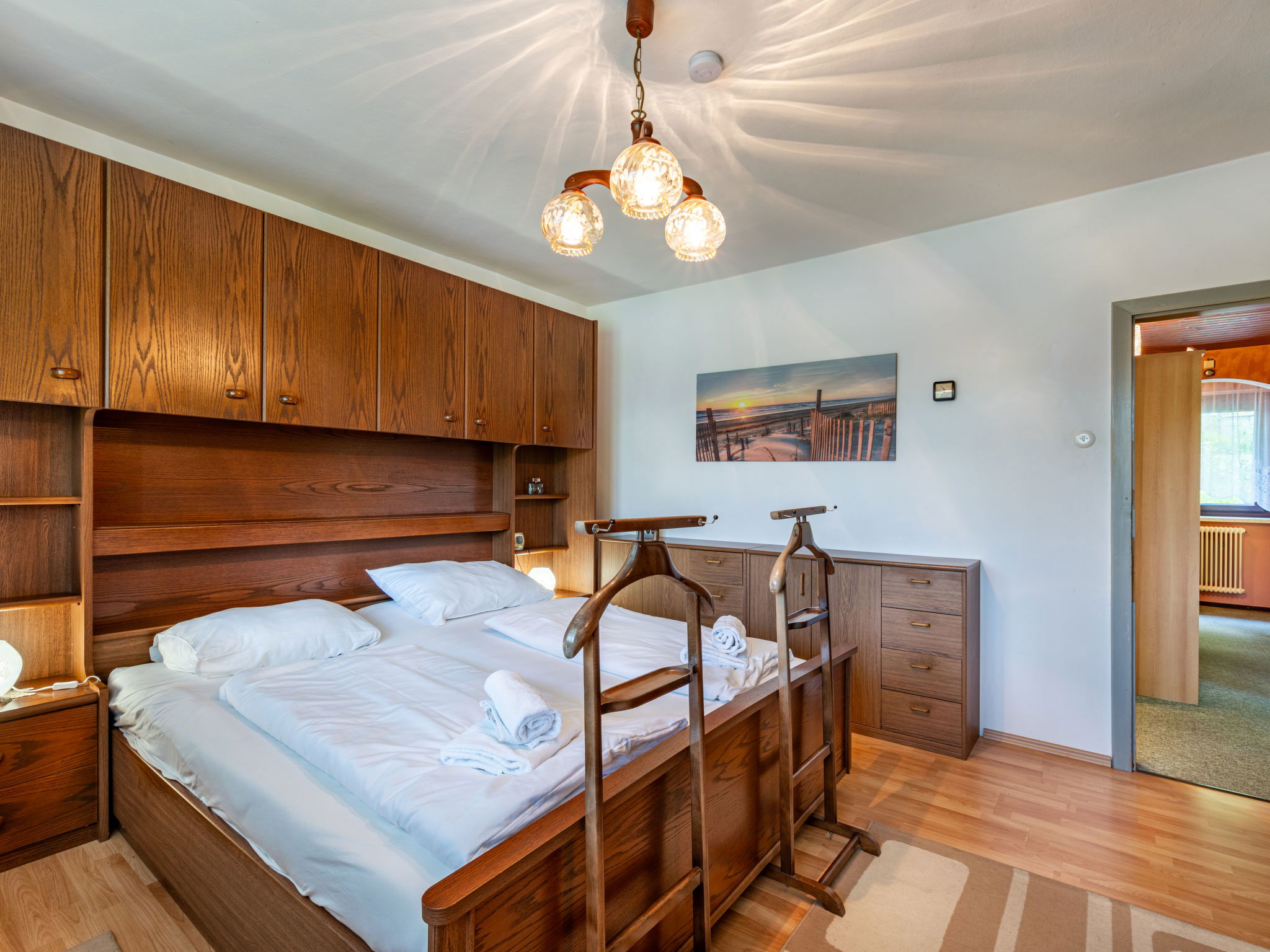 "Zeitlos", maison 5 pièces 112 m2 sur 2 niveaux. Logement idéal pour 8 adultes + 1 enfant. Aménagement fonctionnel et plaisant: entrée. 1 grande chambre double 16 m2 avec rideau avec douche/WC. Sortie sur le balcon. 1 grande chambre double avec rideau avec douche/WC. 1 chambre mansardée avec rideau avec 2 lits (90 cm, longueur 200 cm), lavabo et radio. Grand séjour/salle à manger avec véranda avec TV (satellite), écran plat, radio et lecteur CD. Sortie sur le balcon, sur la terrasse. Petite cuisine ouverte 7 m2 (four, lave-vaisselle, 4 plaques vitrocéramiques, bouilloire électrique, micro-ondes, congélateur, cafetière électrique) avec petite table pour les repas, passe-plat. Salle de bains, bidet, WC séparé, double vasque. Chauffage au fuel. À l'étage inférieur: (escalier extérieur) 1 chambre avec 1 divan-lit (200 cm, longueur 90 cm), 1 lit double, bain/WC, lavabo, TV (satellite) et écran plat. Sortie sur la terrasse. Belle vue panoramique. A disposition: lave-linge, chaise haute pour enfant, lit bébé. Internet (Connexion WIFI, gratuit). Veuillez noter: maison non-fumeur. Maximum 1 animal/ chien autorisé.