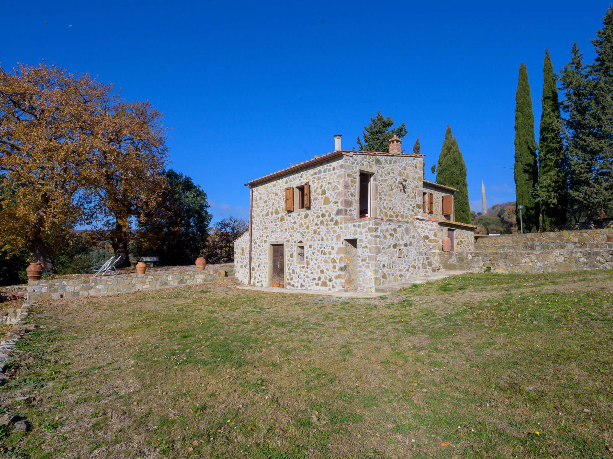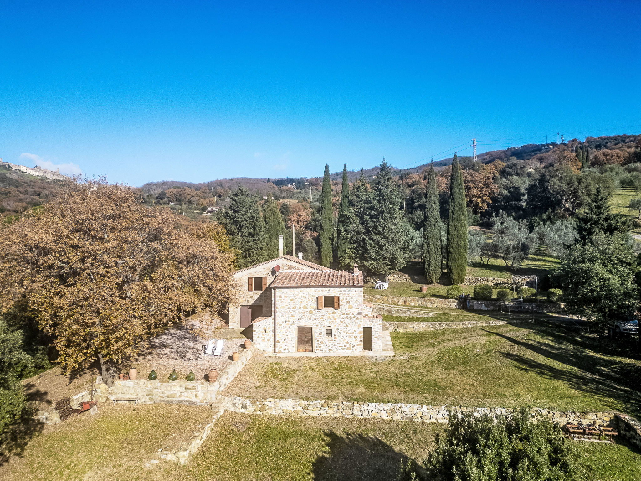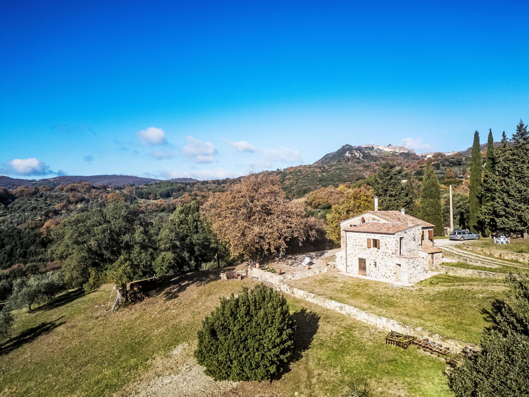 Maison rustique "Pereti", environnée par les arbres et prés. À 4 km du centre de Roccatederighi, situation isolée, tranquille sur une colline, à 33 km de la mer, à 33 km de la plage, dans la verdure. A usage privé: beau jardin. Infrastructures de la Maison: lave-linge. Accès en voiture par un chemin étroite de 3 km de long. Place de parking sur le terrain. Magasin d'alimentation 4 km, restaurant 4 km, bar 4 km, arrêt de bus 4 km, ferry "Piombino (Isola d'Elba)" 60 km, plage de sable "Follonica" 43 km, centre thermal "Bagni di Petriolo" 35 km. Terrain de golf (18 trous) 26 km, chemins de randonnées pédestres depuis la maison 10 m. Attractions à proximité: Montemassi 5 km, Roccastrada 12 km, Grosseto 34 km, Massa Marittima 27 km, Castiglione della Pescaia 42 km, Marina di Grosseto 42 km. Les lacs connus sont facilement accessibles: Lago dell'Accesa 21 km. Région de randonnées: Parco Naturale della Maremma 49 km. Veuillez noter: voiture recommandée.
