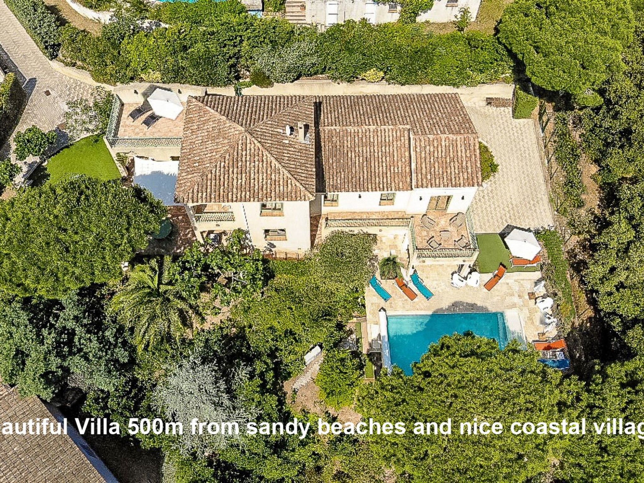 Luxury villa with sea view only 500m! v/h sandy beach. Quiet location. Heated outdoor pool and fully air-conditioned. The villa is located in a closed domaine, in a green and quiet part of the Côte d'Azur (without high-rise buildings), close to St-Tropez, Cannes and Nice. The swimming pools (indoor and outdoor) and the short walking distance (500 m) to both the sandy beach and the coastal resort of San Peire (Les Issambres), give you the great advantage of being able to enjoy the peace and quiet without having to use the car every day.