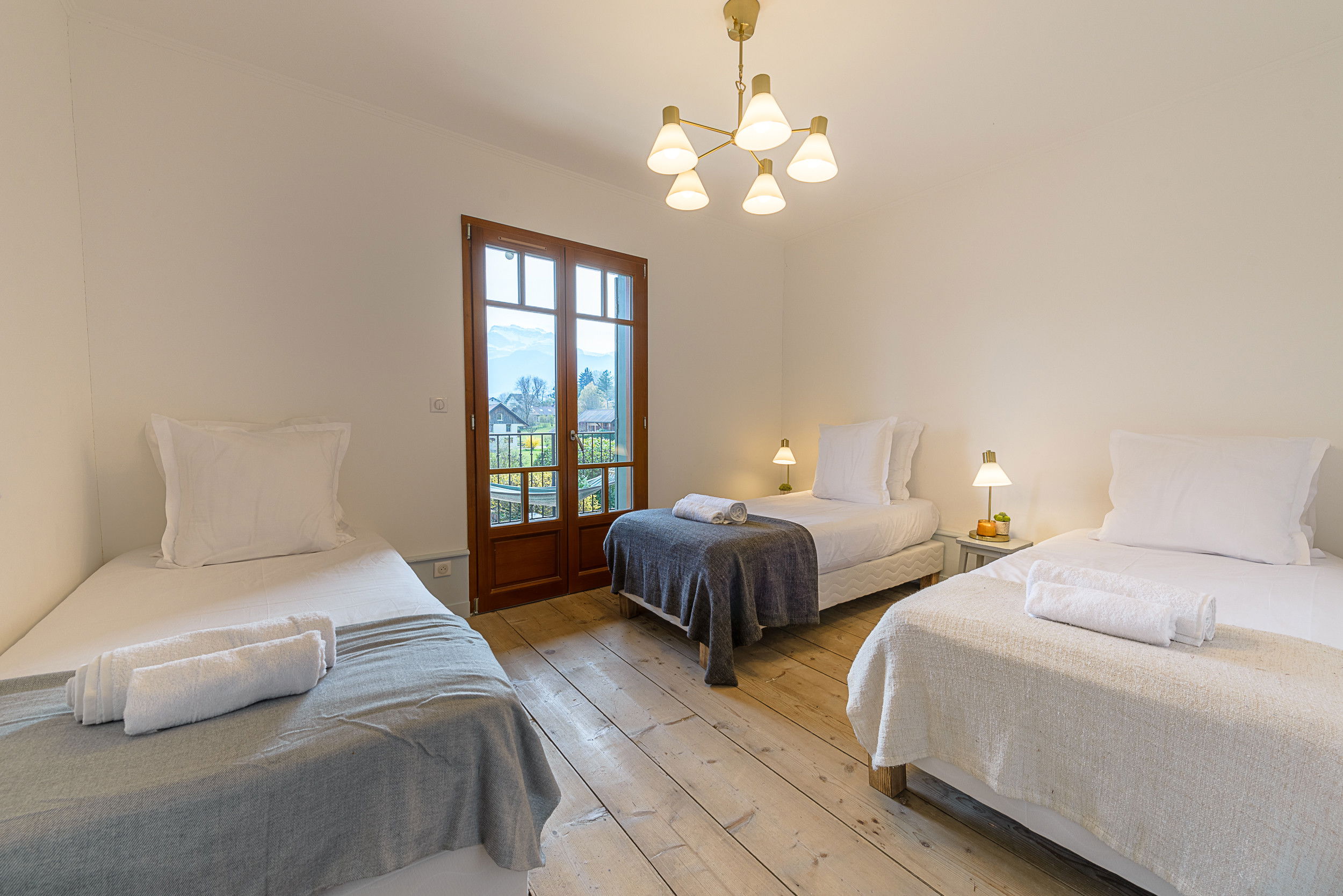 - Chambre n°1 - Suite Le Semnoz : 2 lits simples de 90x200cm disposant d'une salle de douche attenante avec WC, placards de rangement et un balcon.