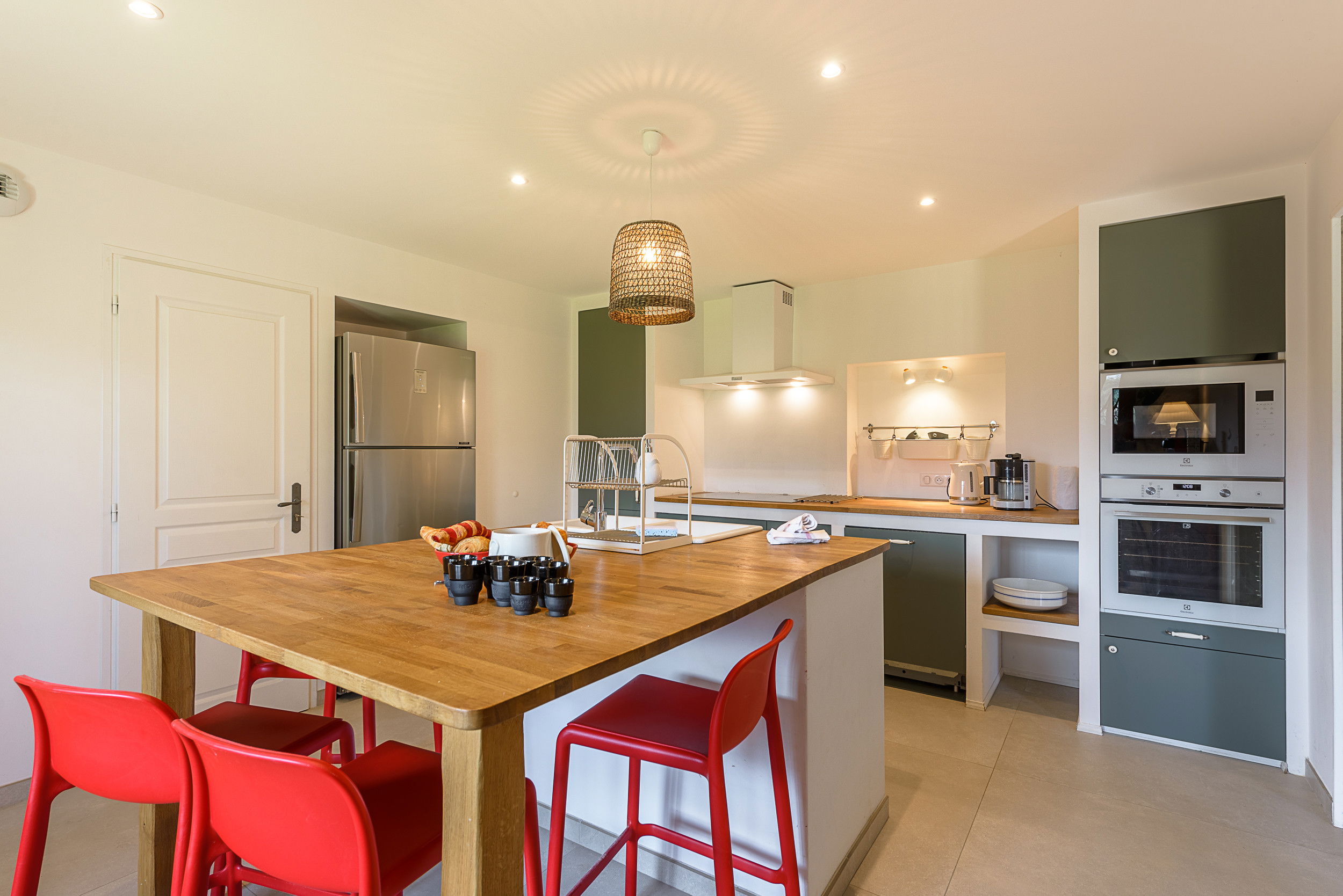 - Une spacieuse cuisine indépendante entièrement équipée avec îlot central (plaque induction, four, micro-ondes, machine à café Nespresso, machine à café à filtre, vaisselles, verrerie..) et un accès direct au jardin