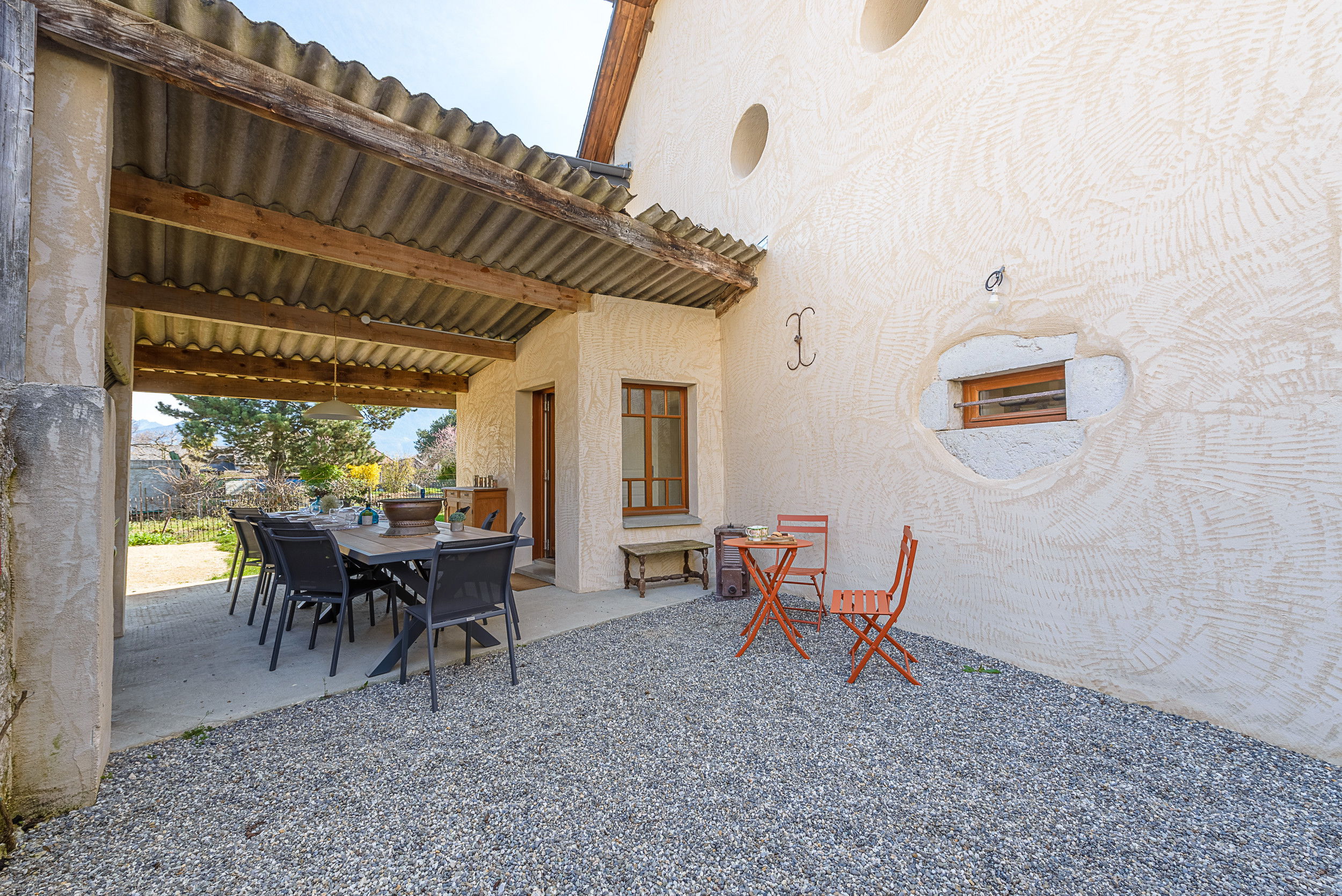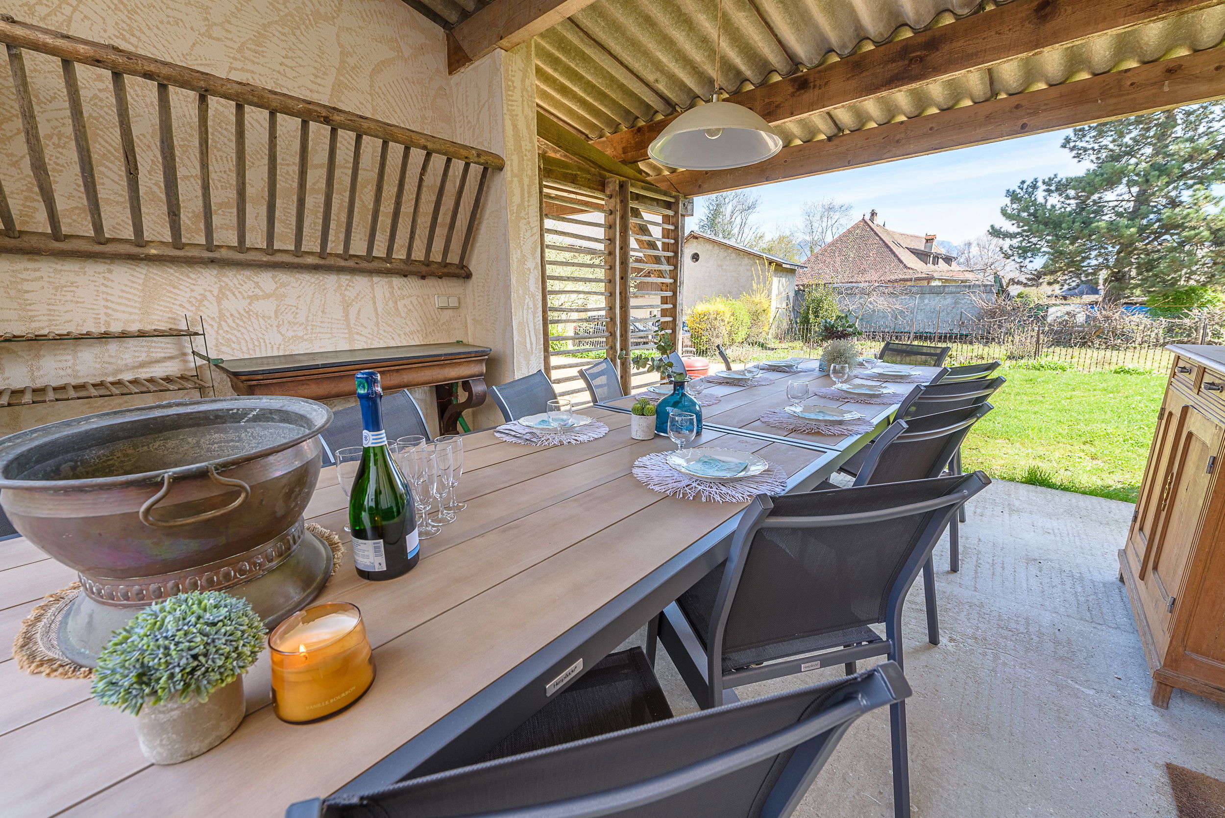 - Un préau avec grande table pour les repas extérieurs estivaux que on les aime tant, à l’abri de la chaleur ou de la pluie parfois... et un salon de jardin