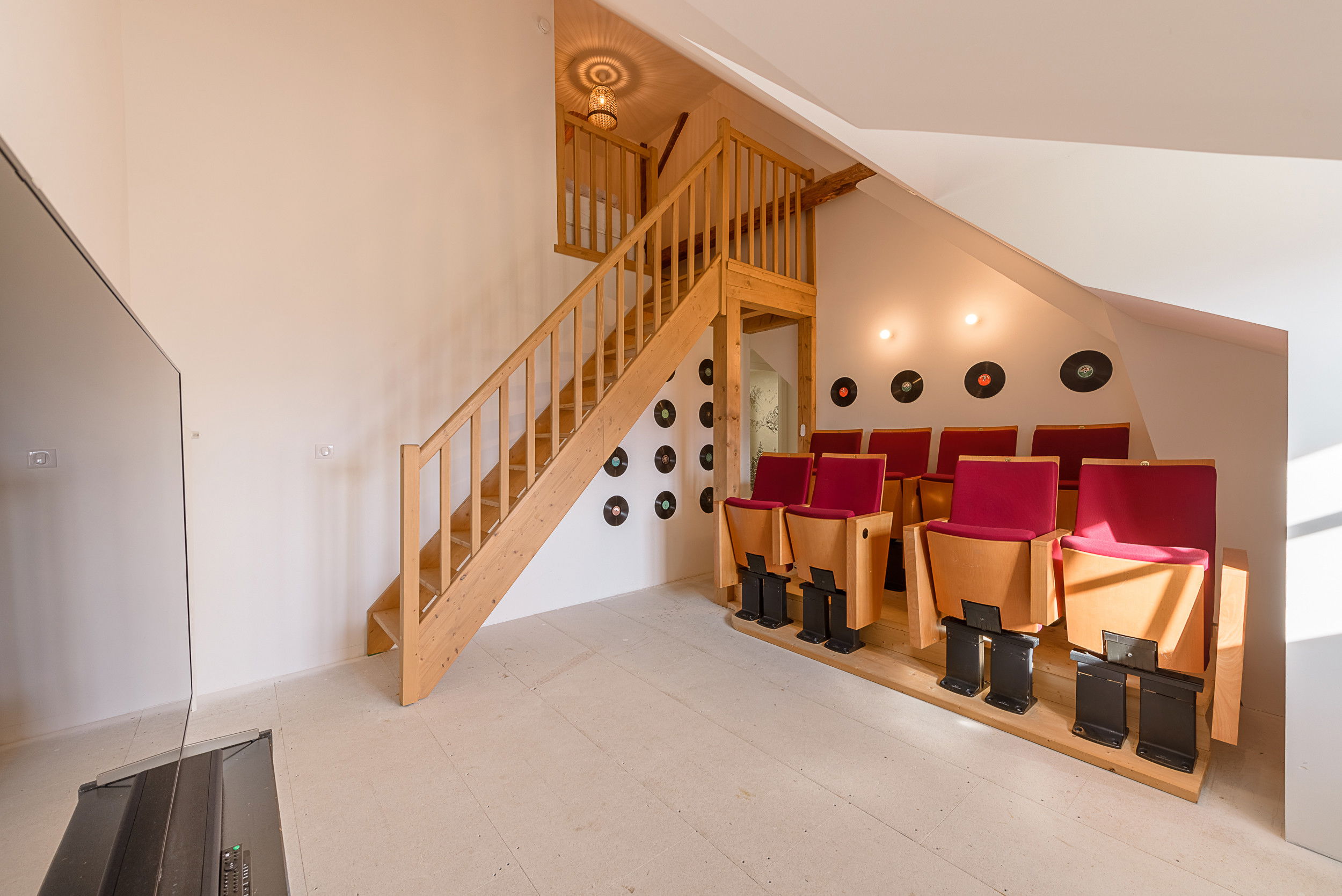 - Salle de cinéma avec véritables sièges de cinéma provenant de la salle Pleyel, TV XXL et système HIFI, lecteur DVD ; mezzanine avec lits d'appoints