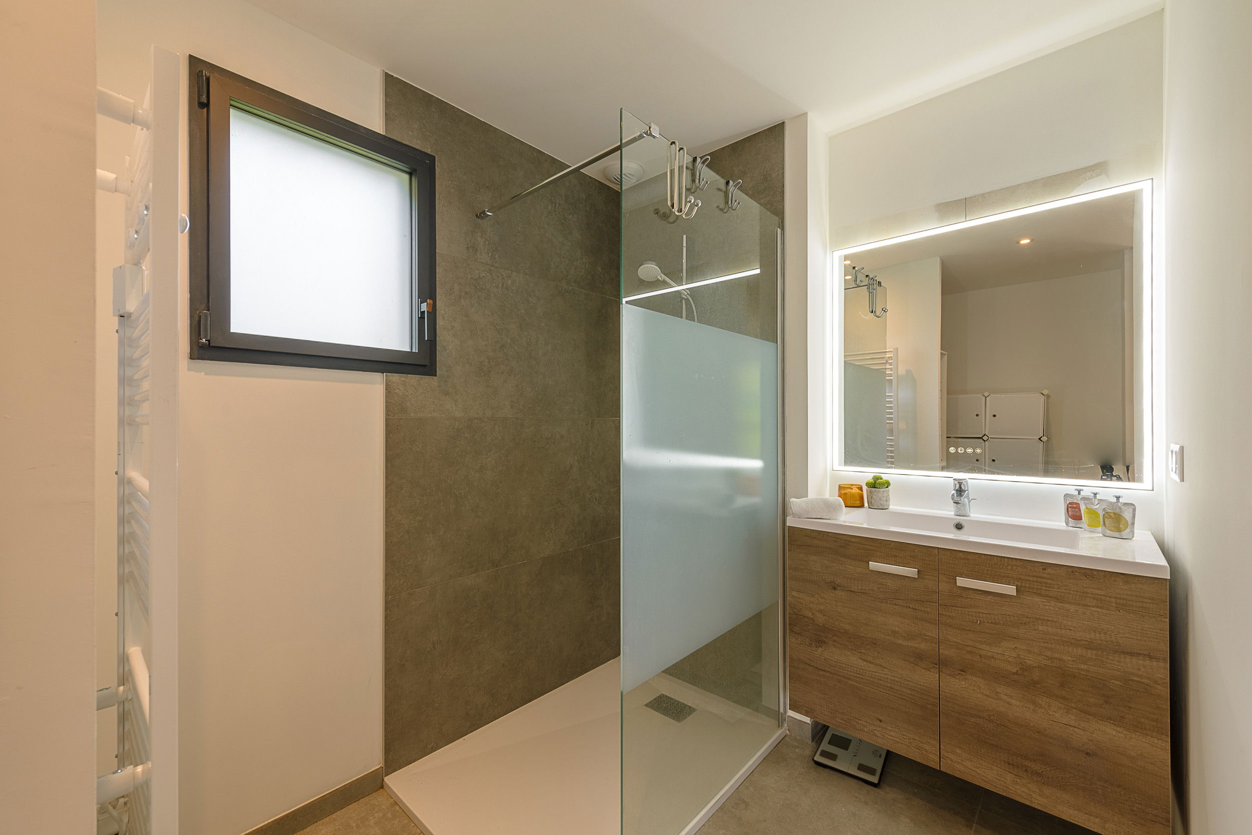 - Chambre n°1 : Suite parentale avec lit double, salle de douche privative et accès direct à la terrasse