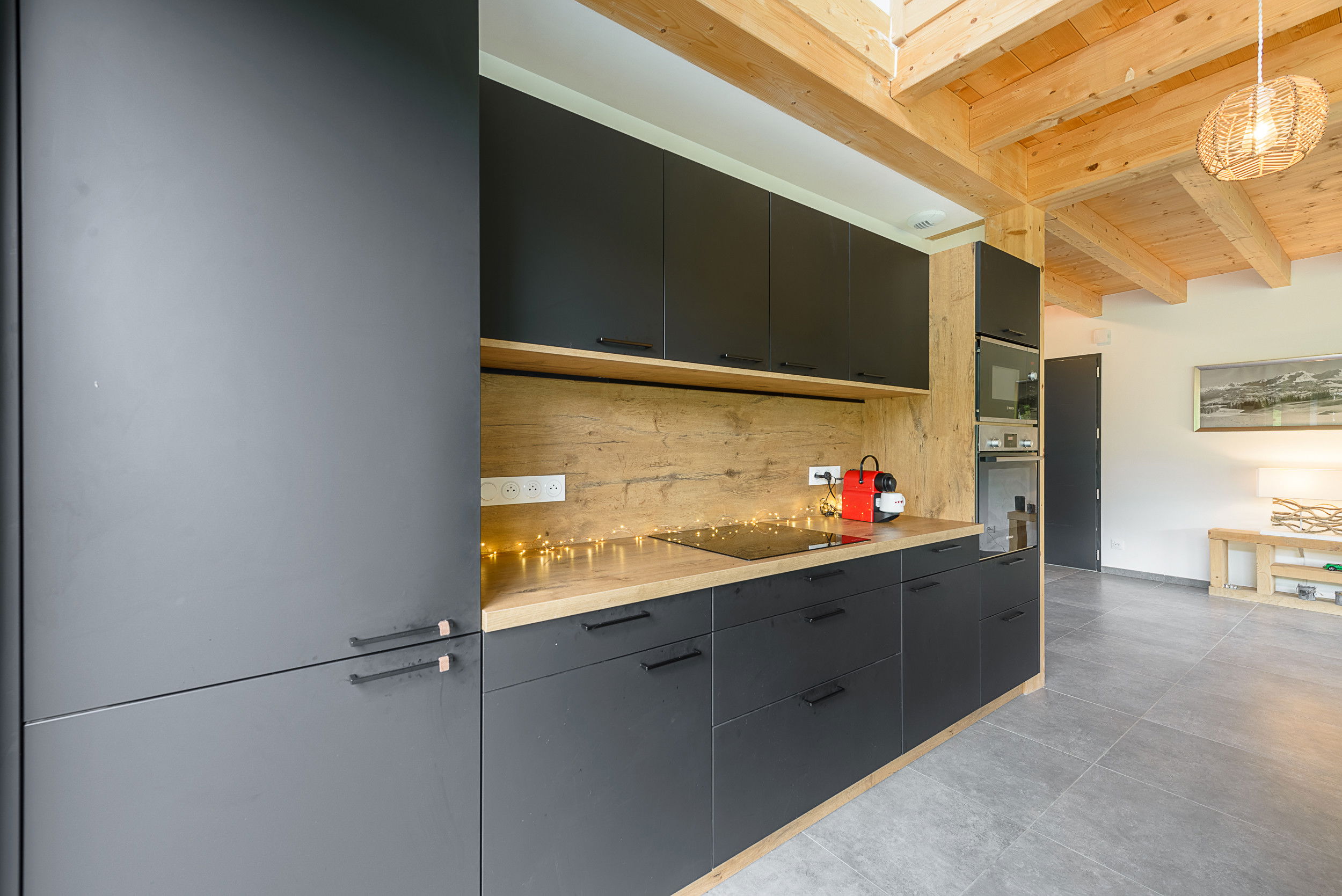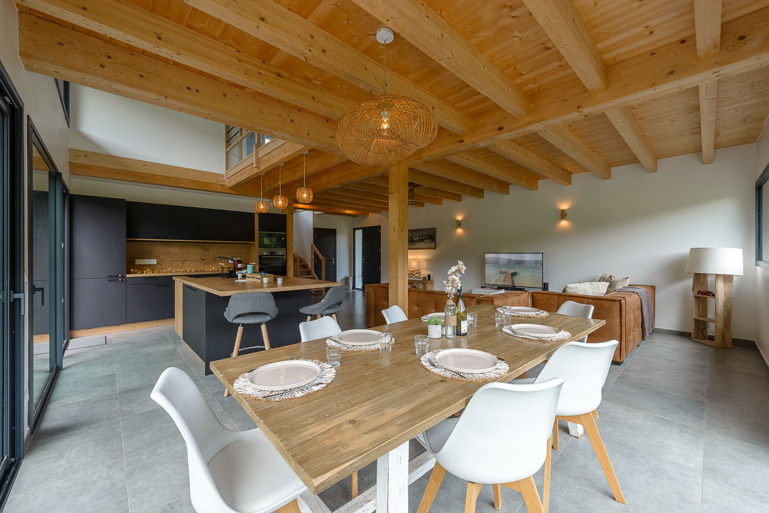 - Cuisine ouverte entièrement équipée (lave-vaisselle, four, micro-ondes, plaque, etc.) donnant directement sur la terrasse