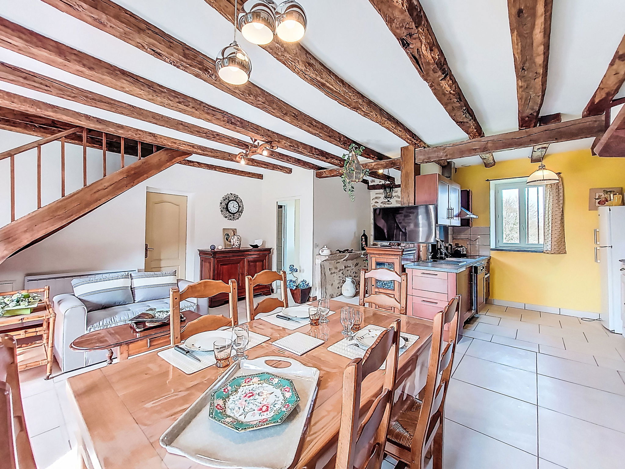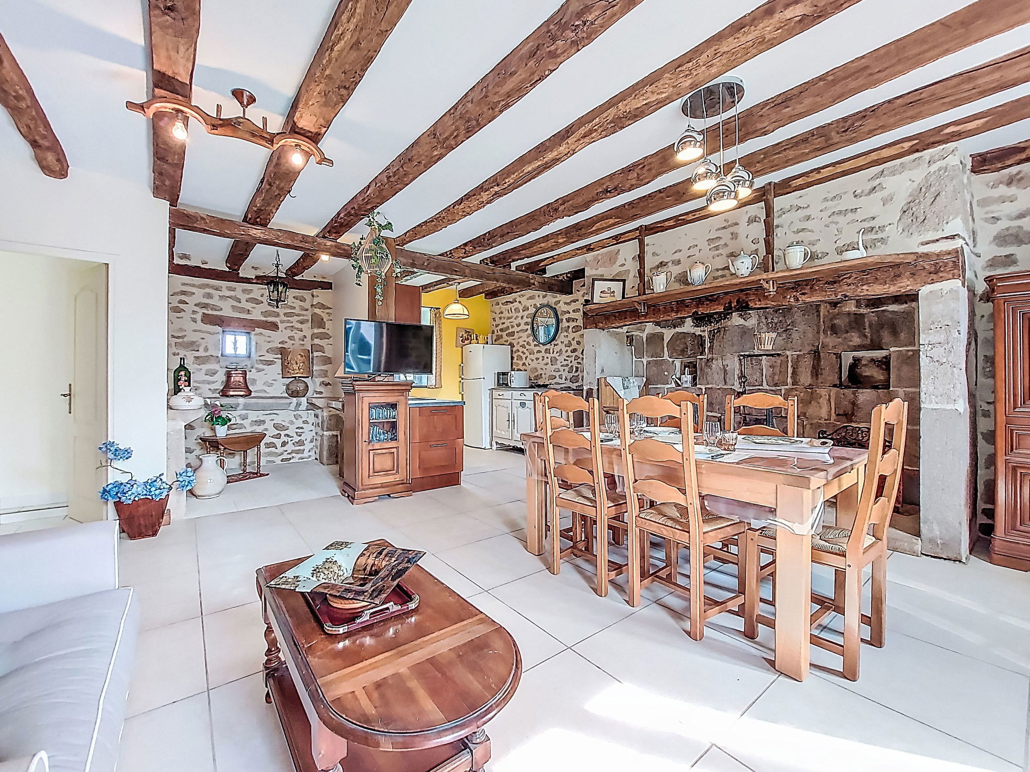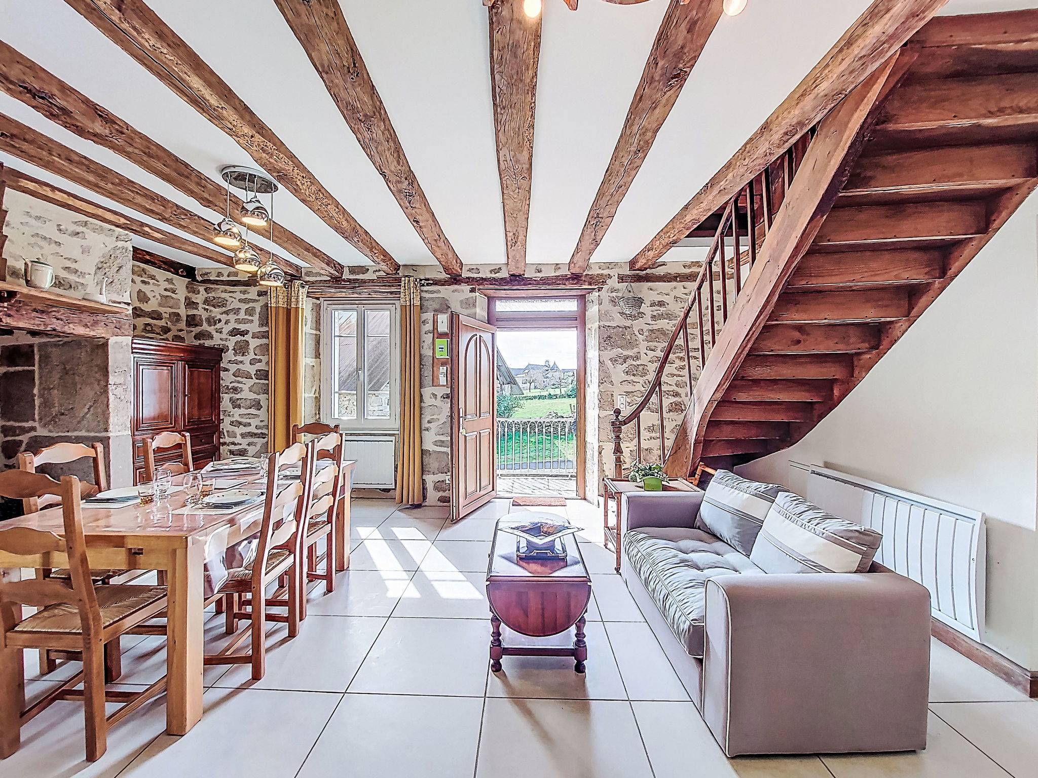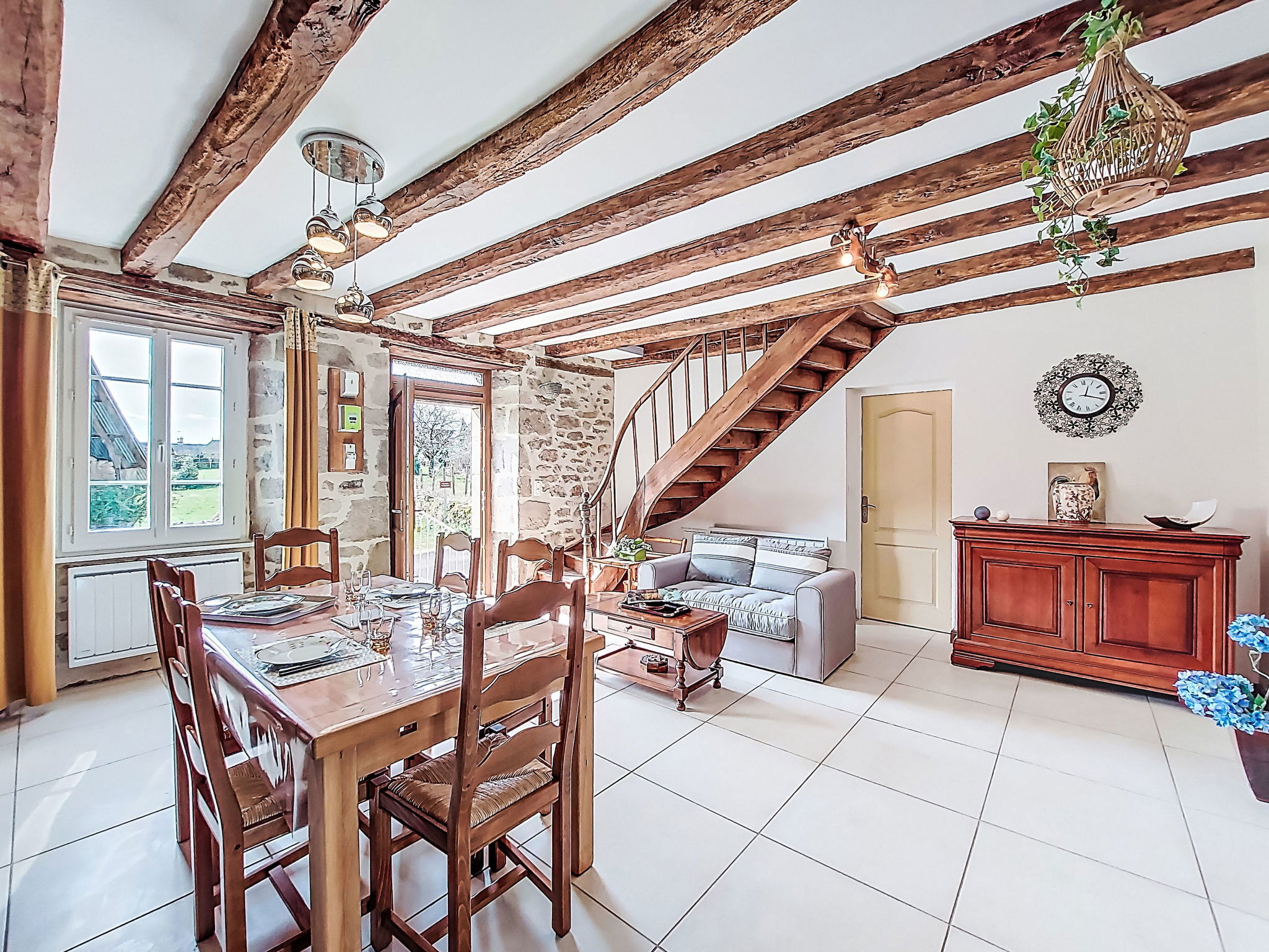 "Gîte Saint Sauveur", maison 2 pièces 50 m2. Aménagement confortable et rustique: séjour/salle à manger avec cheminée (uniquement à titre de décoration), table pour les repas et TV (écran plat). 1 grande chambre avec 1 lit (90 cm, longueur 190 cm), 1 grand-lit (140 cm, longueur 190 cm), TV. Cuisine (four, lave-vaisselle, 3 plaques à induction, grille-pain, bouilloire électrique, micro-ondes, congélateur, cafetière électrique). Douche, WC séparé. Chauffage électrique. A disposition: lave-linge. Veuillez noter: maximum 2 animaux/ chiens autorisés. Détecteur de fumée. Annonce d'un particulier (art 155, IV du CGI).
