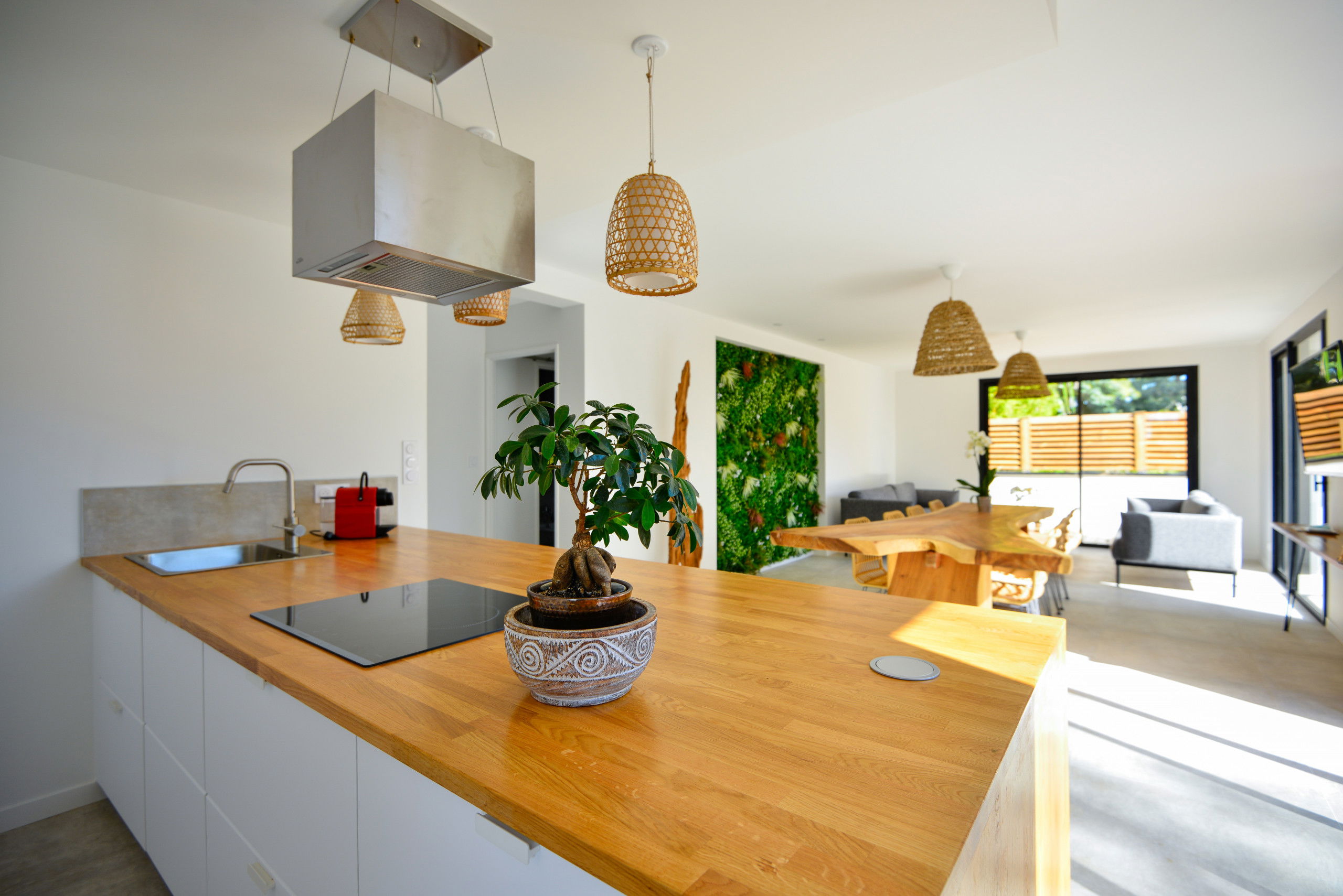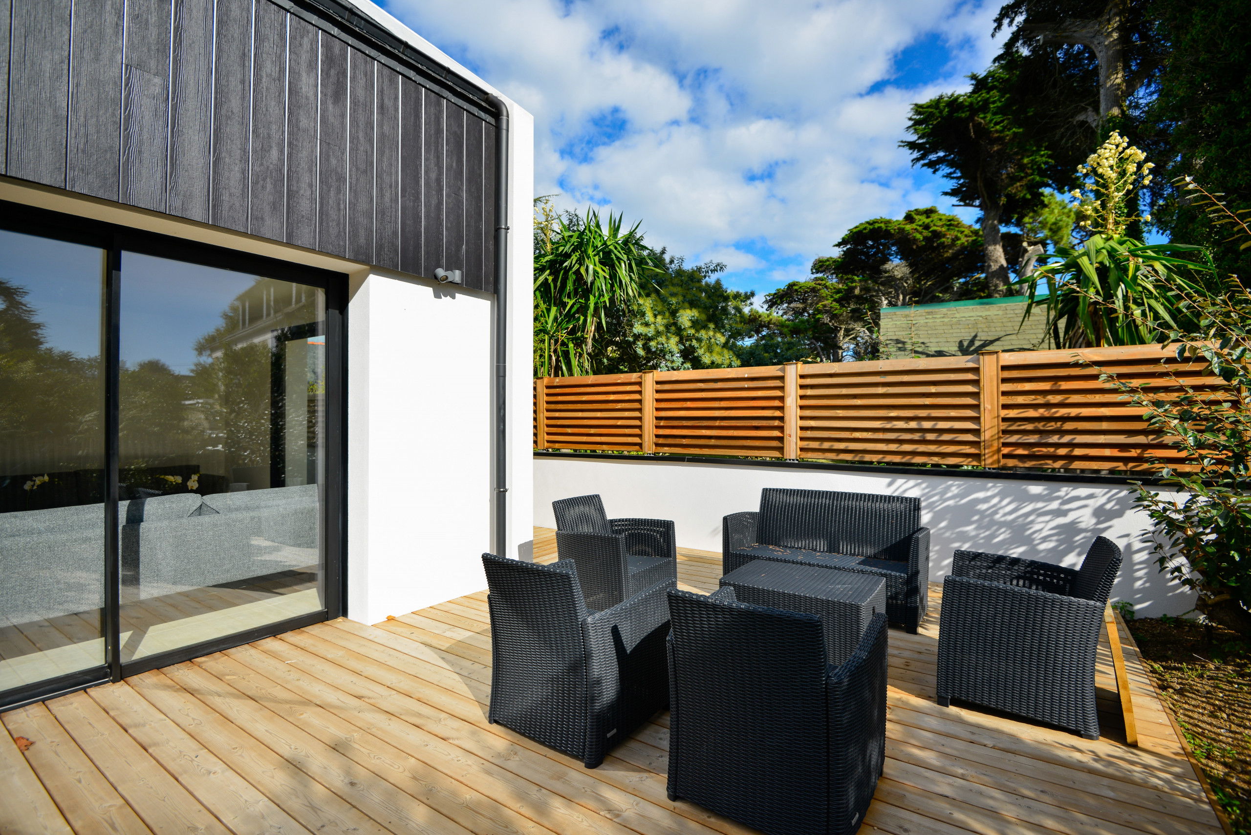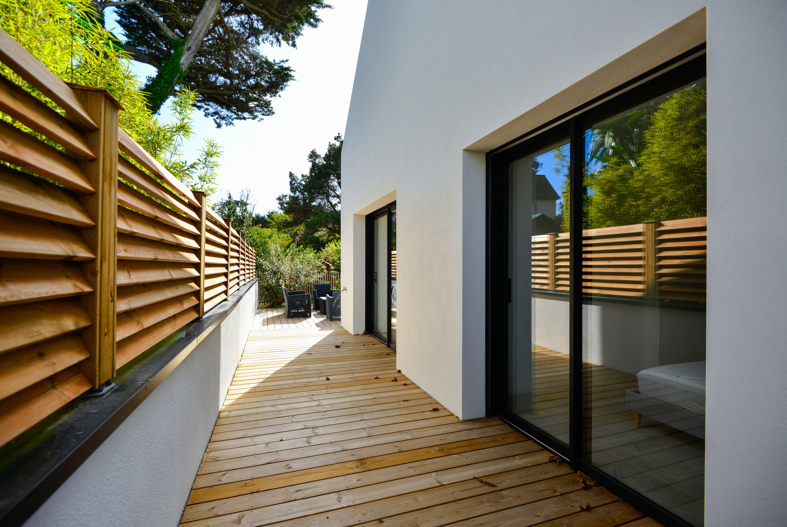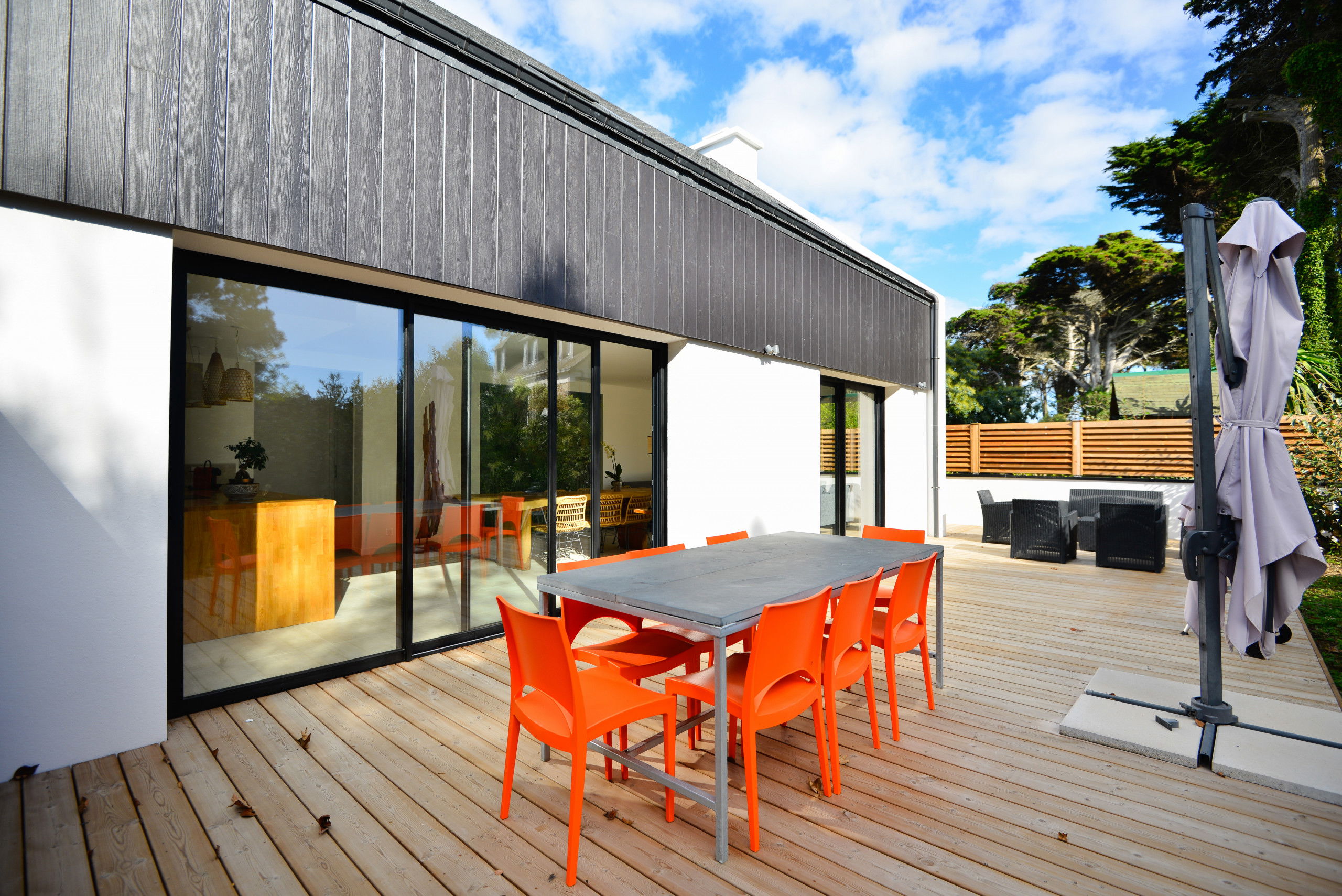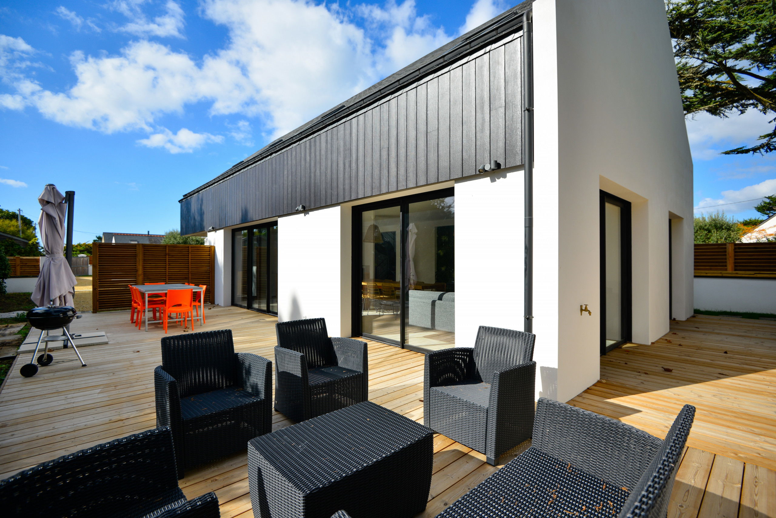 Maison d'architecte à 200m de la plage, la Villa Grain Blanc est dotée de tout le confort moderne : 4 chambres avec 4 salles de bain + toilettes attenantes et lit Queensize, un séjour confortable et spacieux, TV connectée grand écran plat, exposition sud, décoration design, nature et bois, parkings et wifi gratuits, Nespresso) cette villa contemporaine atypique offre dépaysement et quiétude... et l'accès privé à la Baie de Quiberon !