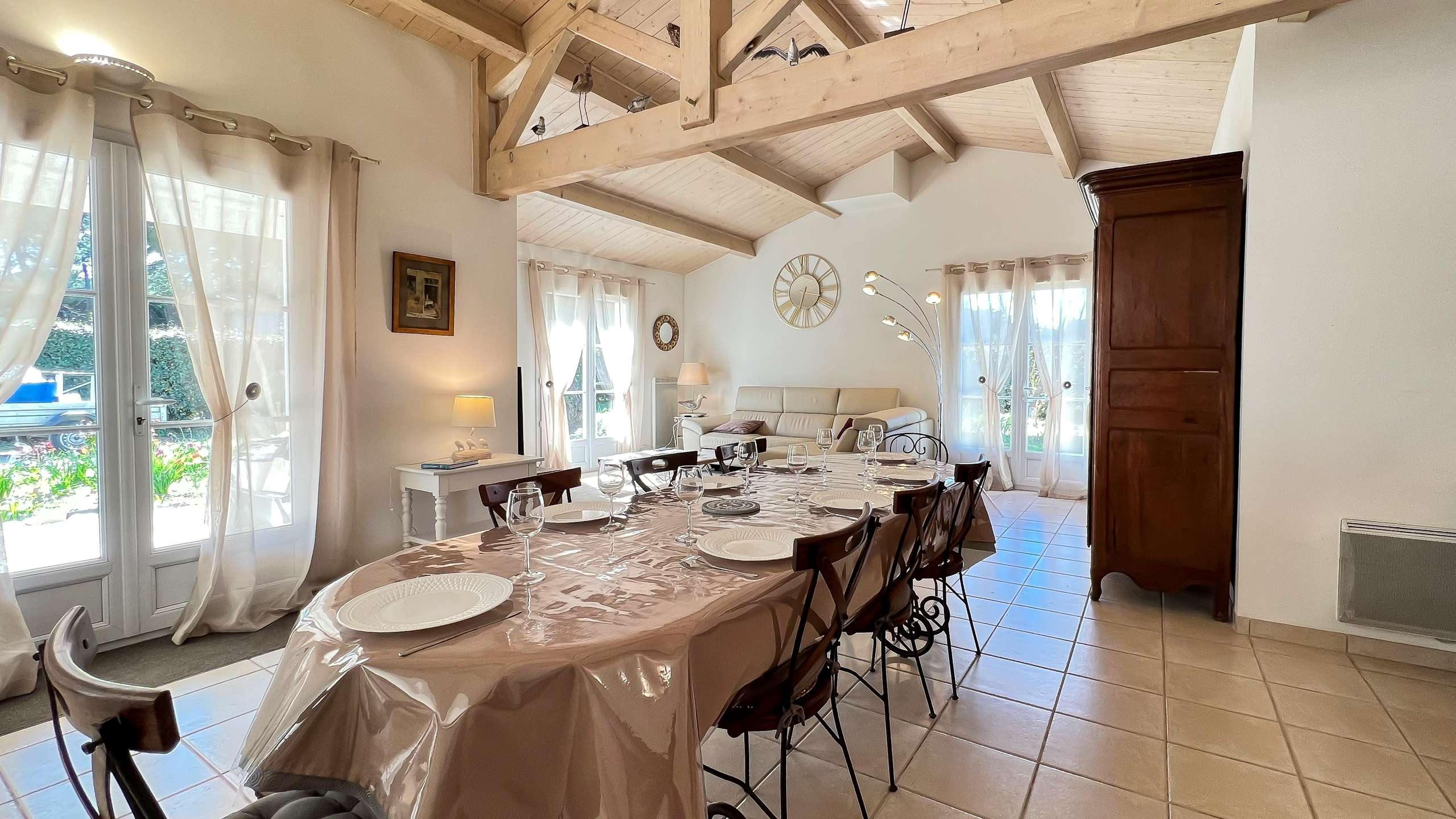 Superbe villa de plain-pied avec parking et jardin Superbe villa de plain-pied sur une parcelle de 1 000 m², avec son stationnement privatif. Parfaite le temps d'un long week-end iodé, ou mieux encore un séjour à la découverte des richesses de l'Ile de Ré. Lumineuse et tout confort la villa vous permettra de profiter de bons moments en famille ou entre amis! Vous apprécierez le jardin entièrement clos et arboré de plus de 800 m². PARKING - MENAGE FIN DE SEJOUR ET LINGE DE MAISON OBLIGATOIRE (Draps, serviettes de toilette, tapis de bain, torchons)