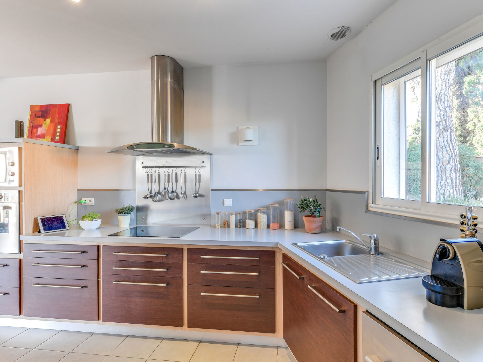 "Villa Cap Maxime", maison 4 pièces 125 m2. Spacieux, aménagement confortable et agréable: entrée avec WC séparés. Grand séjour/salle à manger 50 m2 avec TV et ventilateur. Sortie sur le jardin, sur la piscine. 1 chambre 10 m2 avec 1 lit double (1 x 140 cm, longueur 200 cm). Sortie sur la piscine. 1 chambre 13 m2 avec 1 lit double (1 x 160 cm, longueur 200 cm), ventilateur. Sortie sur la piscine. 1 chambre 10 m2 avec 1 lit double (1 x 140 cm, longueur 200 cm). Grande cuisine ouverte (four, lave-vaisselle, 4 plaques à induction, grille-pain, bouilloire électrique, micro-ondes, congélateur, cafetière électrique). Bain/douche, douche. Chauffage électrique. Grande terrasse couverte. Meubles de terrasse, chaises longues. Vue sur la mer. A disposition: lave-linge, sèche-linge, fer à repasser, lit bébé. Internet (Connexion WIFI, gratuit). Veuillez noter: maison non-fumeur. Maximum 1 animal/ chien autorisé. Détecteur de fumée. 83115003312AV