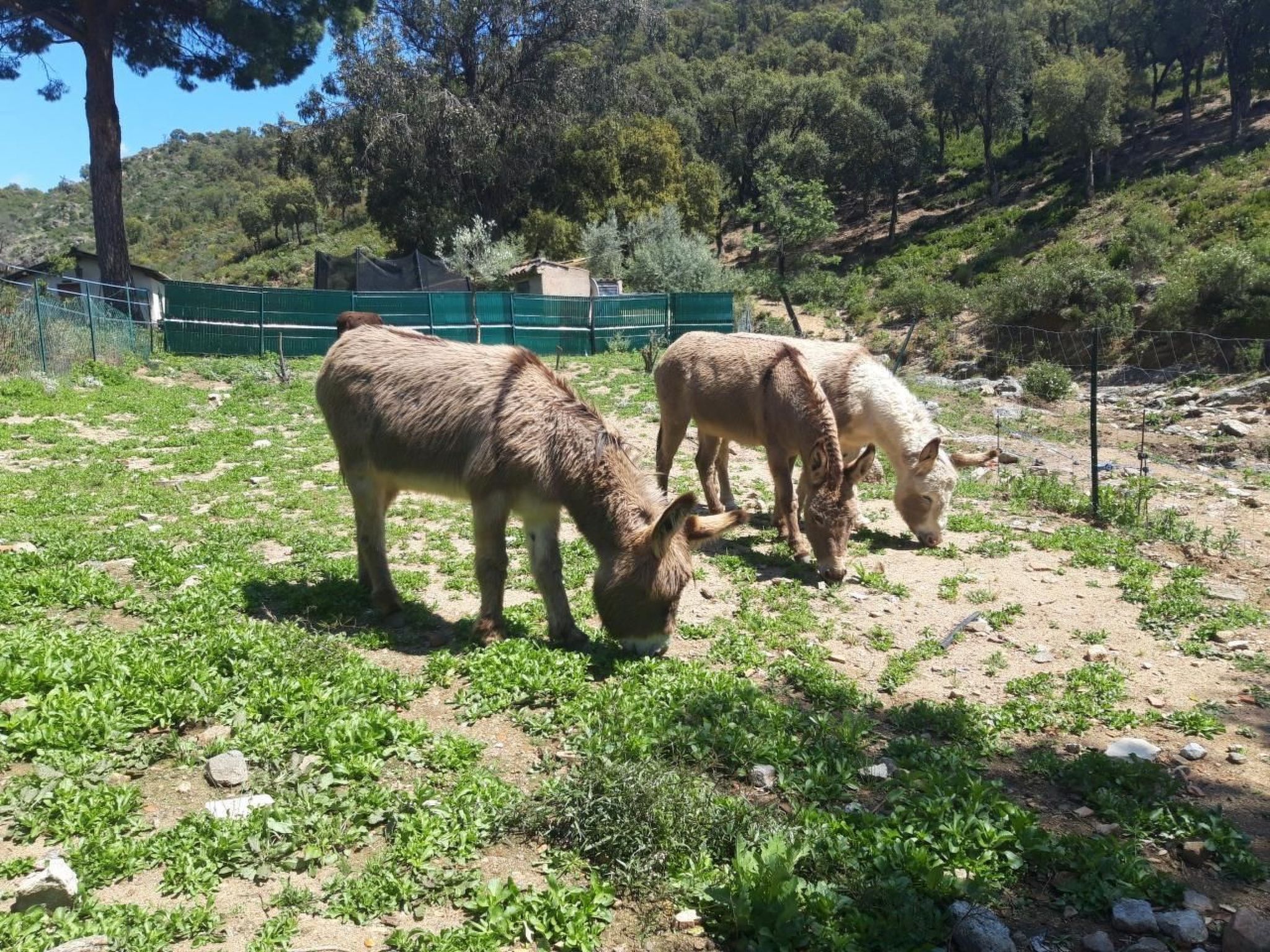 Other sports and leisure activities: "Les Amandiers" offers young and old a variety of opportunities to spend time. The villa has a large swimming pool (10 x 5 metres) with numerous sun loungers for sunbathing. The beach volleyball court, a petanque court and a table tennis table are also accessible to all tenants. A large trampoline and a sandpit are available for our younger guests, making a holiday at "Les Amandiers" ideal for families with children. The property is also suitable for holidays with your dog, as most of the rental properties have a fenced garden / fenced terrace. The property itself is also fully fenced. Of course, our tenants can also take a short walk up the property's own hill. Once at the top, you can enjoy the wonderful view of the sea. The holiday properties in the "Les Amandiers" villa are suitable for families who would like to spend their holidays together but still live in separate properties. All holiday homes are fully equipped and have free WLAN, a detailed description can be found under the respective property. We are happy to provide baby cots and highchairs for small children on request. There are also six donkeys on the property, which are usually out and about during the day grazing in the large, separately fenced area. All the animals are very people orientated and are always happy to have a little visit. The nearest shopping facilities are about 3 minutes away by car. There is a large shopping centre just a few minutes from the site, which caters for practically every need. If you want a fresh French croissant or baguette for breakfast every day, you can also get this in one of the neighbouring bakeries, which have a large sn.